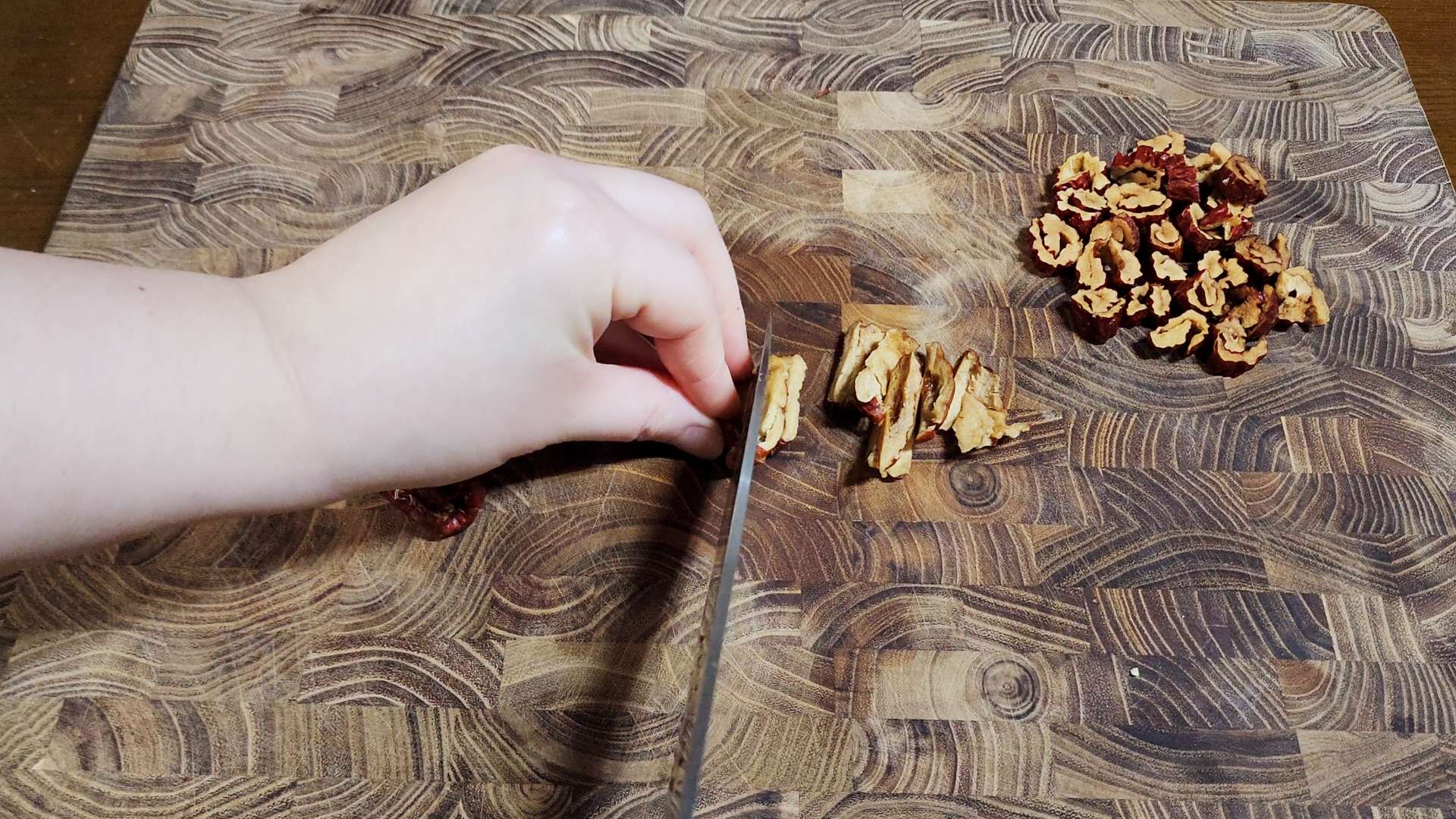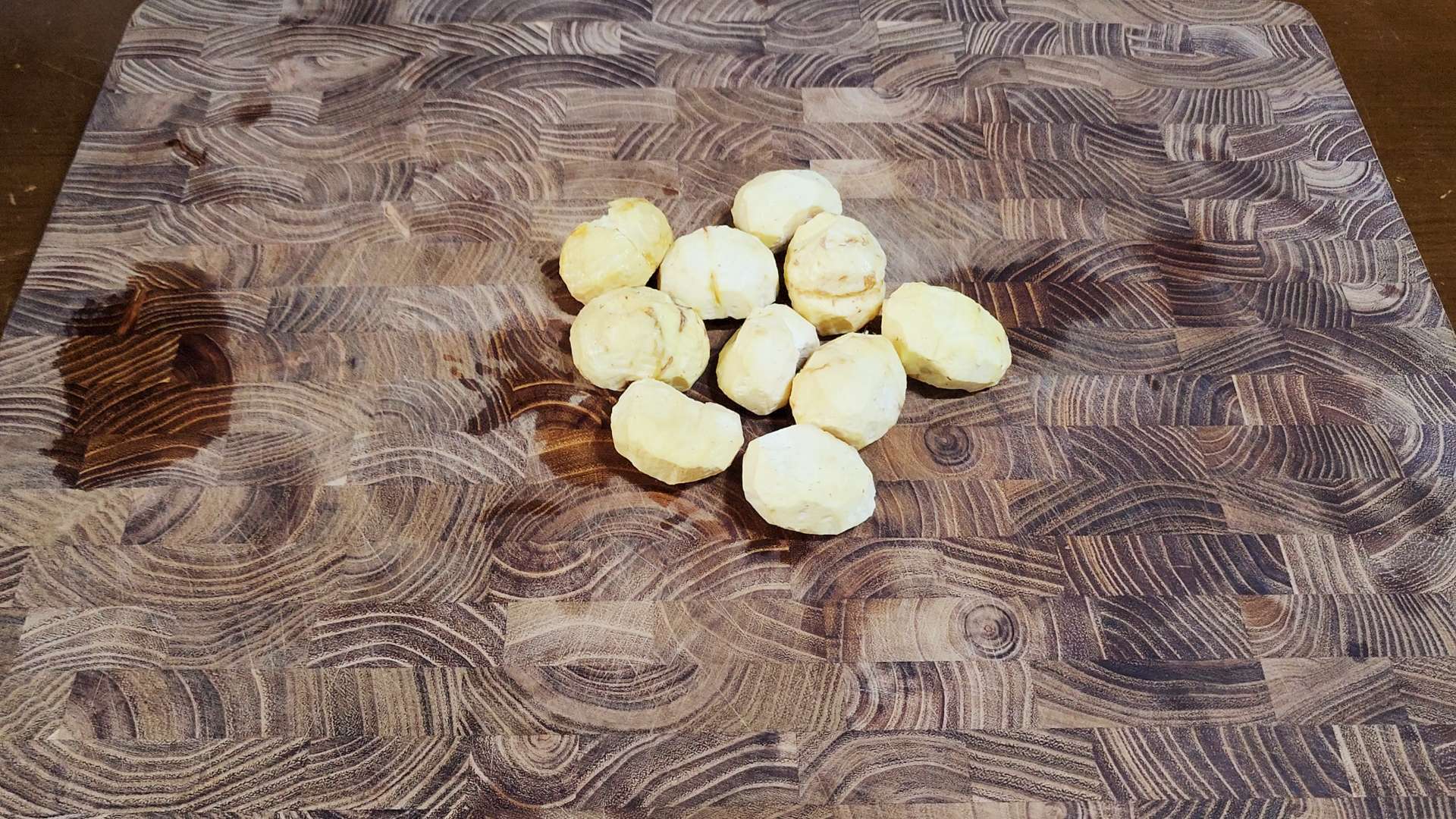 밤은 껍질을 벗기고 반으로 잘라줍니다.