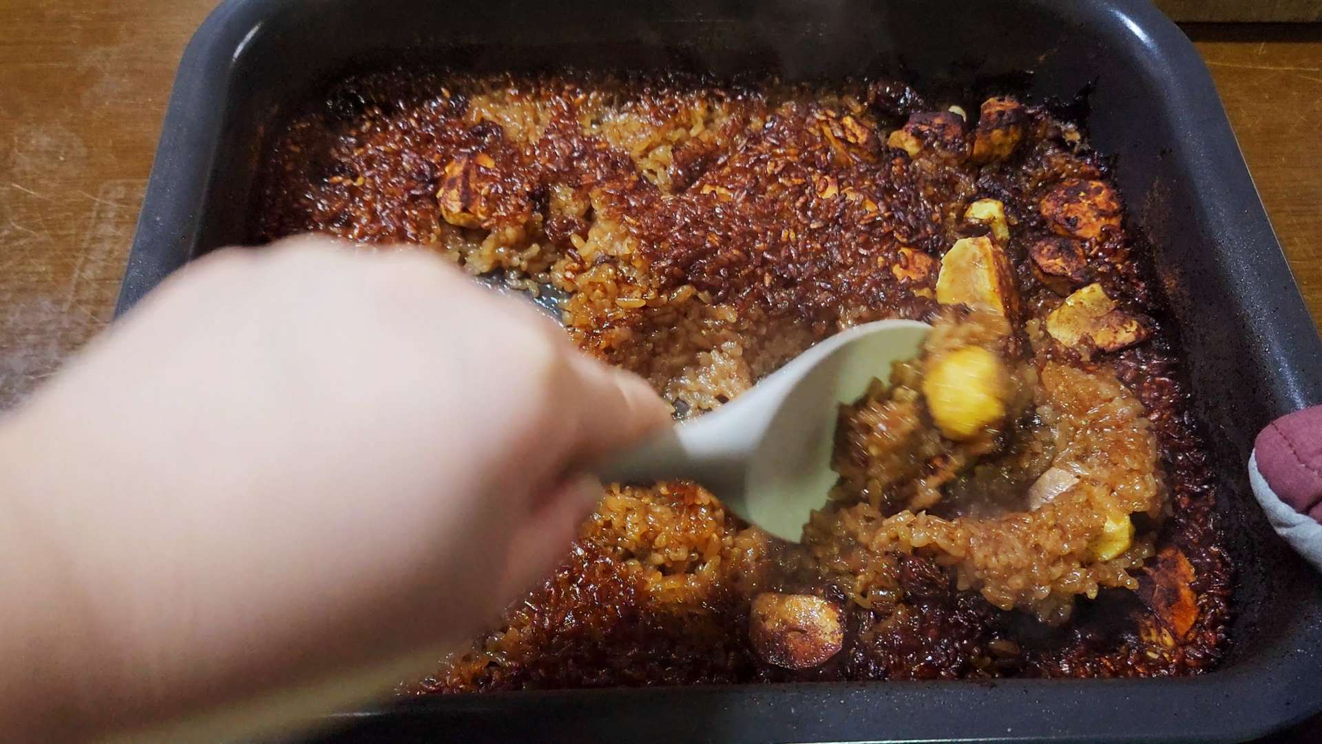 콤비팬을 꺼내 약밥을 골고루 섞어줍니다.