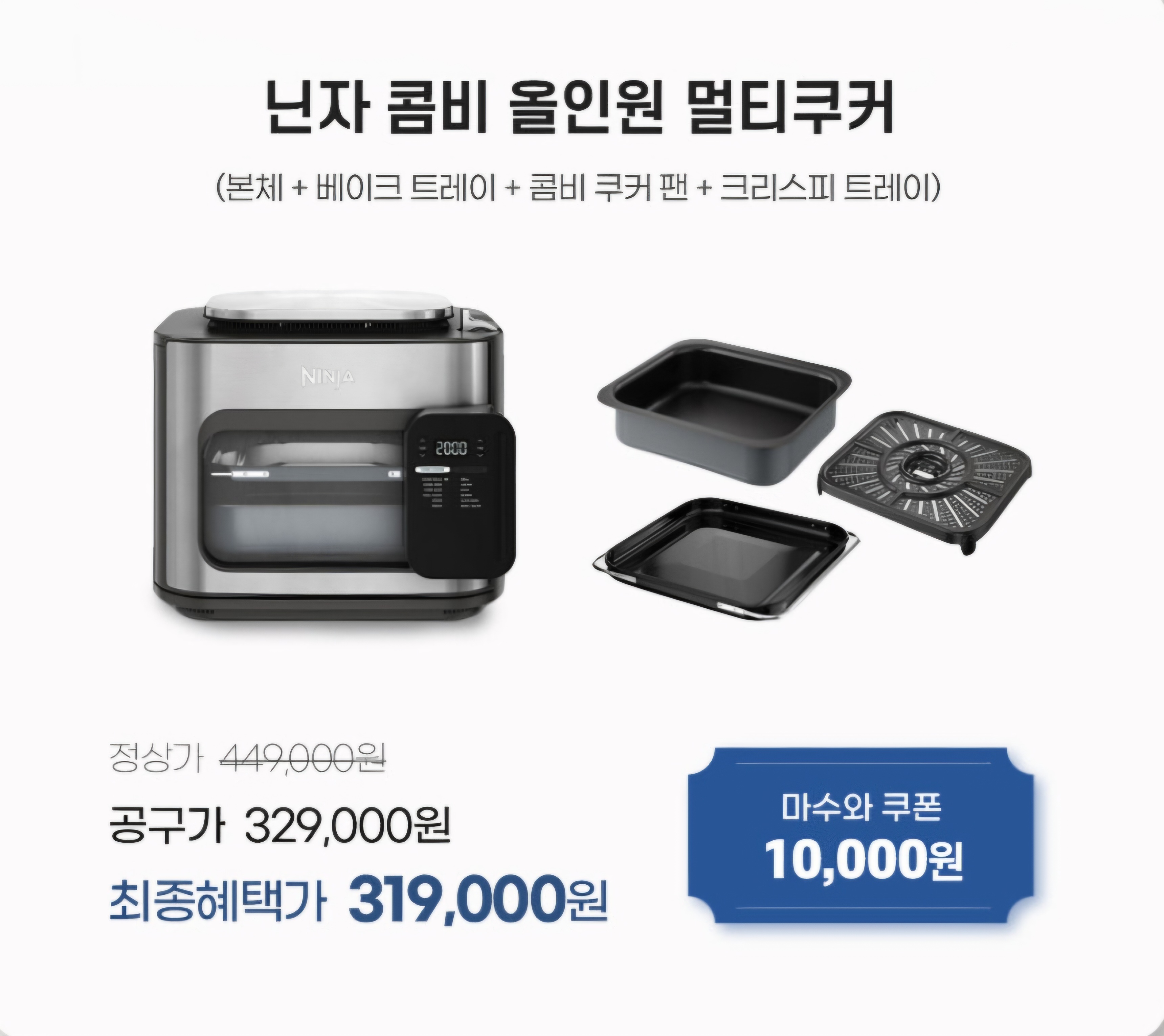 ✔️ 위 결제창 링크에서 닌자 콤비 올인원 멀티쿠커 SFP701KR 제품 구매 시 마수와 10,000원 할인쿠폰 증정 ( 쿠폰 10,000원은 꼭 네이버 로그인 상태에서 보셔야 쿠폰을 보실수 있어요)
