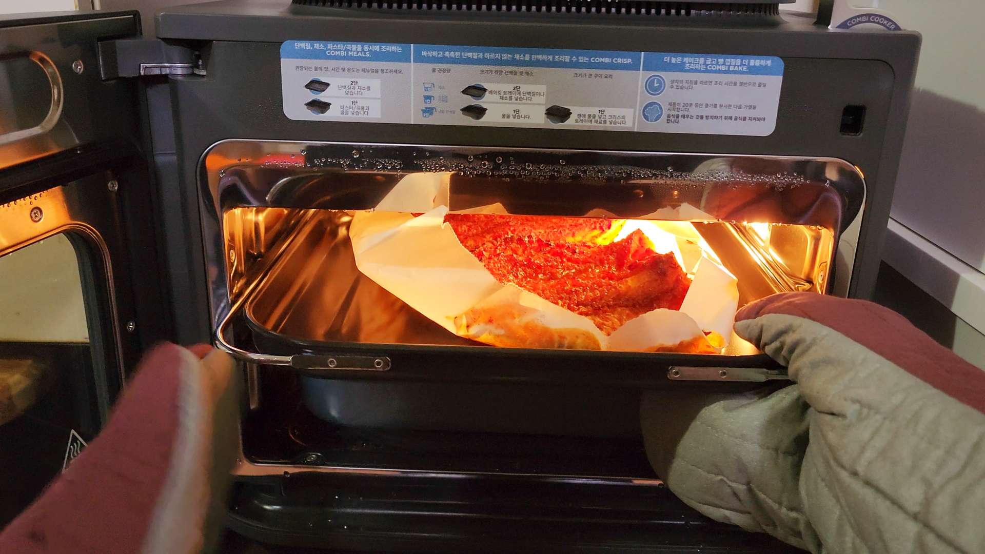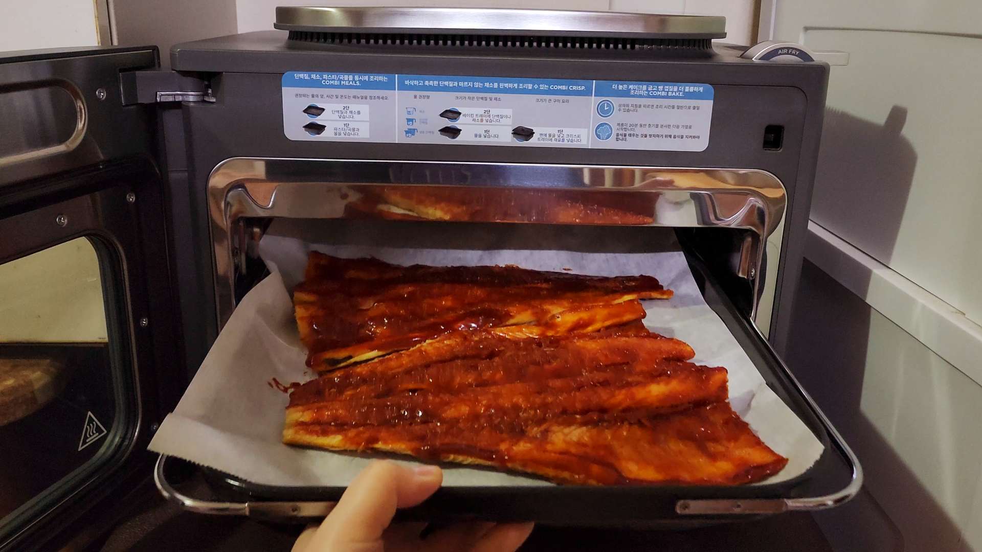 2단에는 베이킹 트레이를 넣어 황태구이를 만들어볼게요.