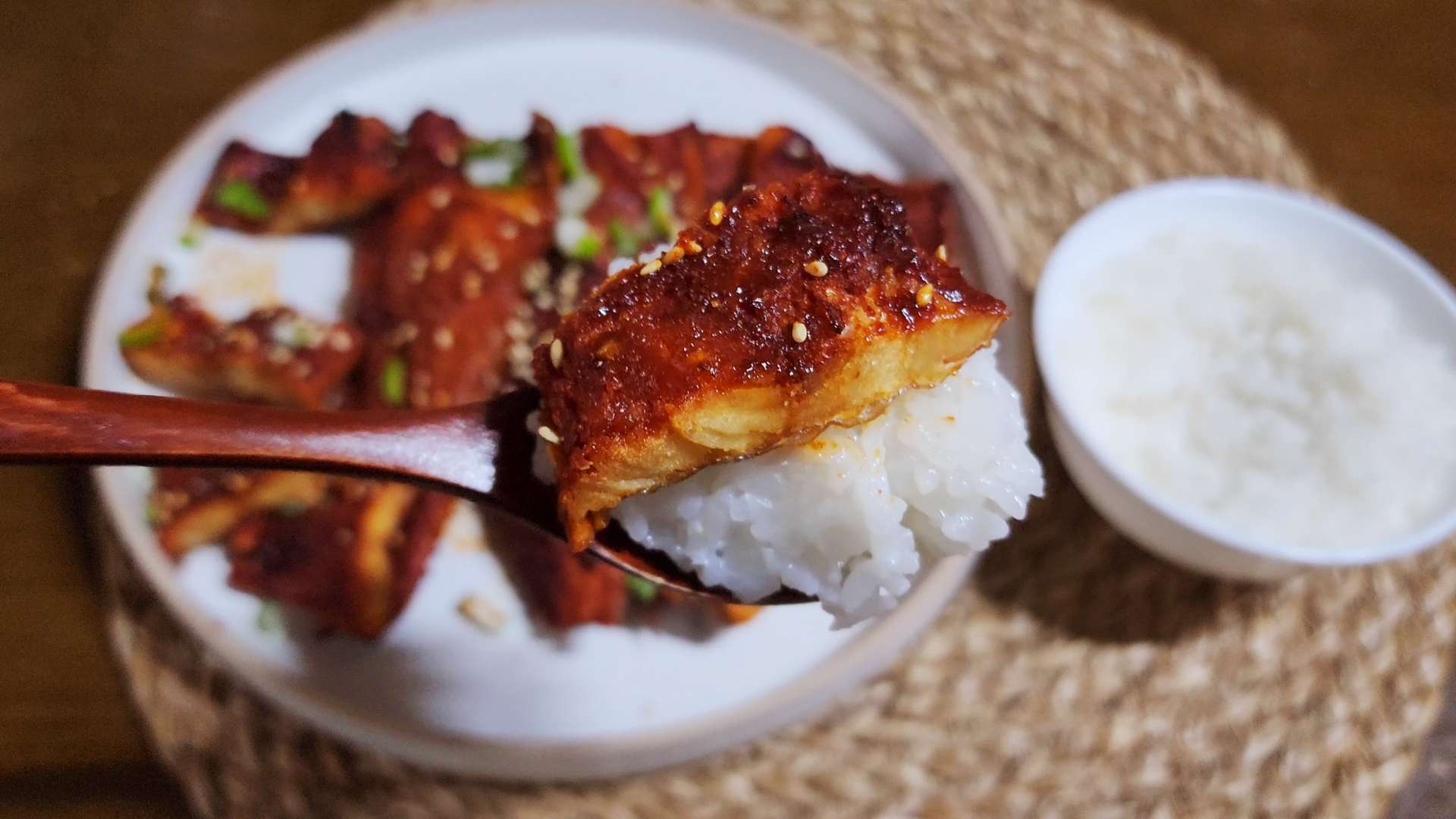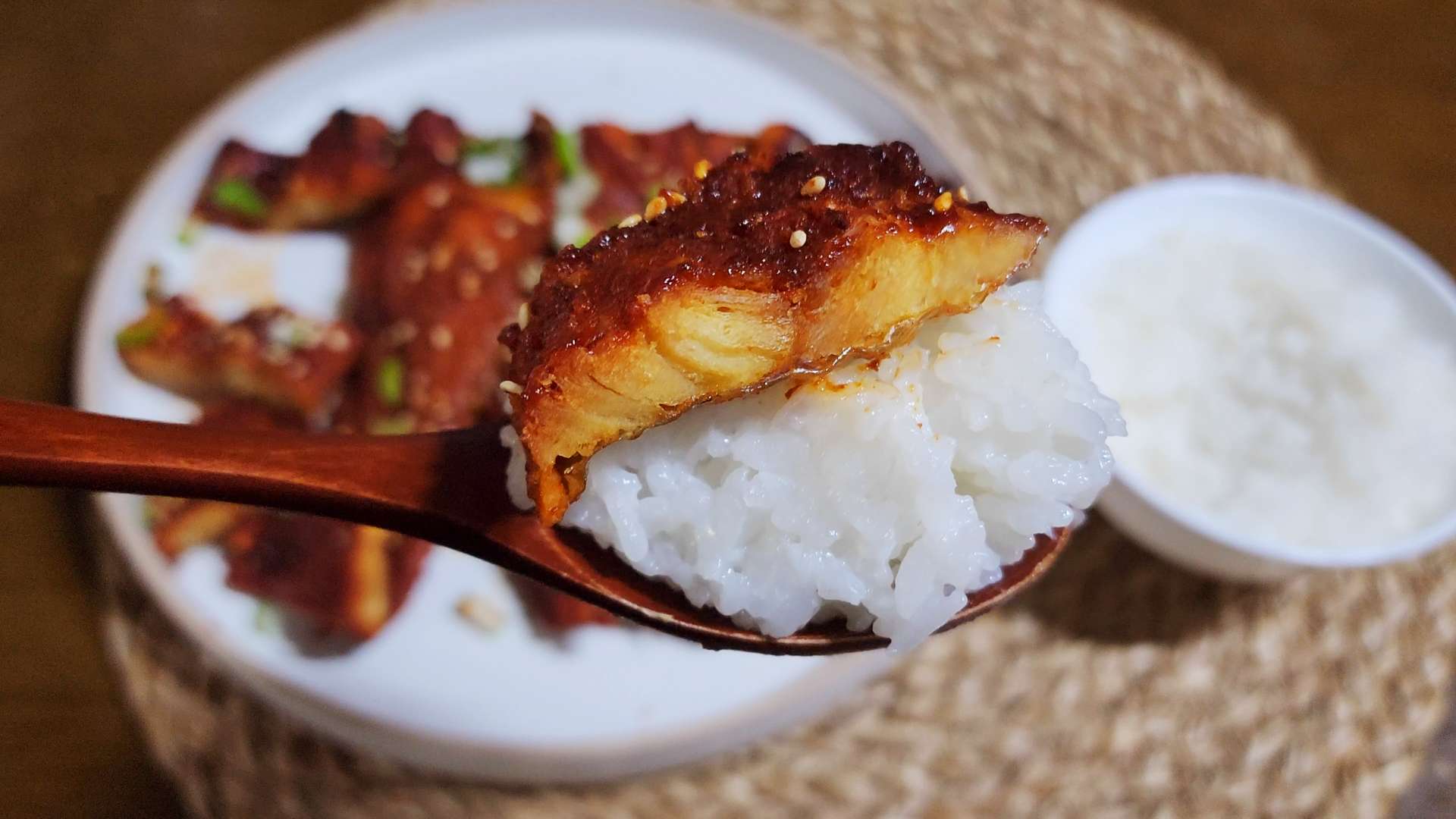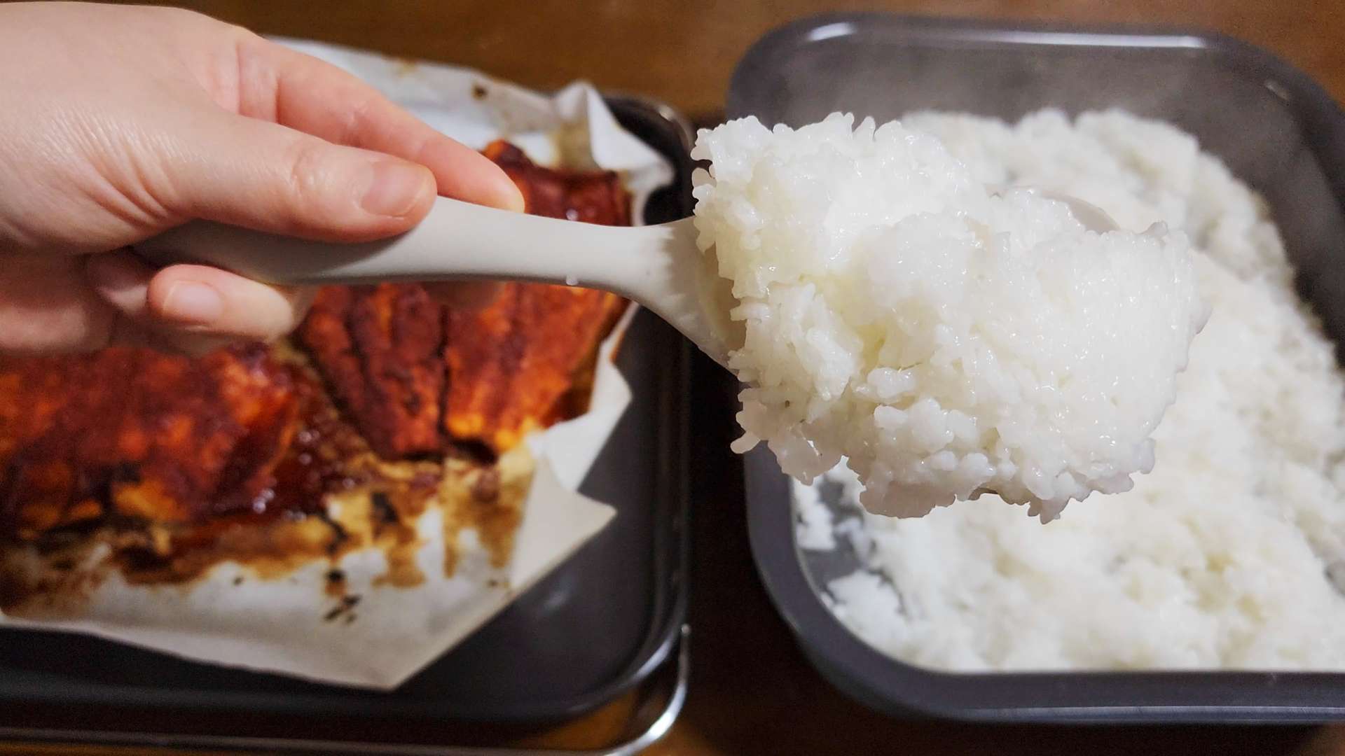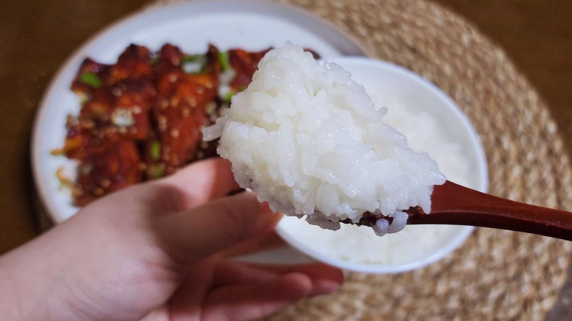 쌀밥이 고슬고슬하게 잘 되었네요.