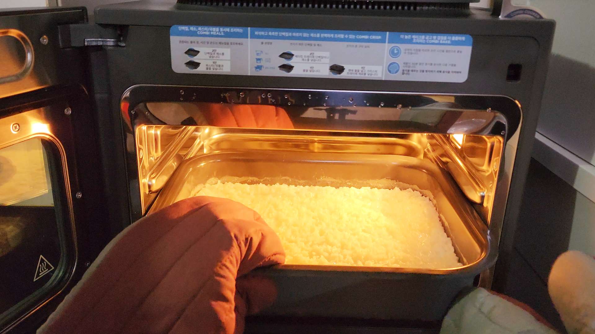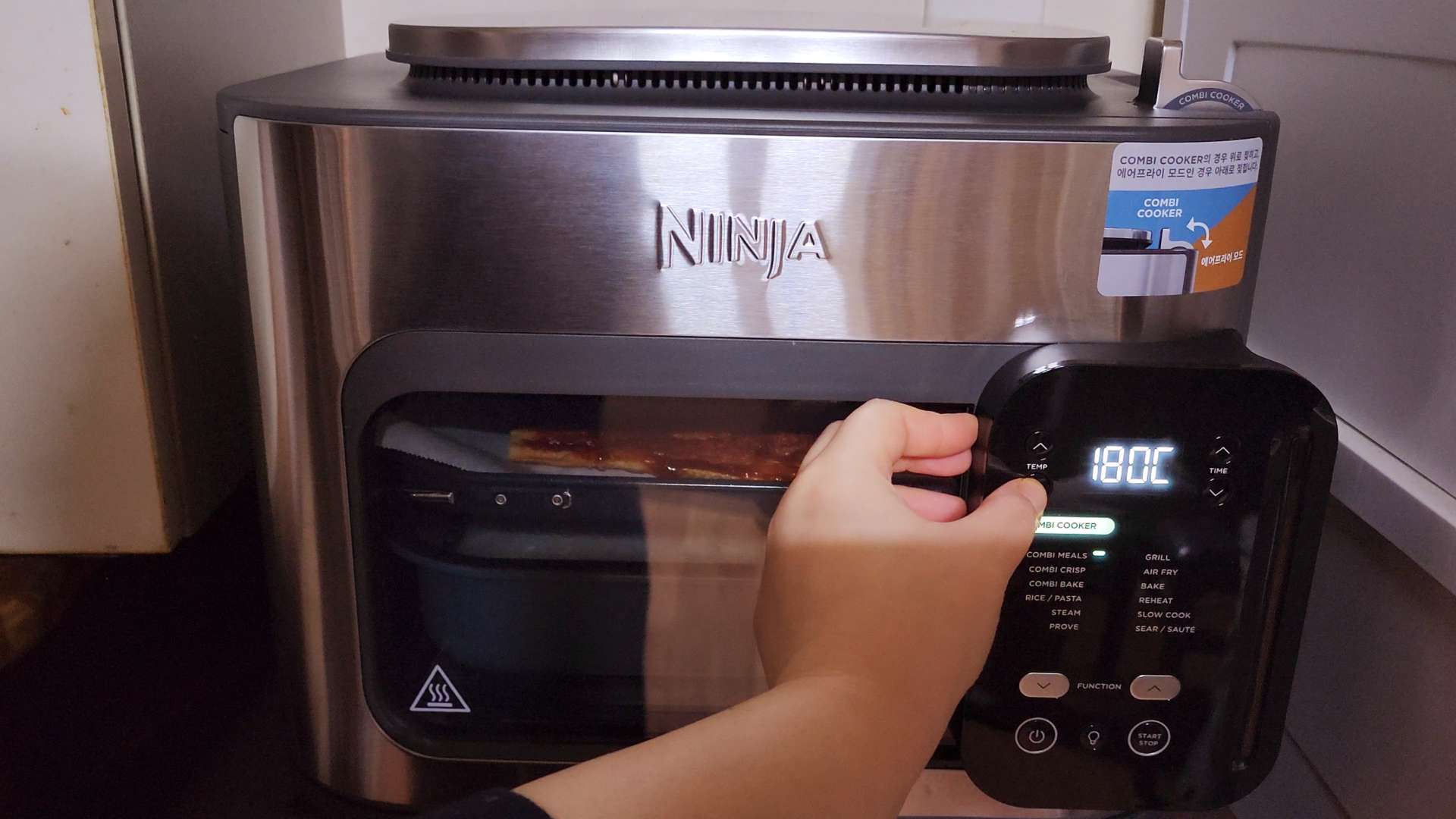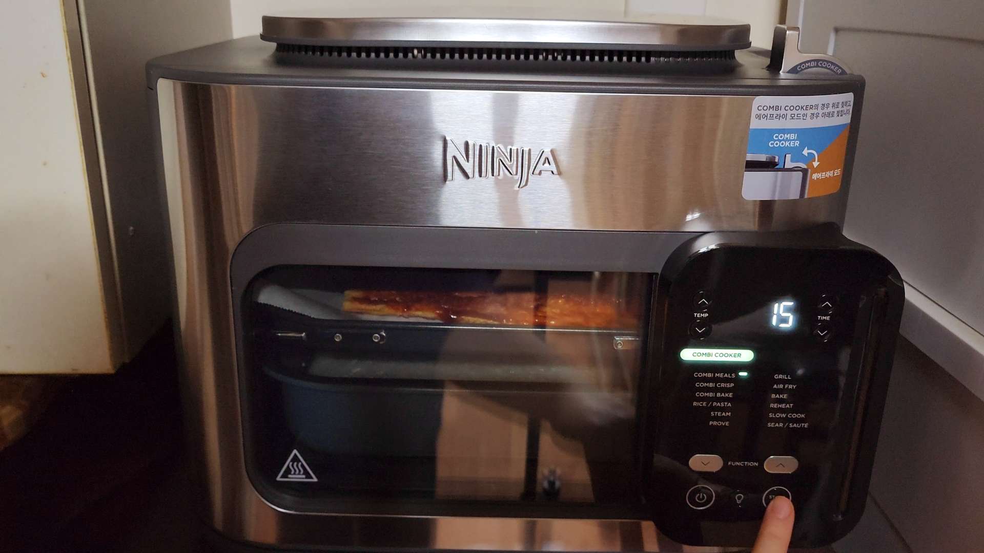 COMBI MEALS 모드를 선택하고 180도에서 15분으로 맞춰주세요.