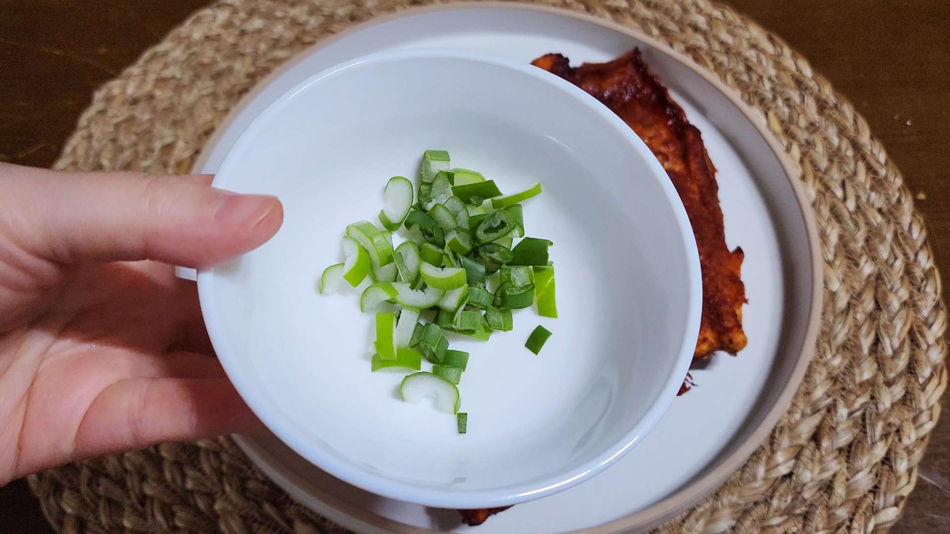 그릇에 황태구이를 담고 대파, 통깨를 뿌려줍니다.