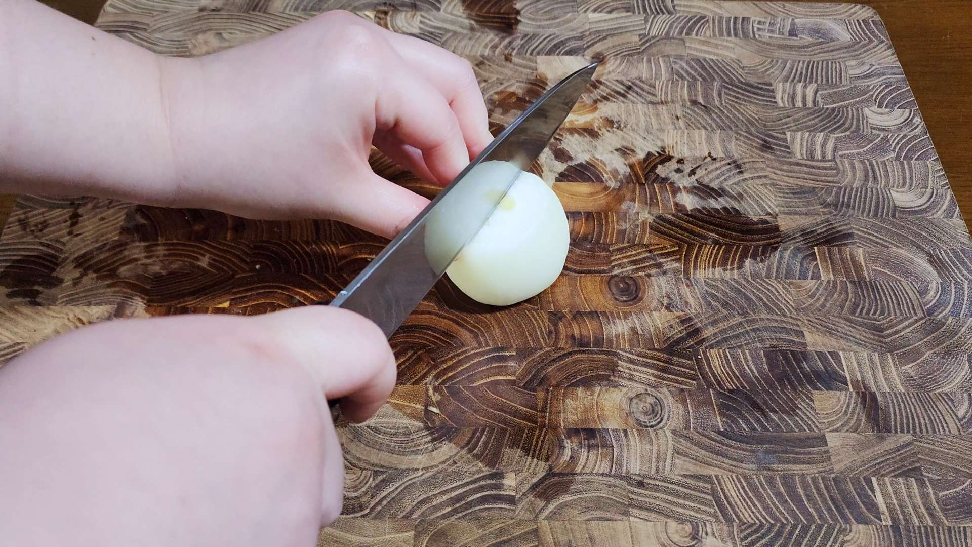 재료: 애호박 1개, 양파 1개, 홍고추 1/2개, 식용유