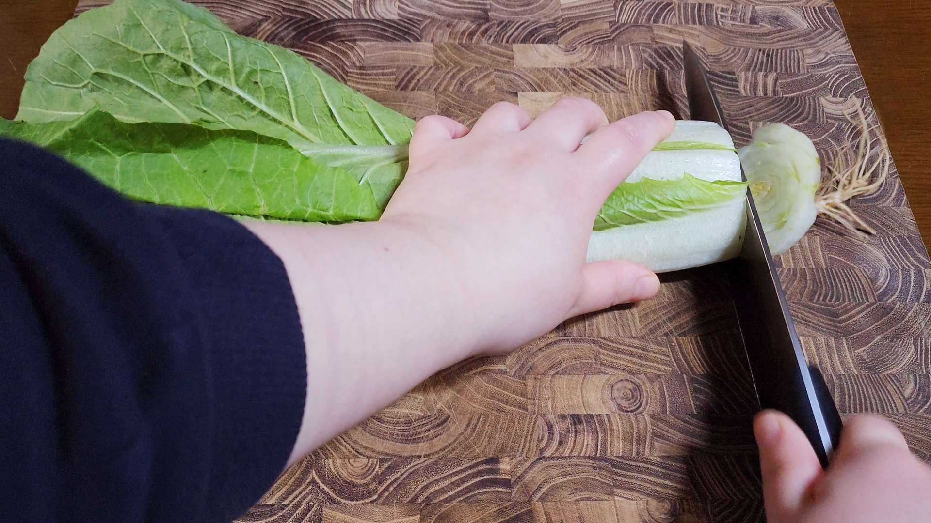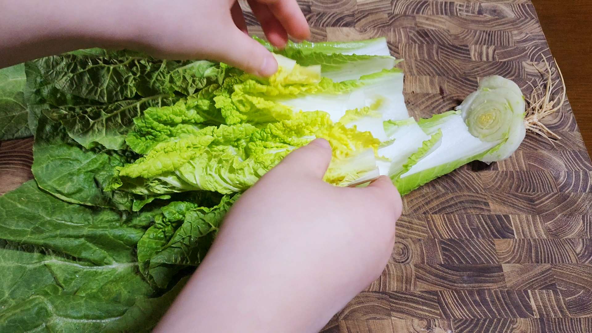 얼갈이배추는 뿌리를 자르고 시든 잎은 제거해줍니다.