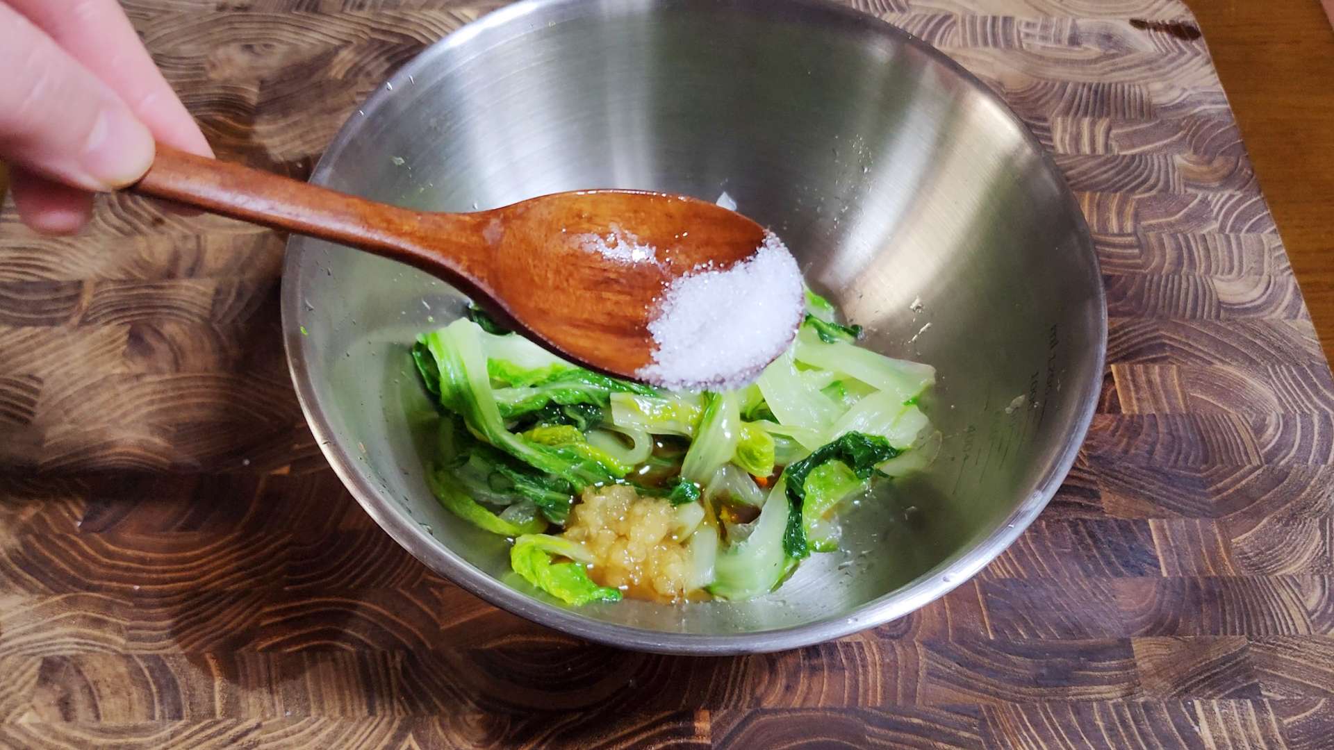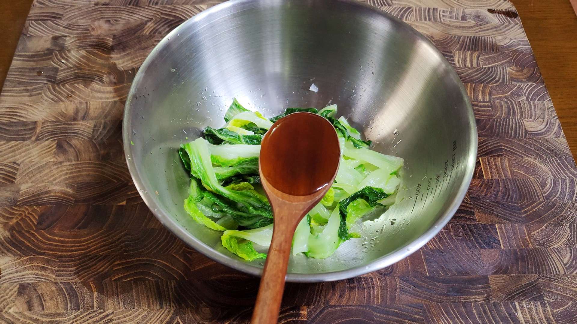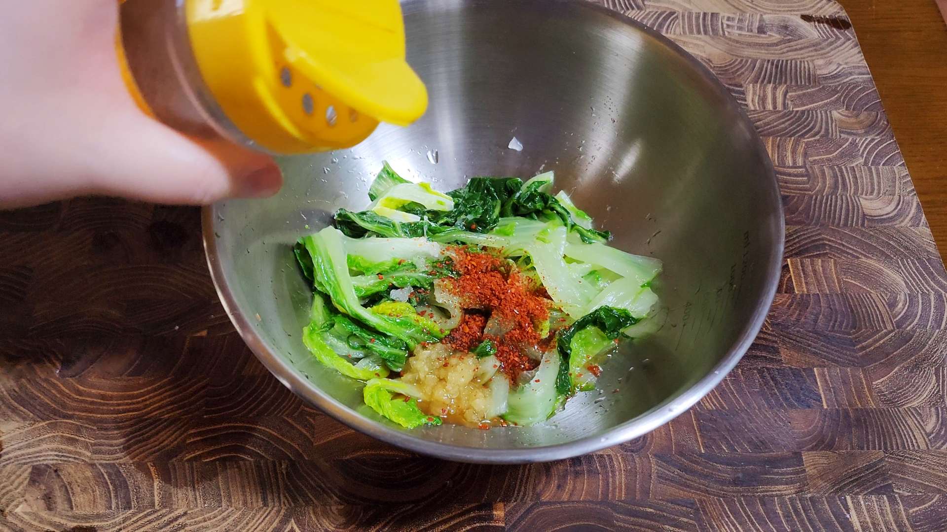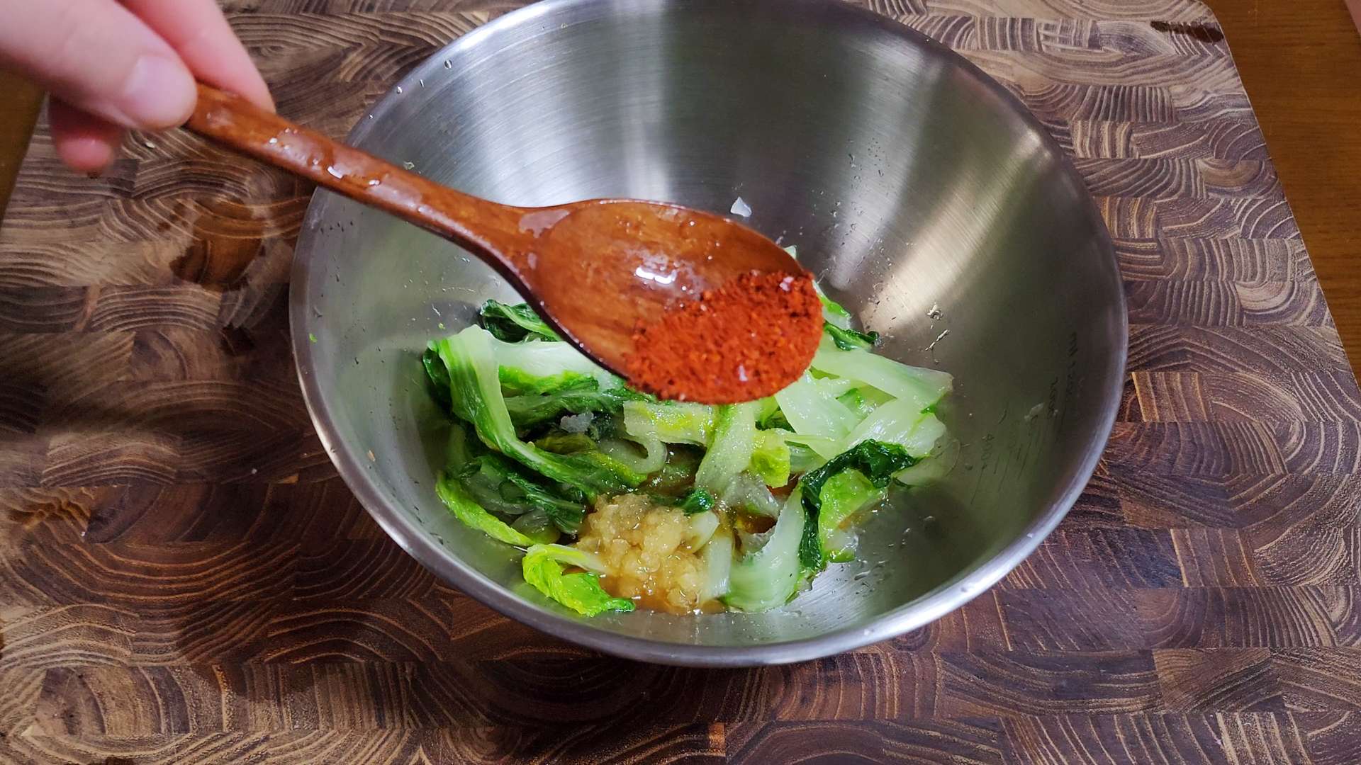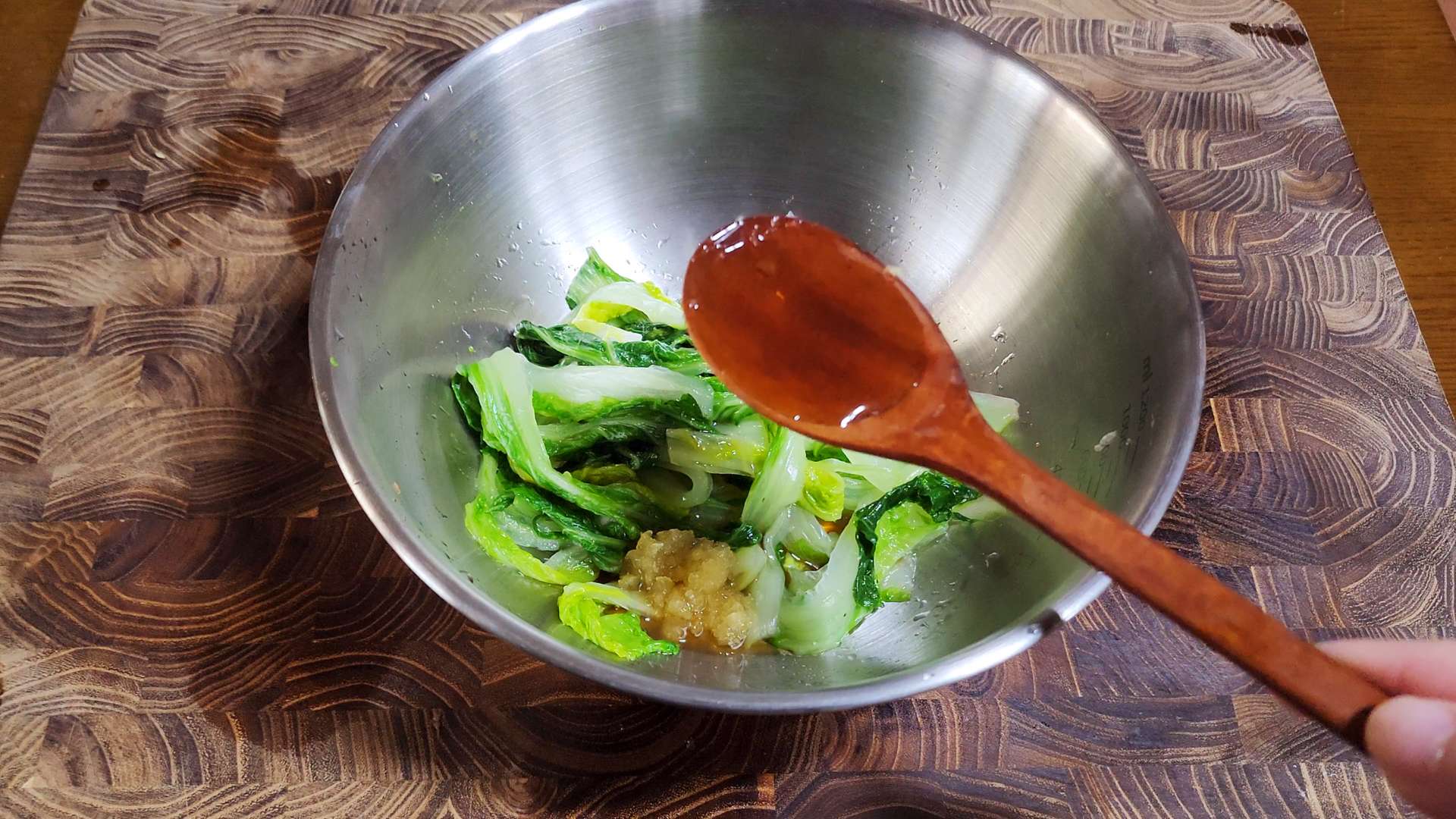 얼갈이배추, 맛간장 1T, 다진 마늘 1/3T, 참기름 1T,