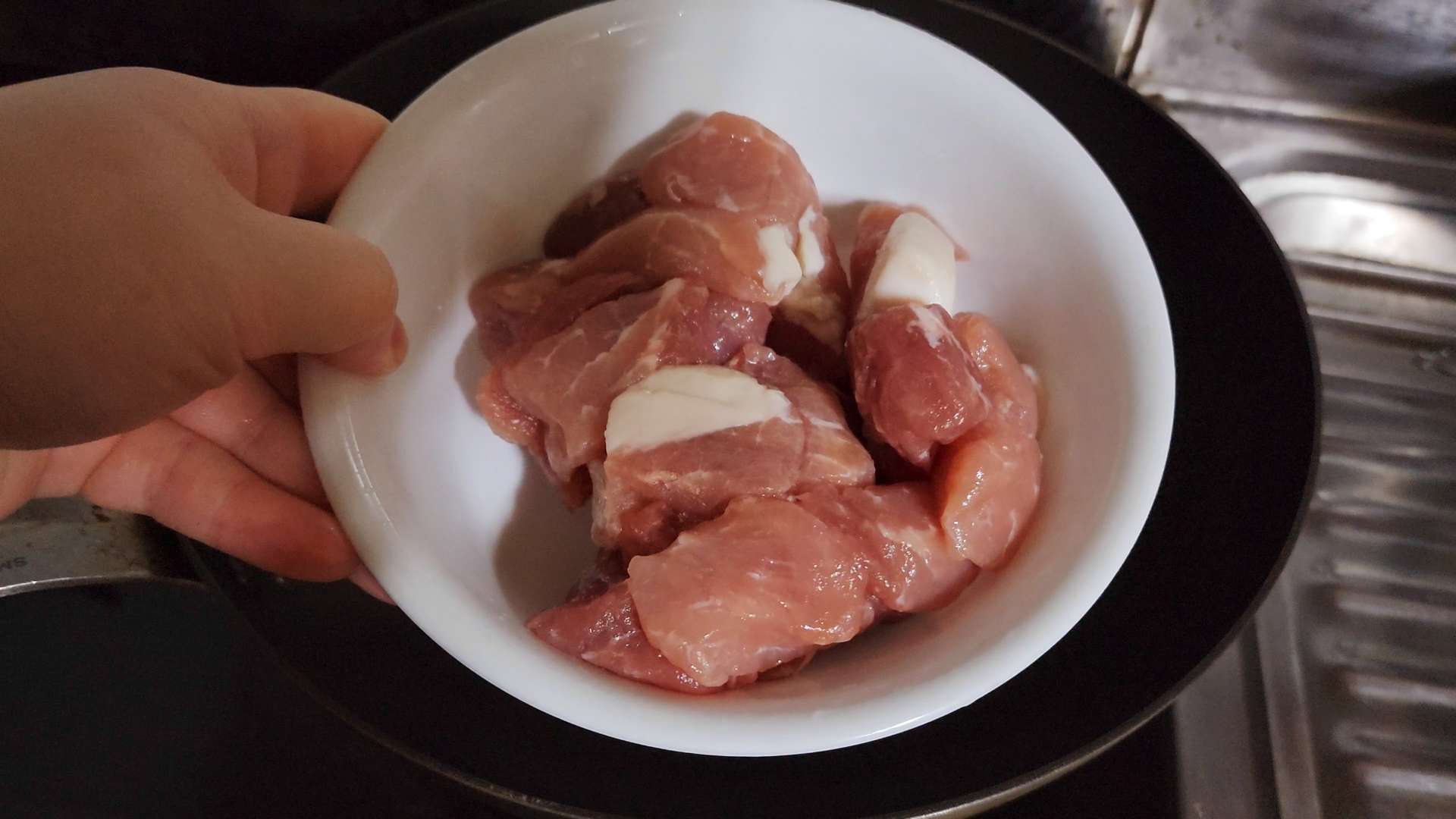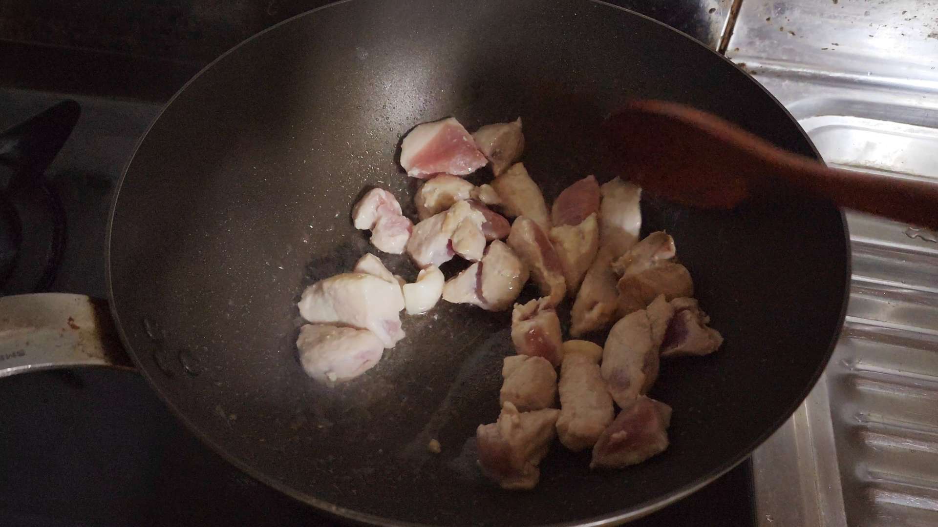 중불로 달군팬에 식용유를 두르고 앞다리살 찌개용 200g을 넣고 볶아줍니다.