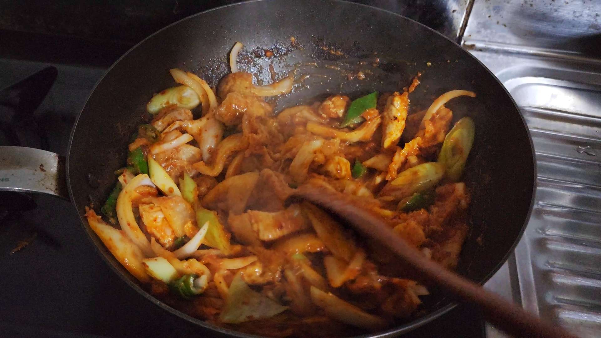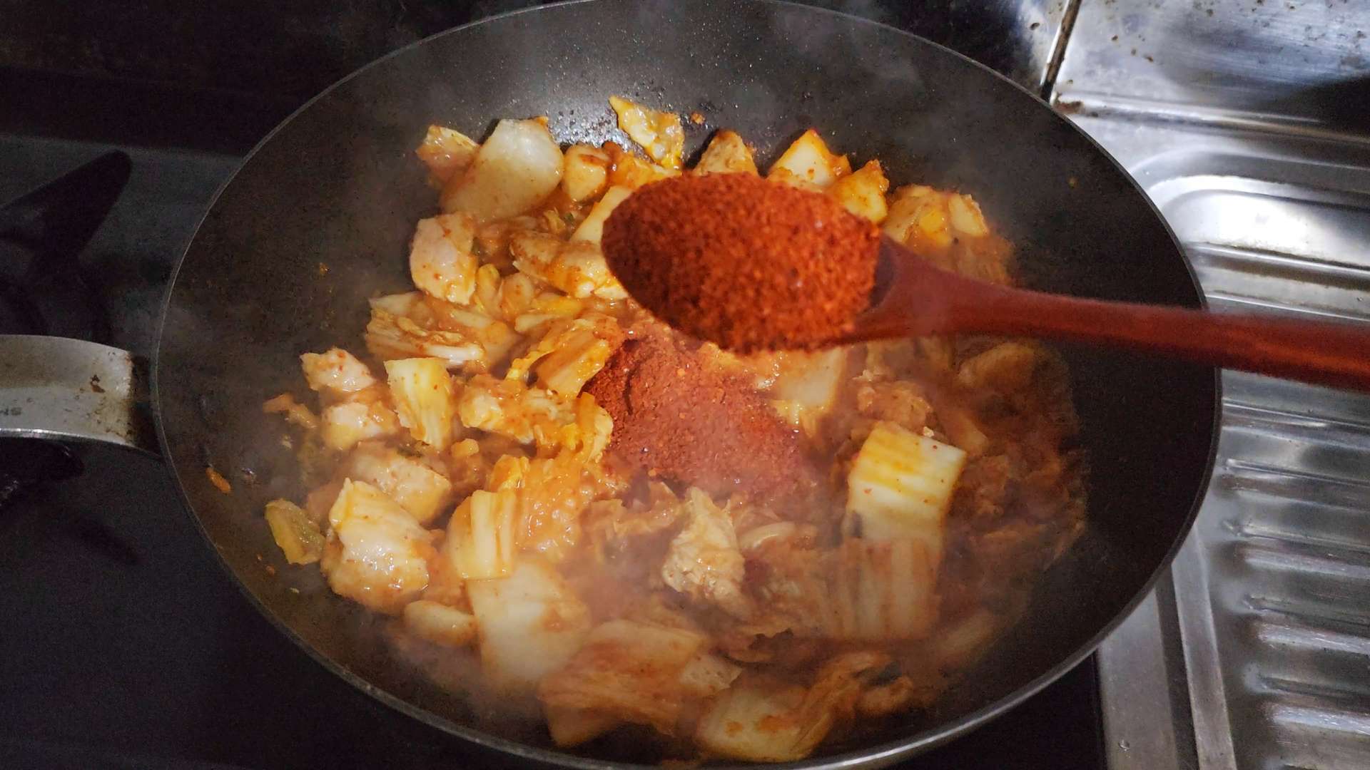 후춧가루, 양파, 대파, 청양고추 넣고 볶아줍니다.