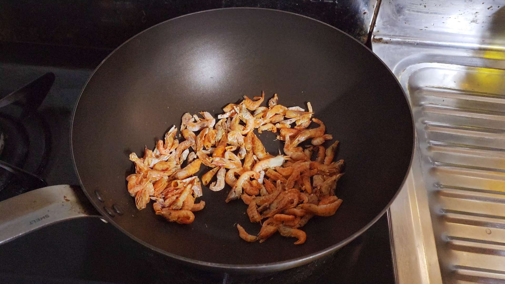 마른 팬에 건새우를 넣고 약불에서 볶아 그릇에 덜어둡니다.