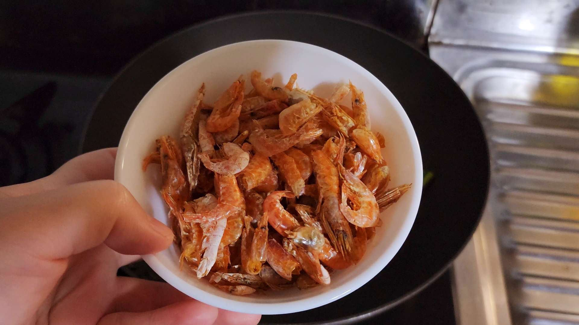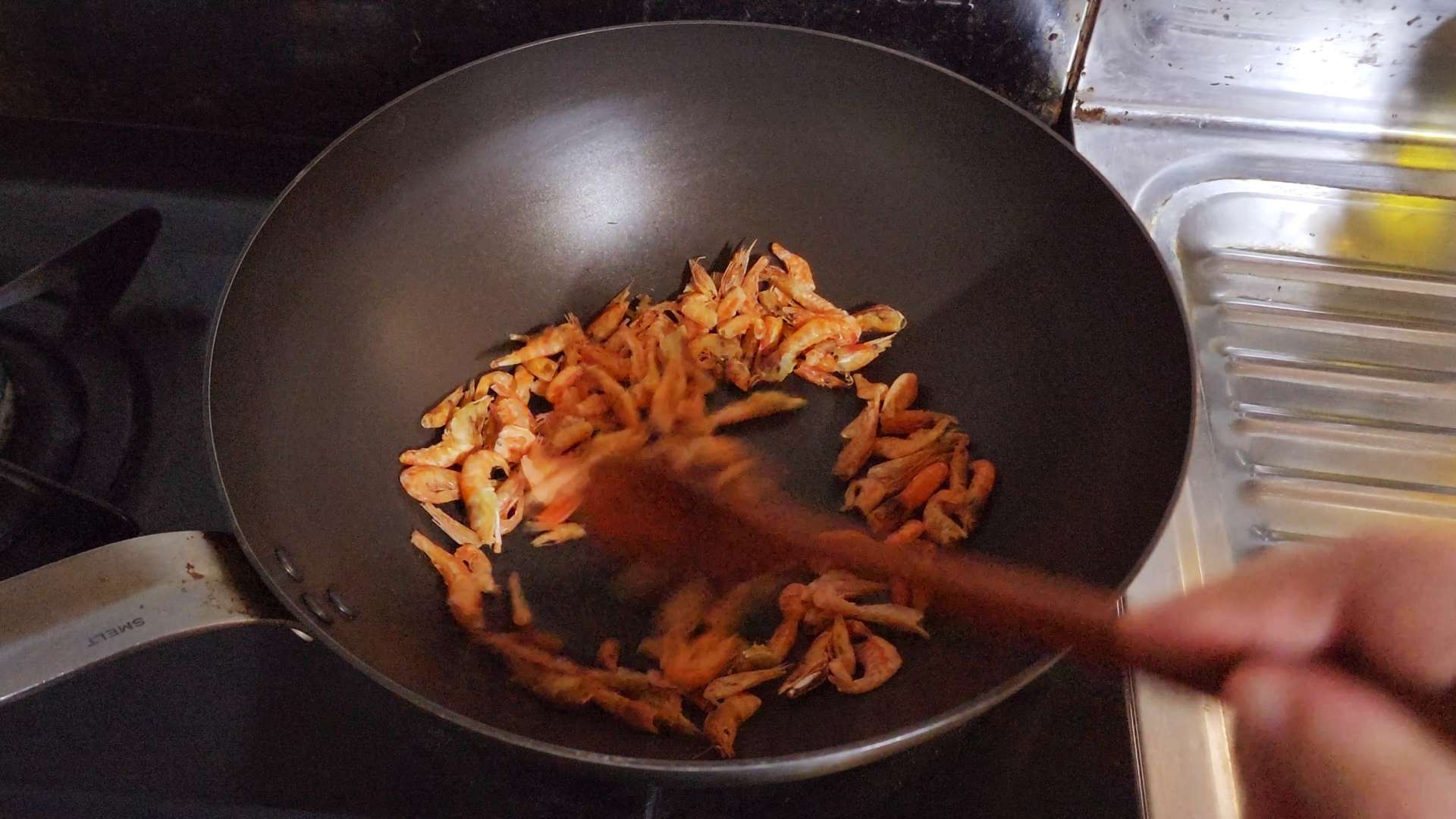 마른 팬에 건새우를 넣고 약불에서 볶아 그릇에 덜어둡니다.
