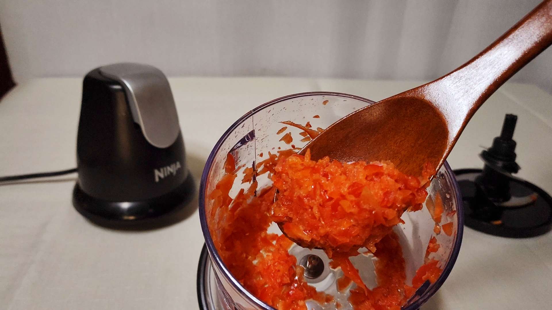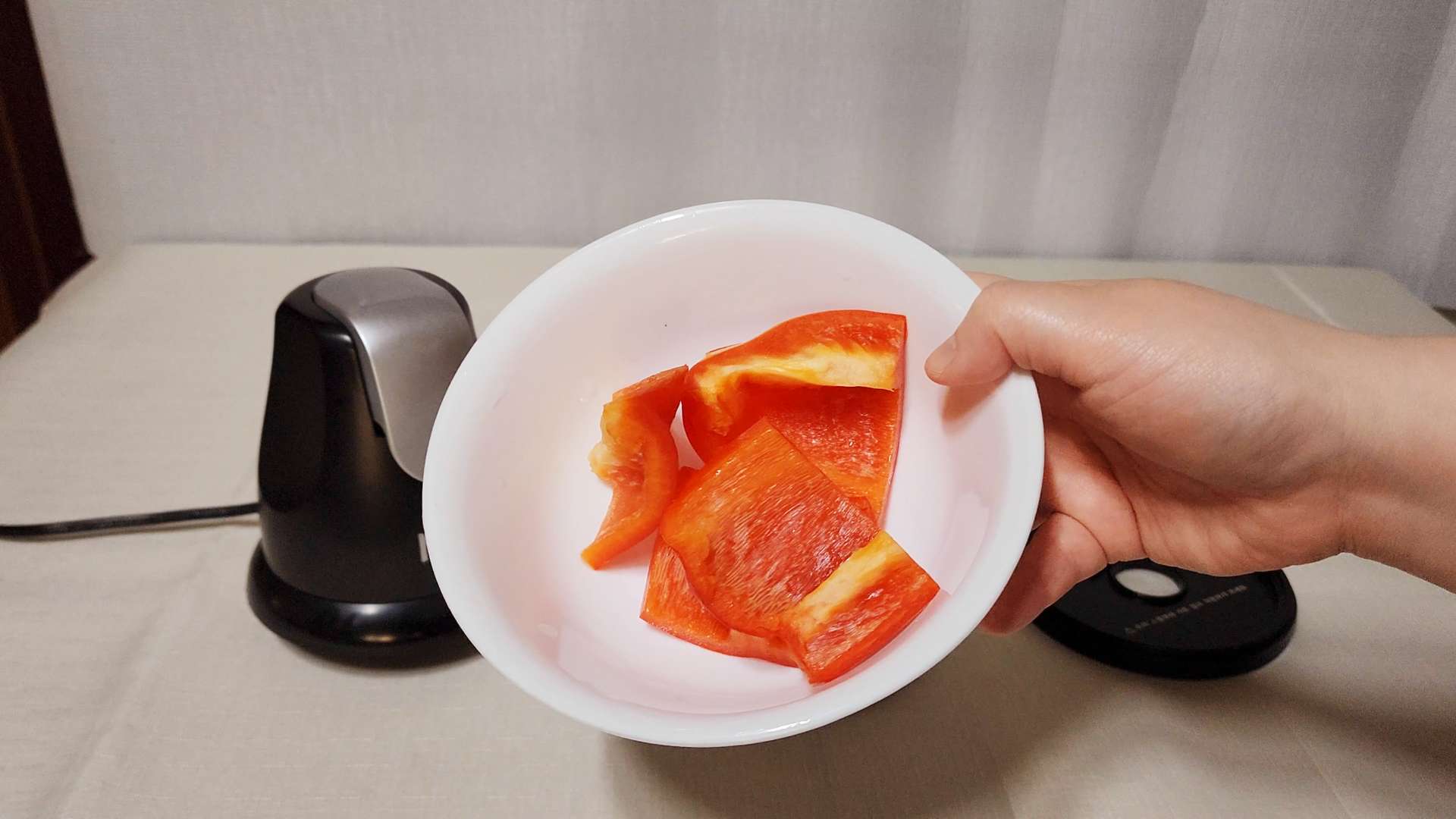 빨간 파프리카 1/2개는 블렌더로 다져줍니다.