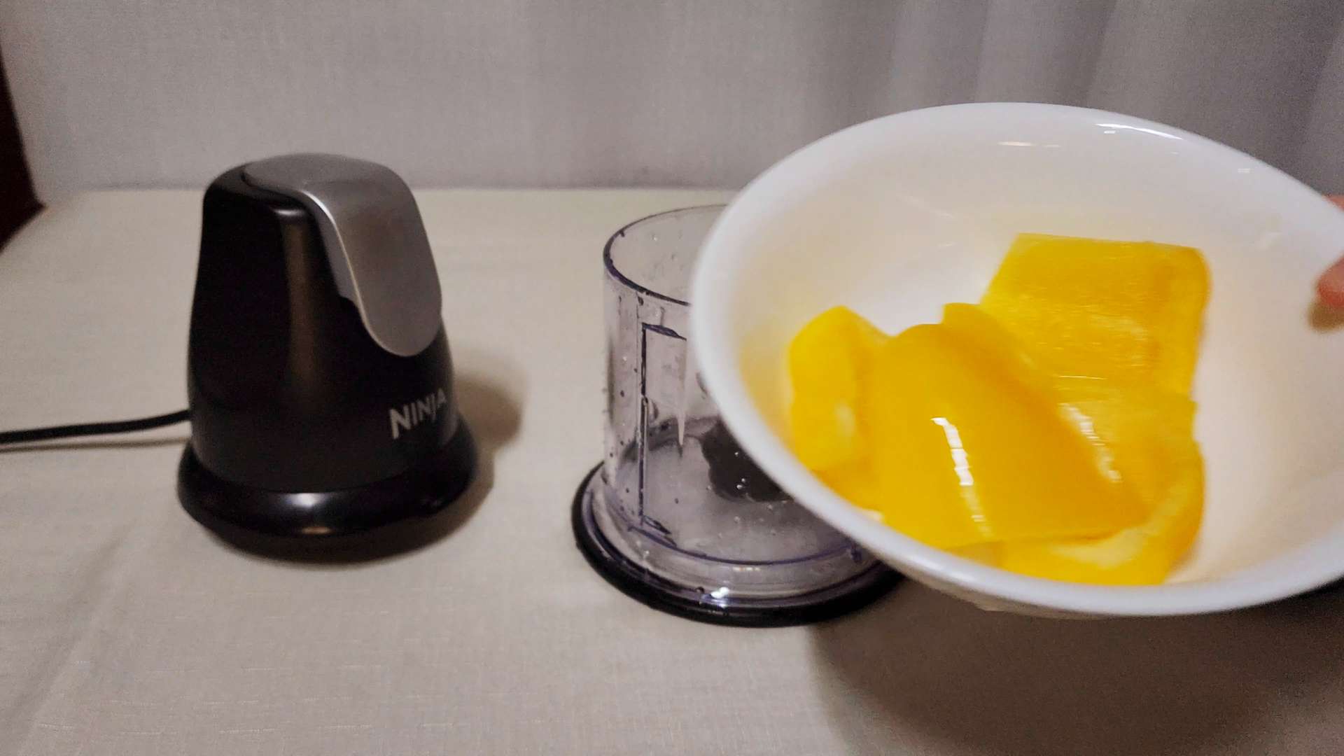 노란 파프리카 1/2개는 블렌더로 다져줍니다.