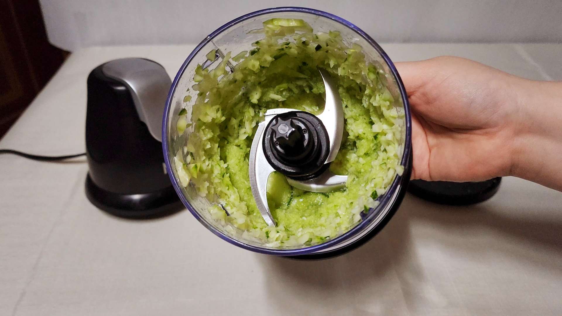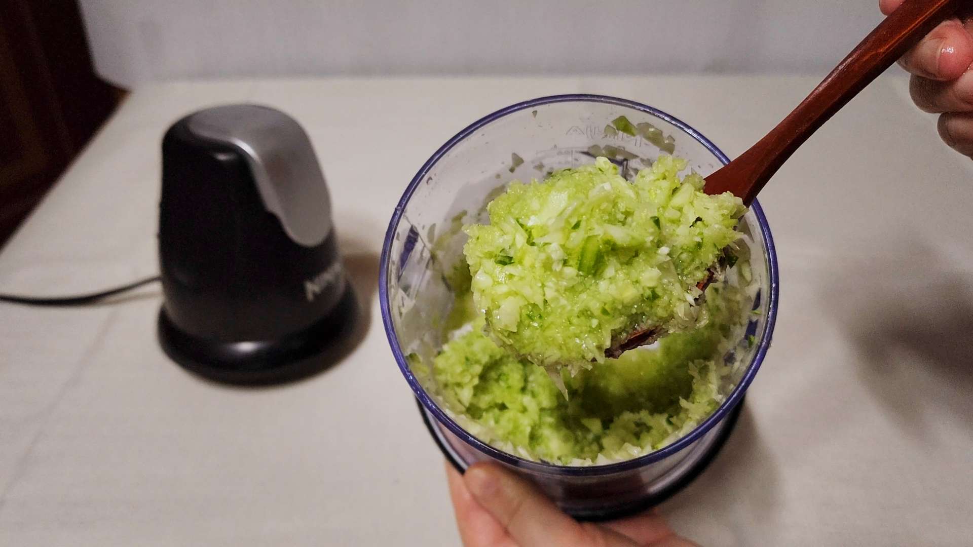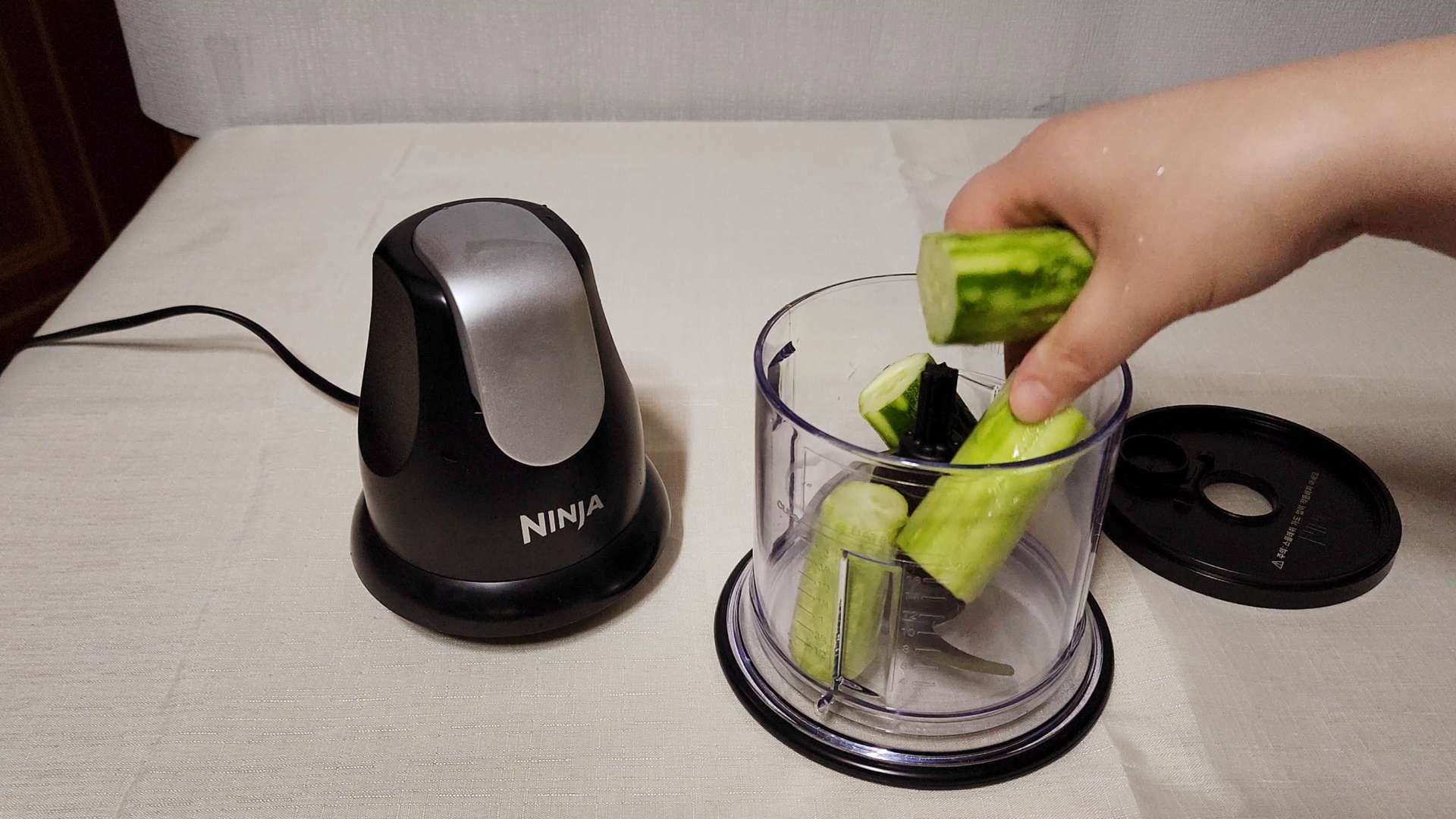 오이 1개는 큼직하게 잘라 닌자 프로페셔널 초퍼 다지기로 다져줍니다.
