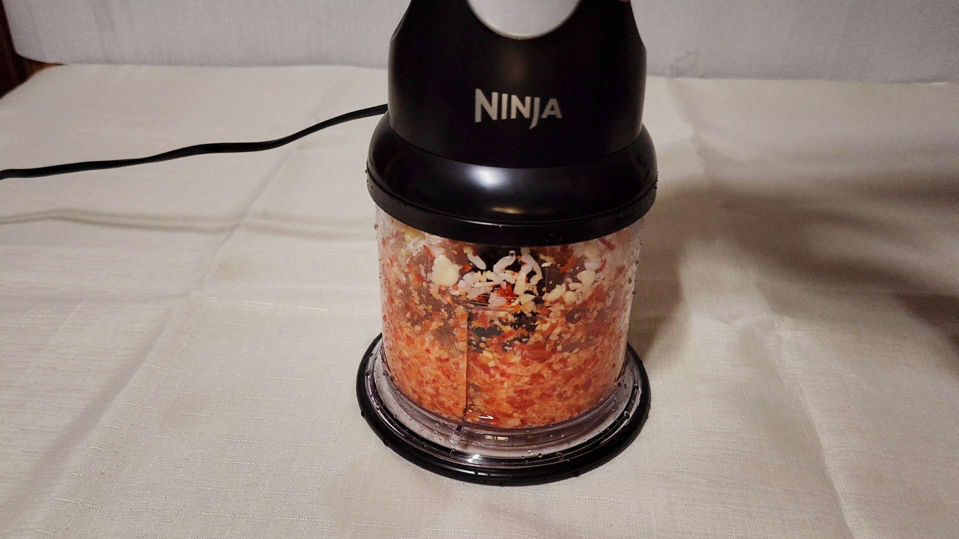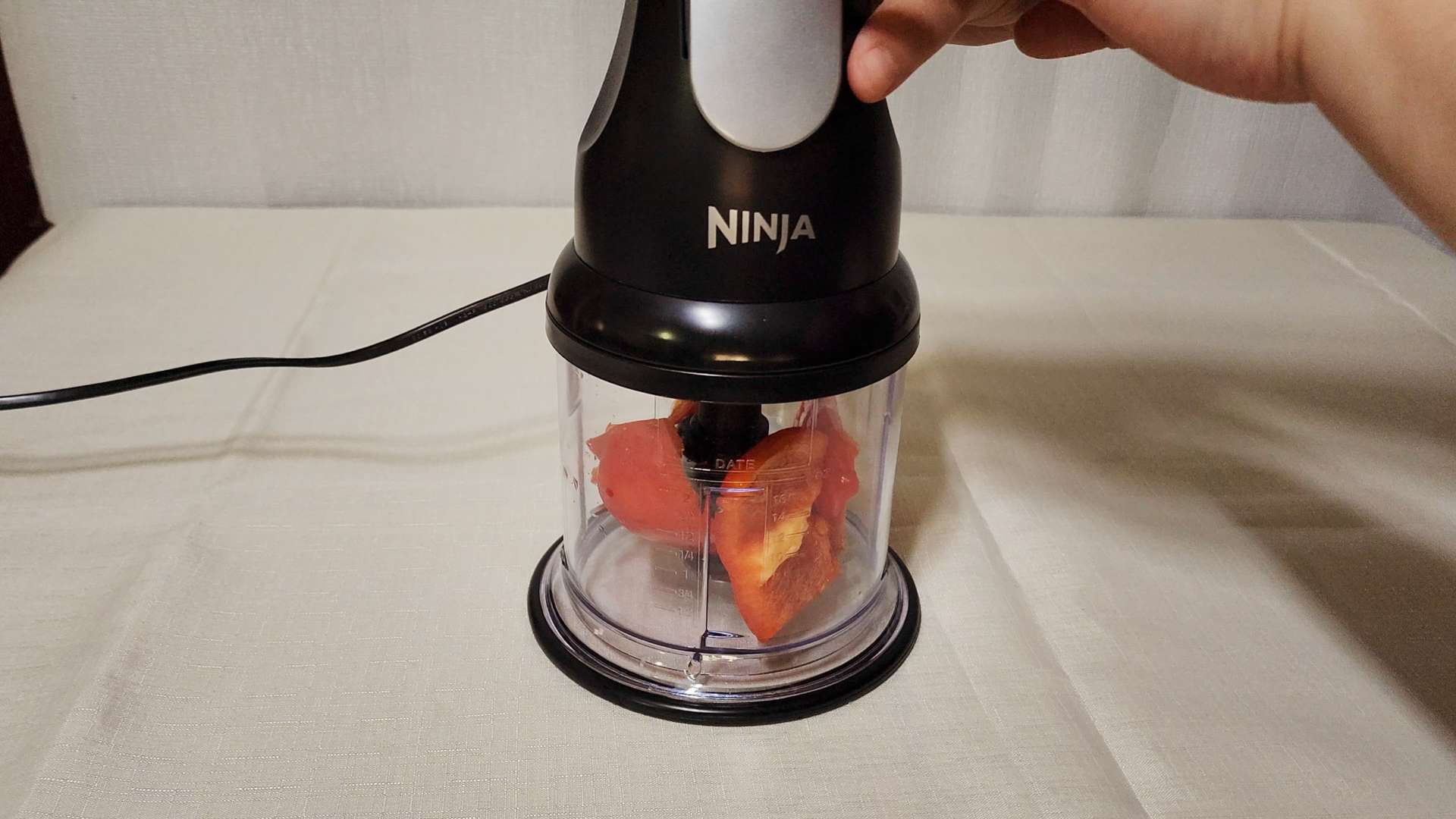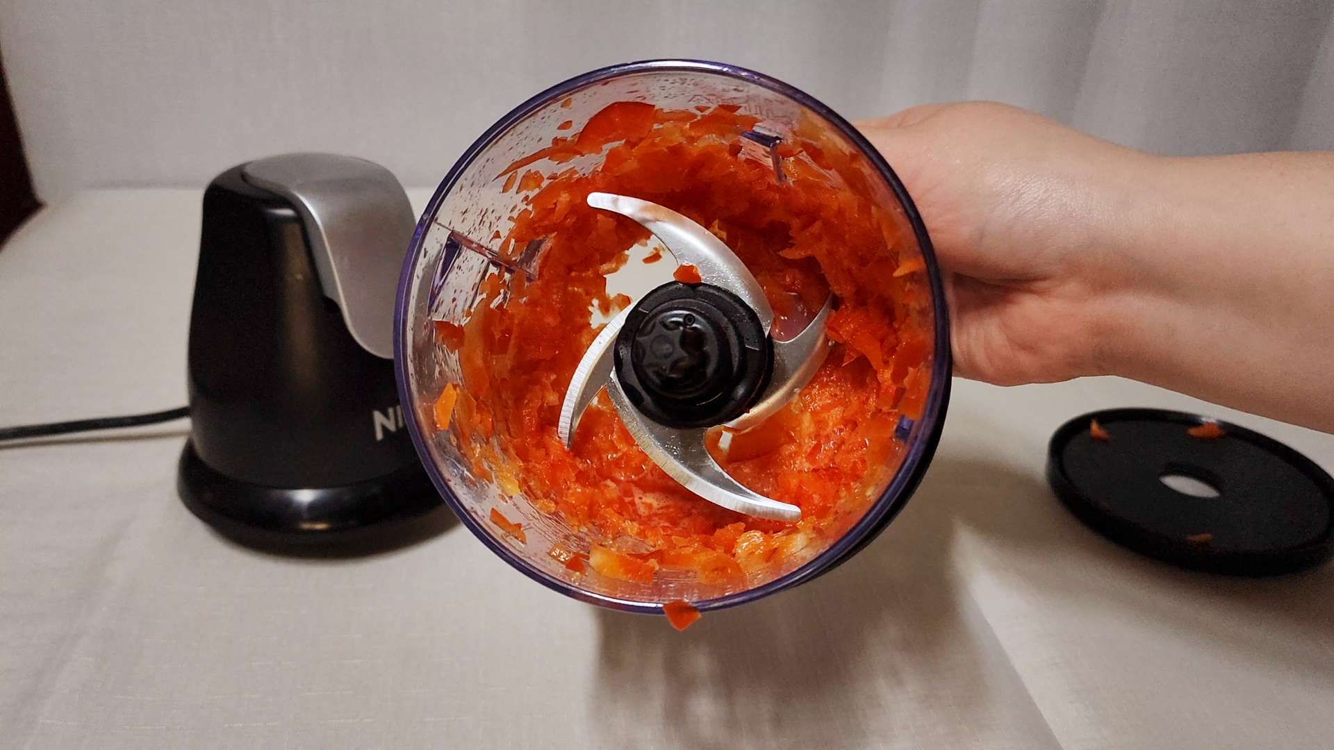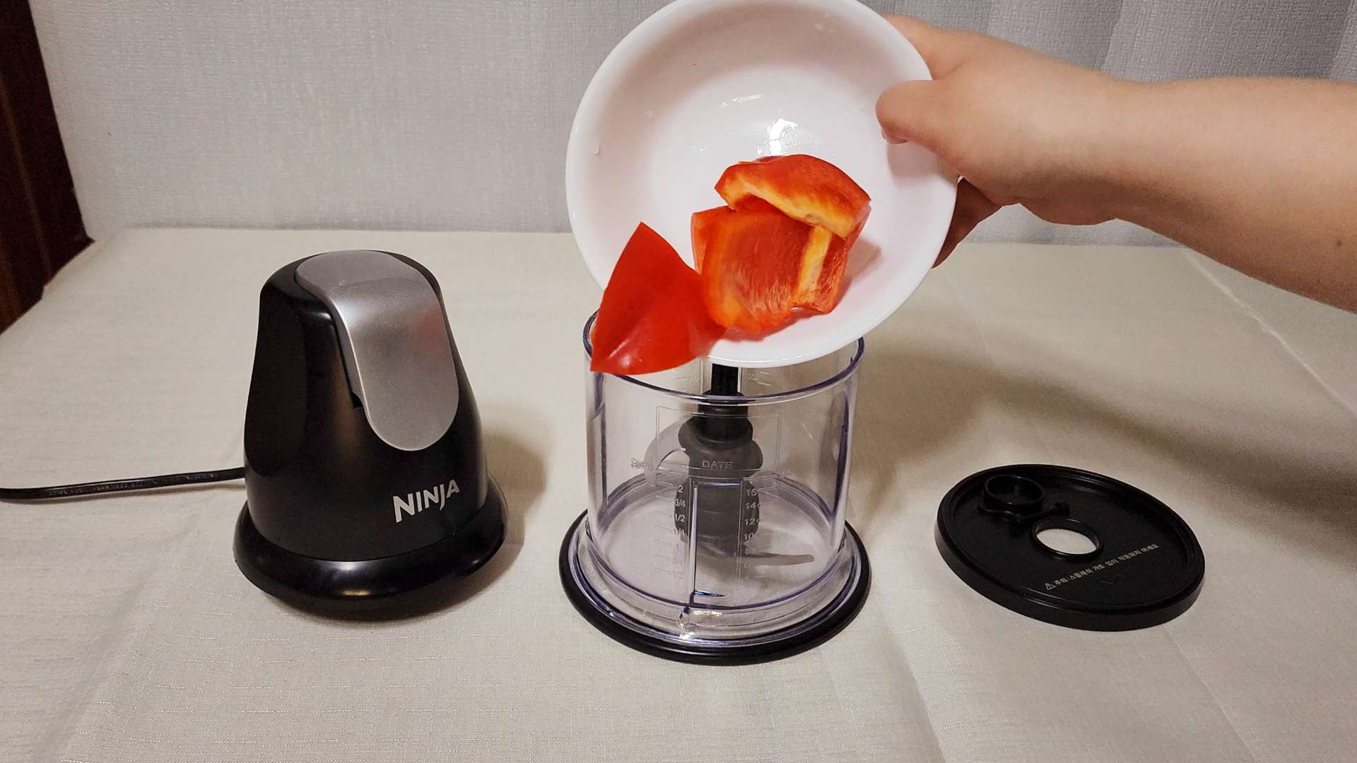 빨간 파프리카 1/2개는 닌자 프로페셔널 초퍼 다지기로 다져줍니다.