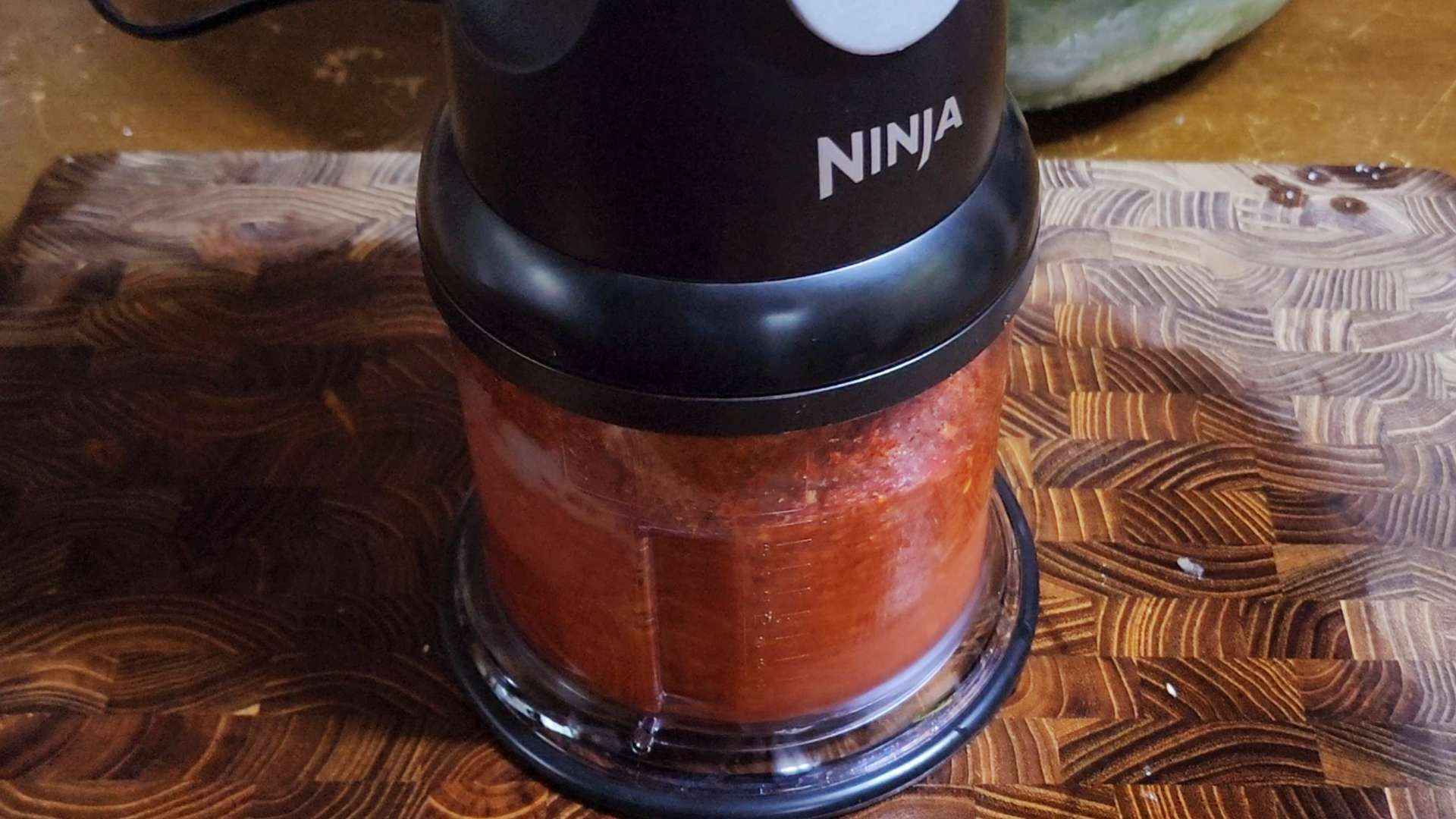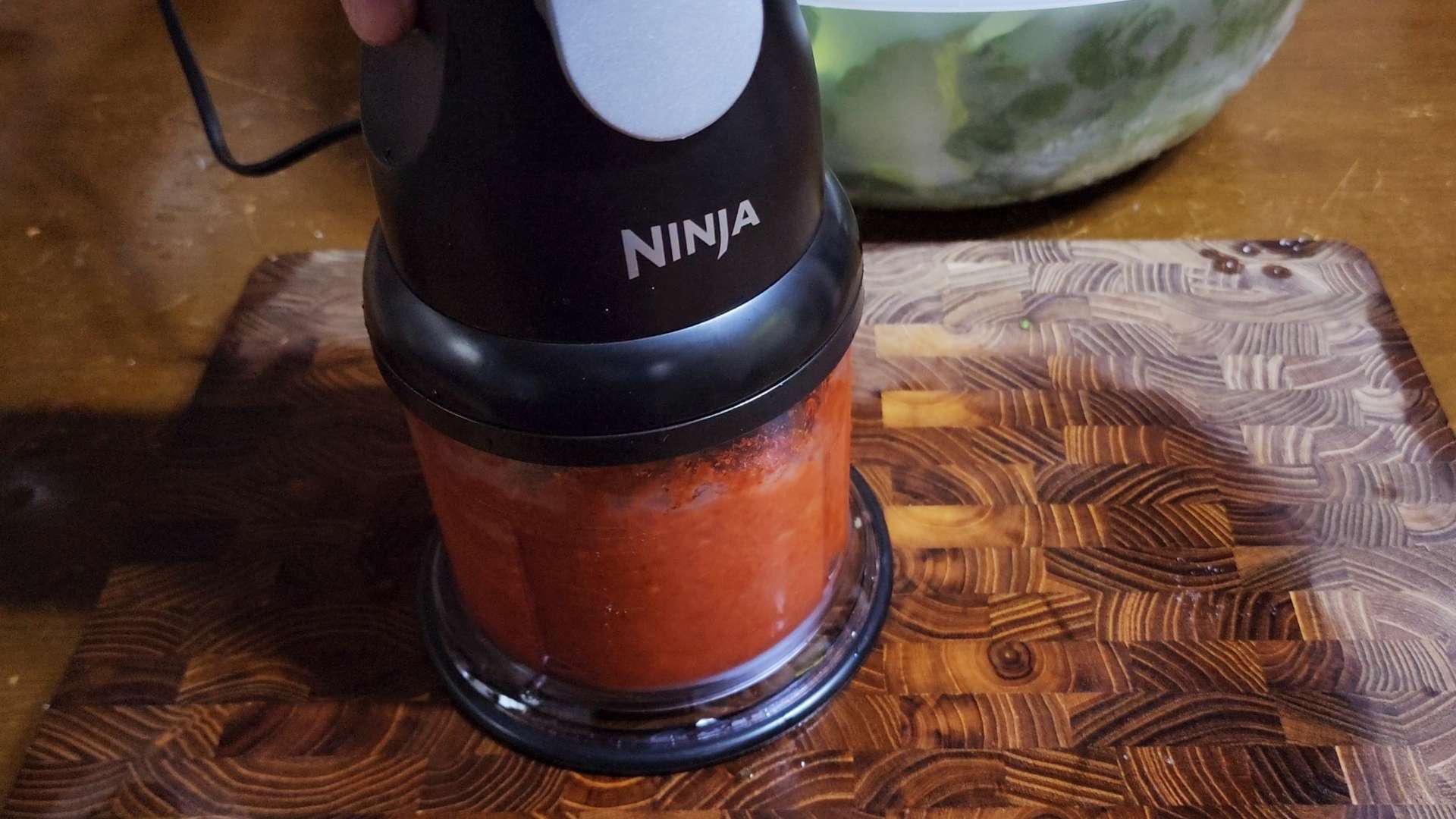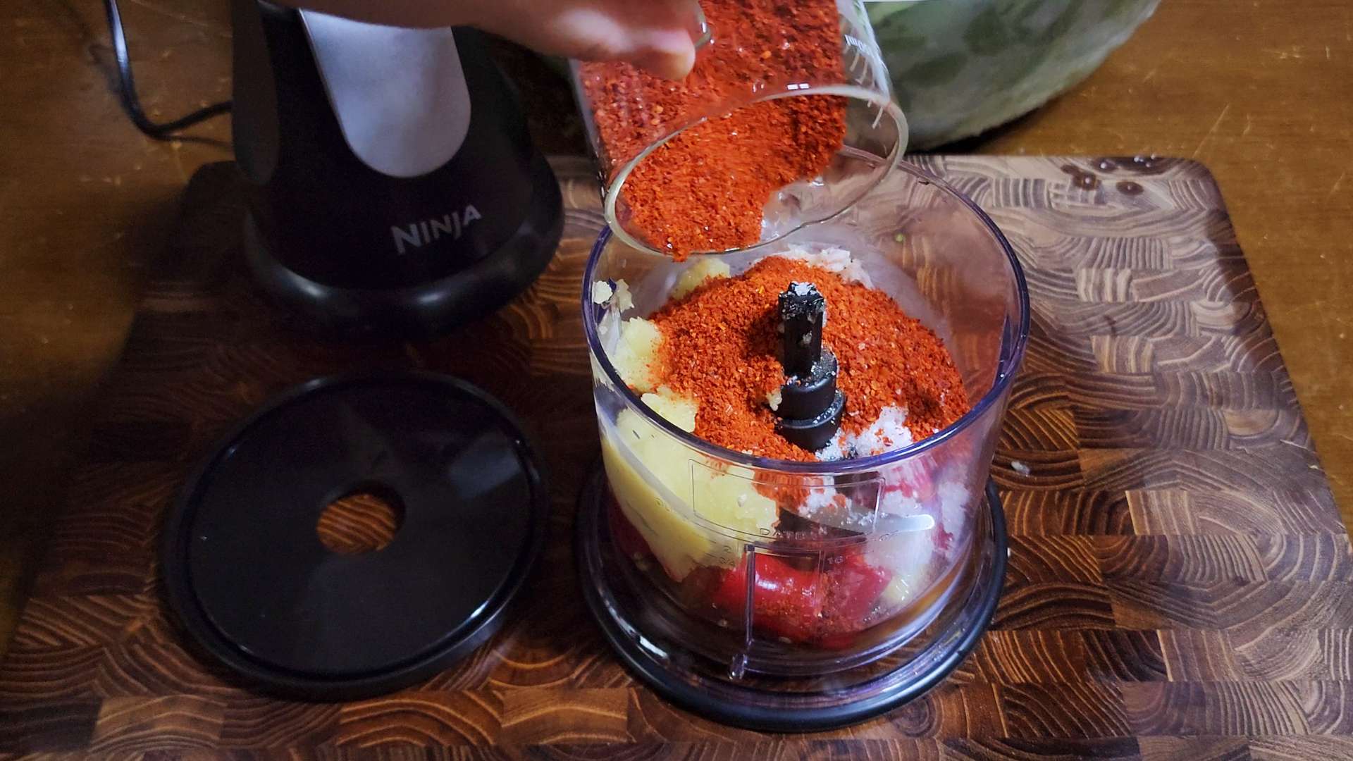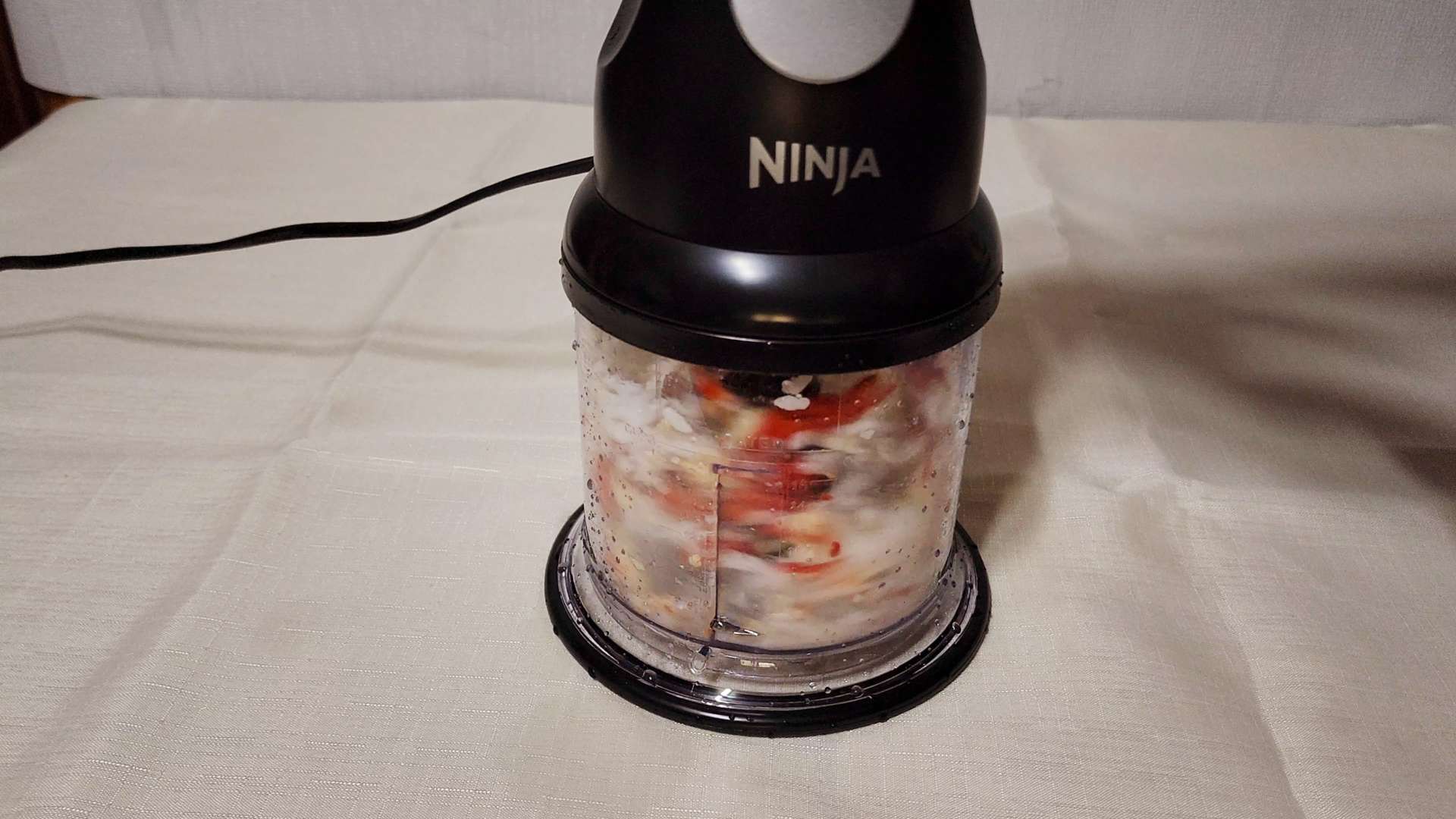빨간 파프리카 1/2개는 닌자 프로페셔널 초퍼 다지기로 다져줍니다.