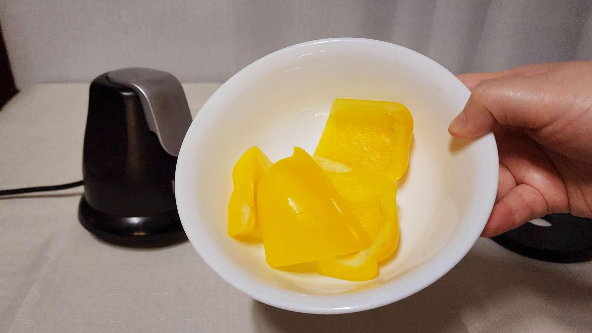 노란 파프리카 1/2개는 닌자 프로페셔널 초퍼 다지기로 다져줍니다.