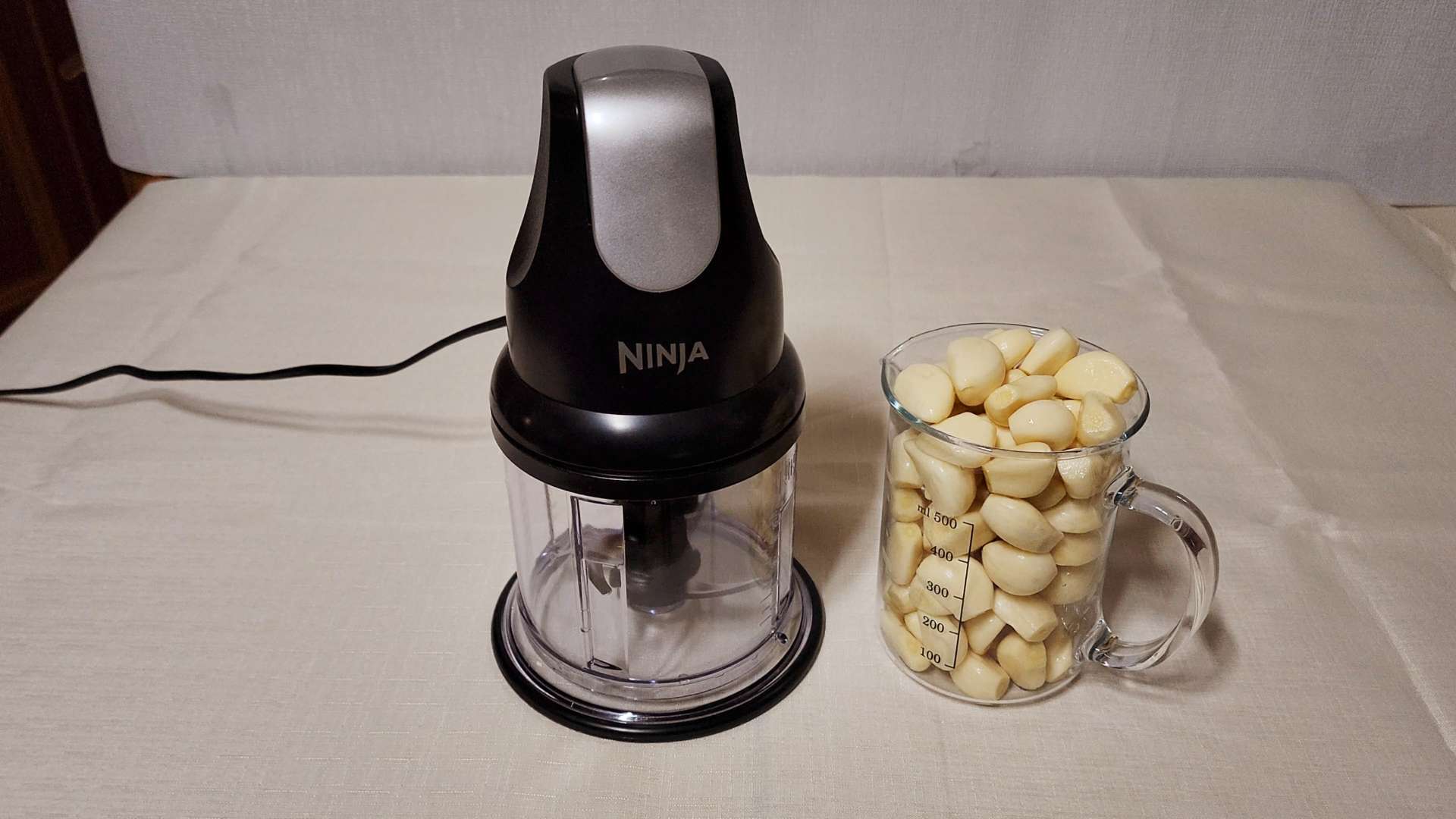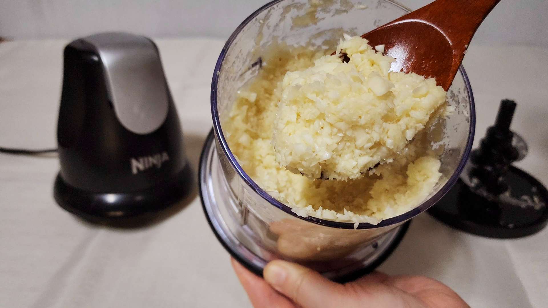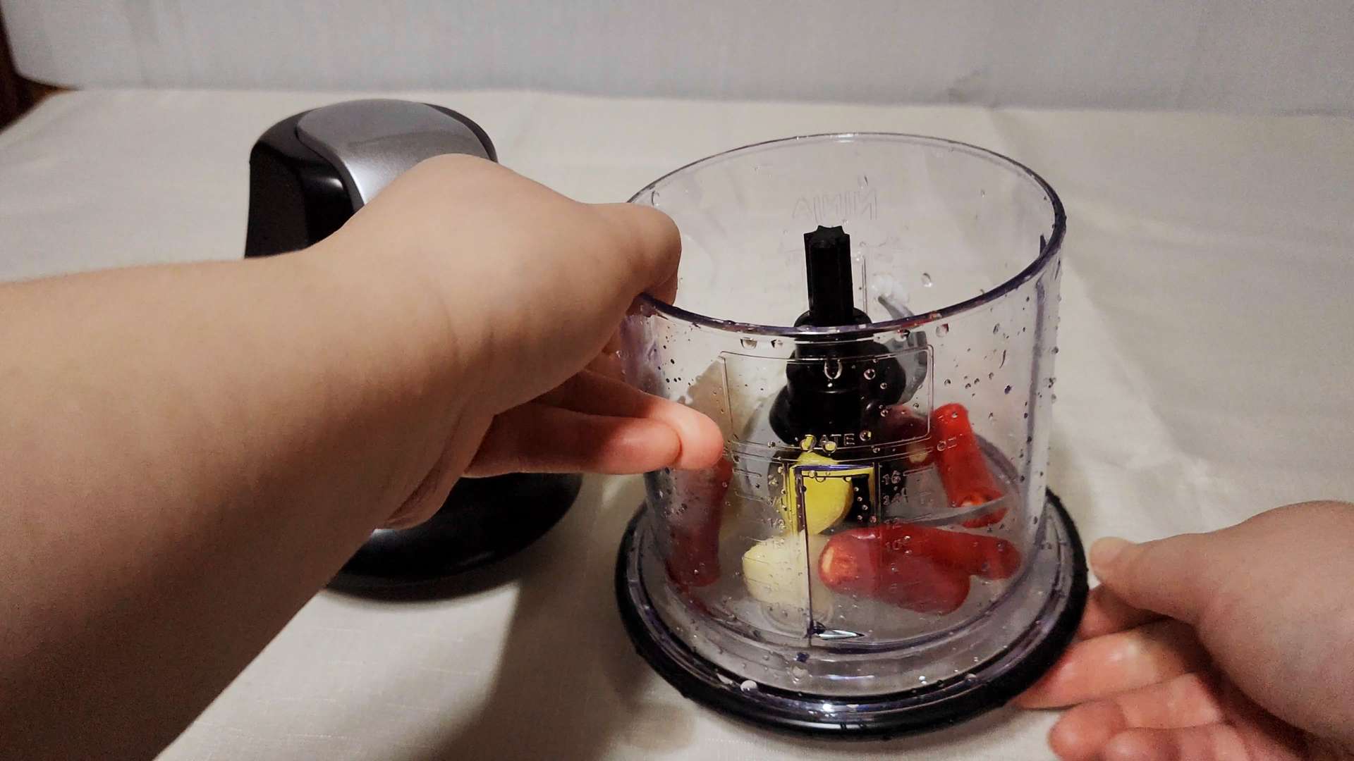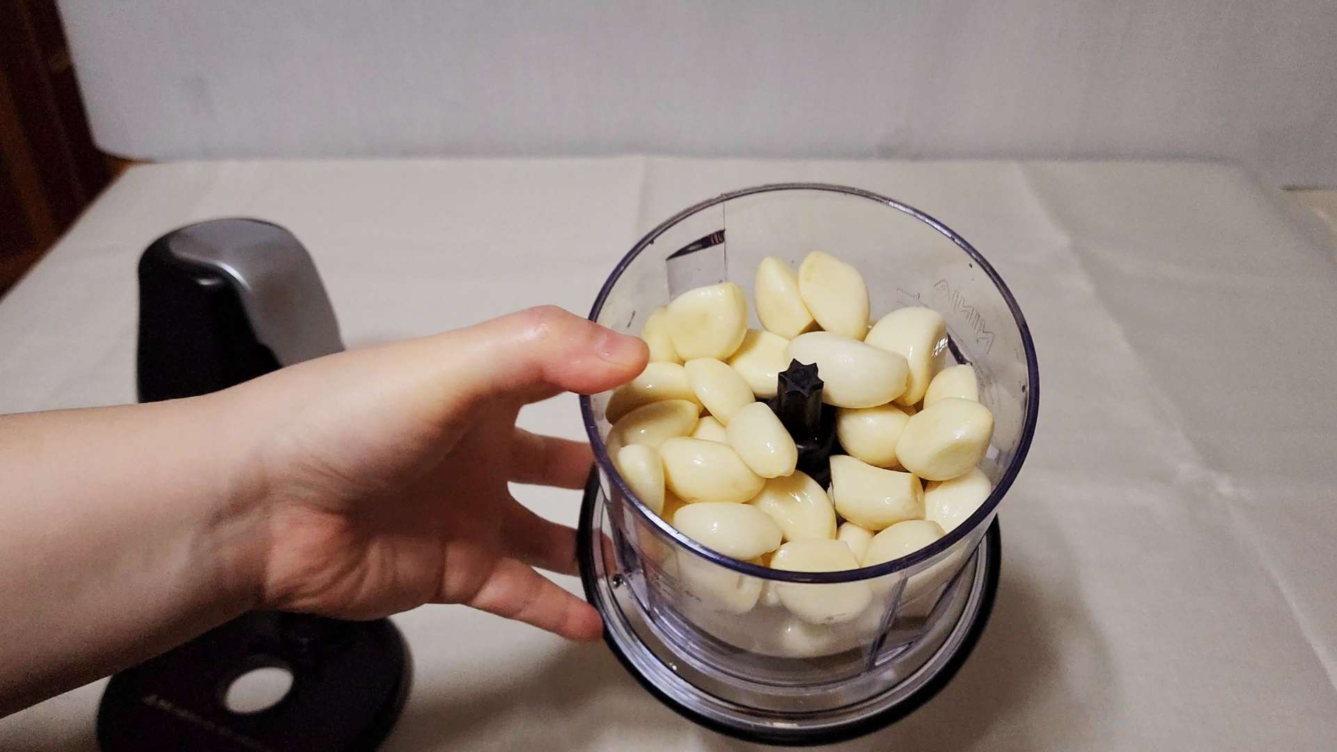 깨끗하게 씻고 꼭지를 자른 마늘을 넣고 버튼을 눌러 다져줍니다.