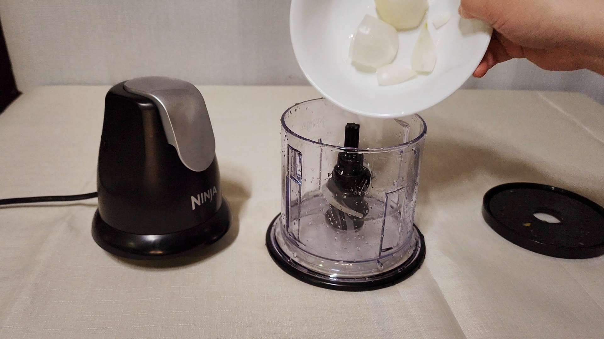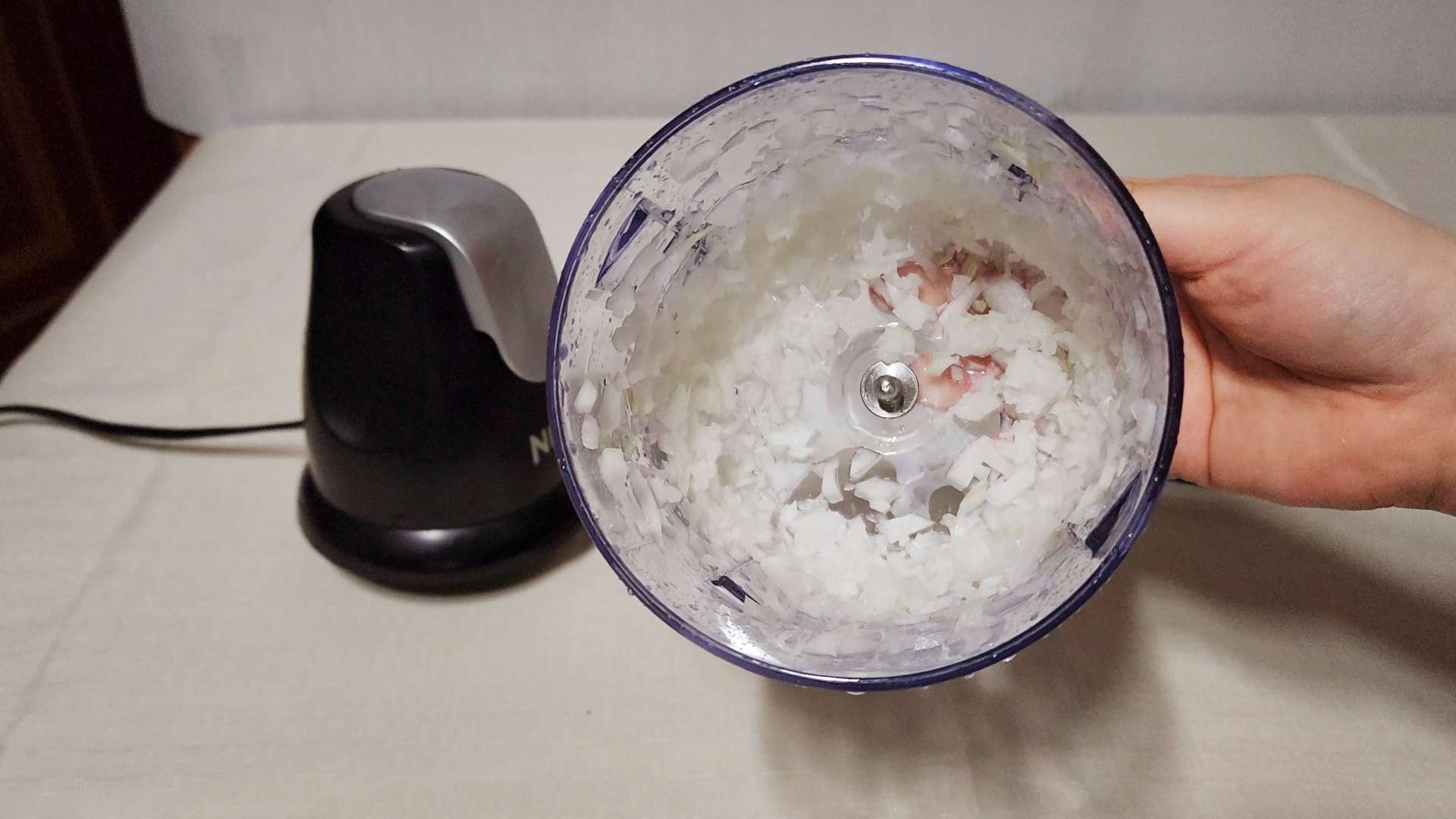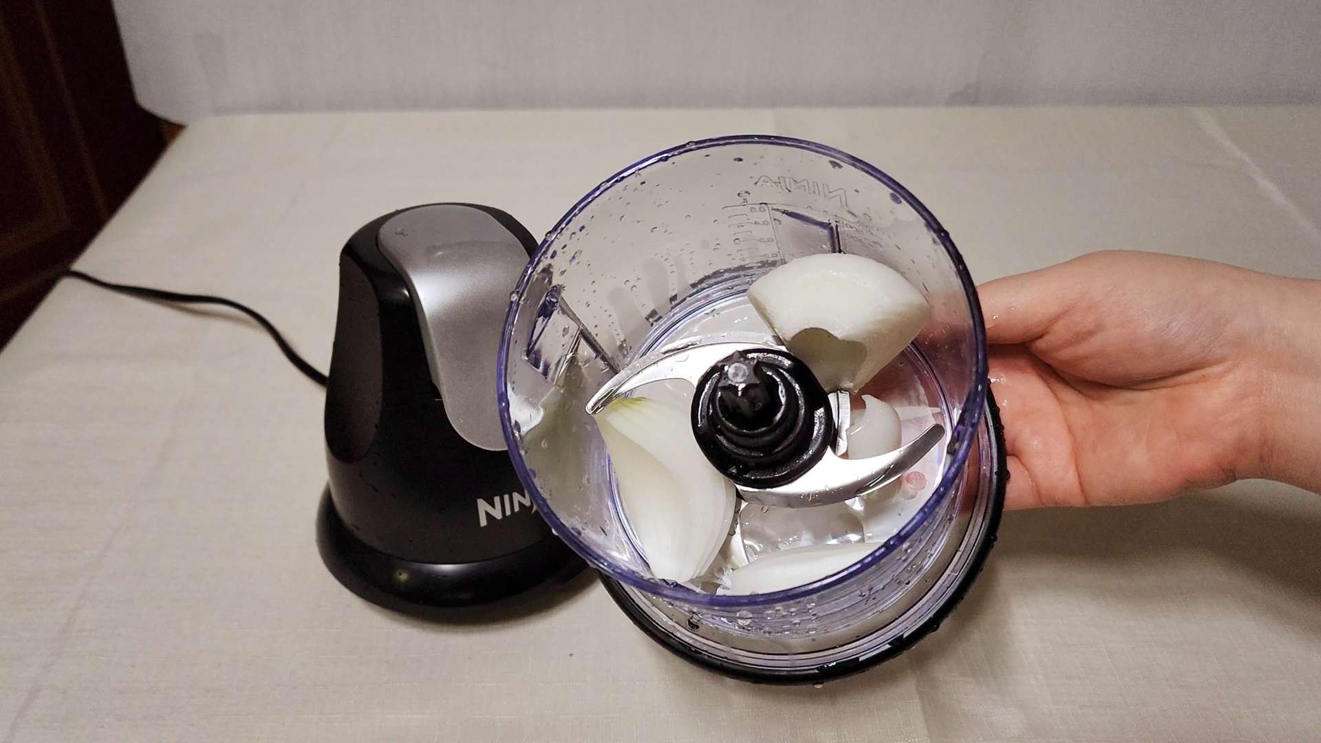 양파 1/2개는 큼직하게 잘라 닌자 프로페셔널 초퍼 다지기로 다져줍니다.