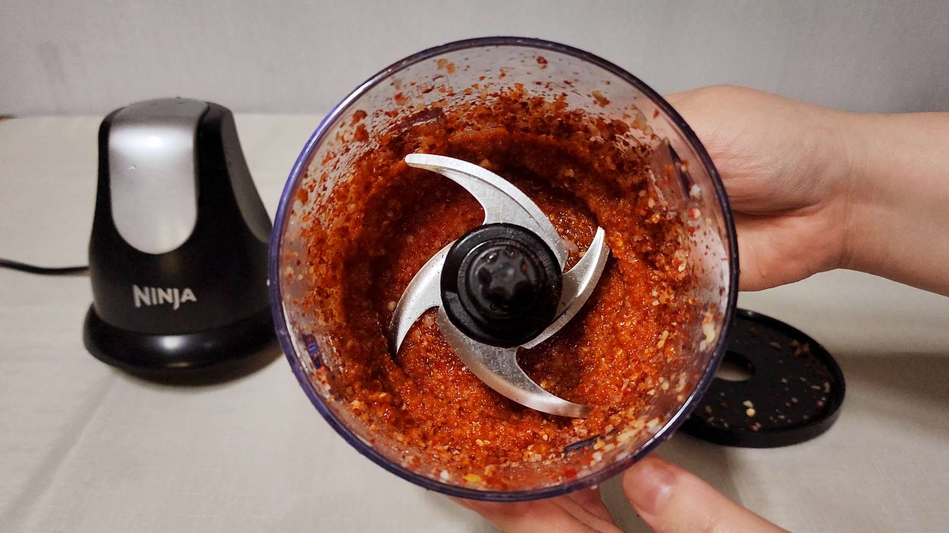 김치양념은 닌자 프로페셔널 초퍼 다지기 NJ10O1KR에 재료를 넣고 블렌딩하면 쉽게 만들수 있어요.