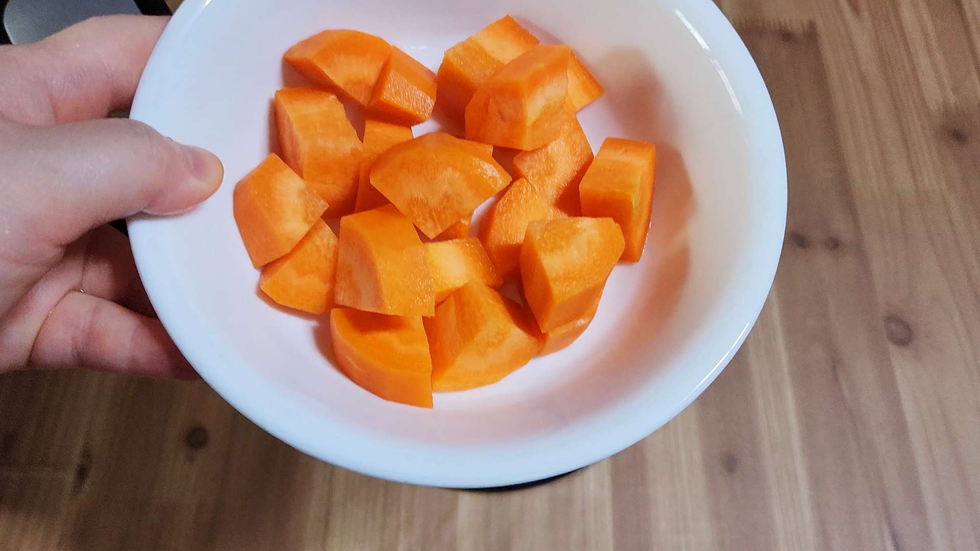 당근은 원형 슬라이스로 잘라 4등분 해줍니다.