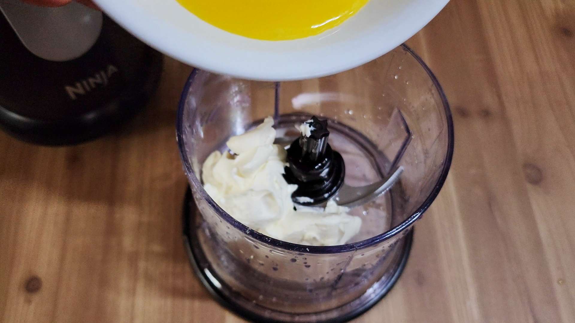 블렌더에 크림치즈 3T, 녹인 버터 3T 넣고 섞어줍니다.