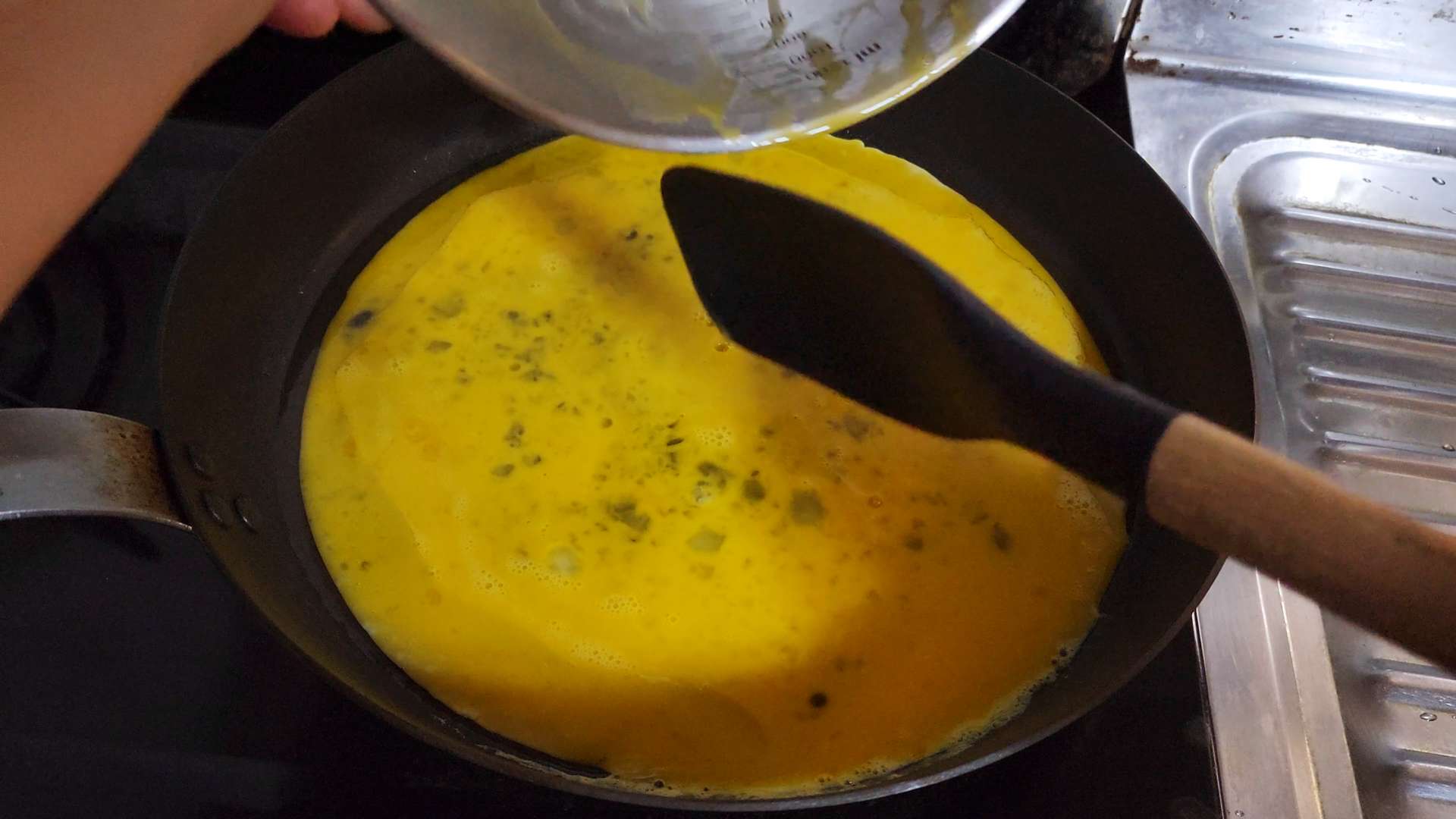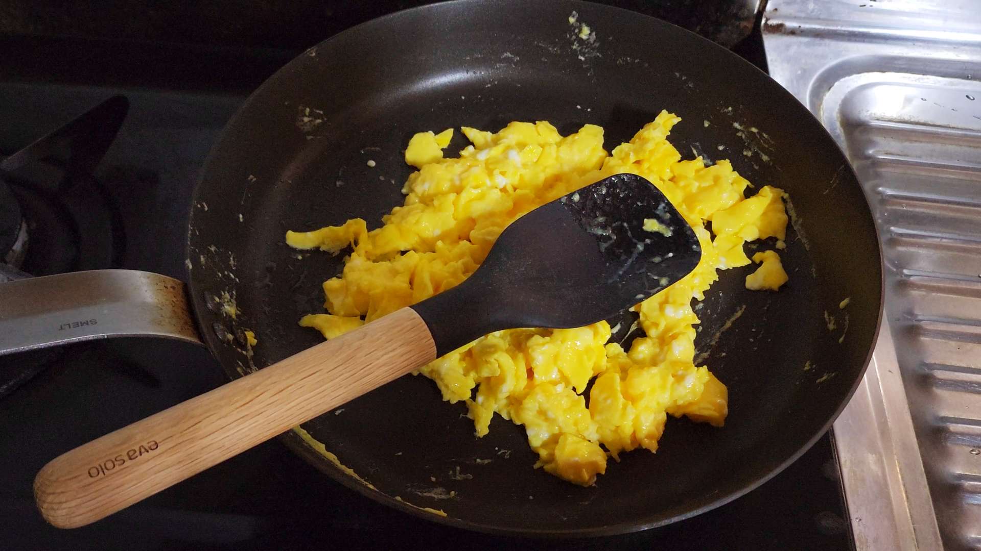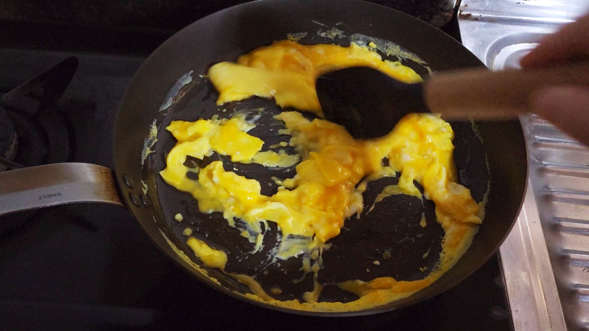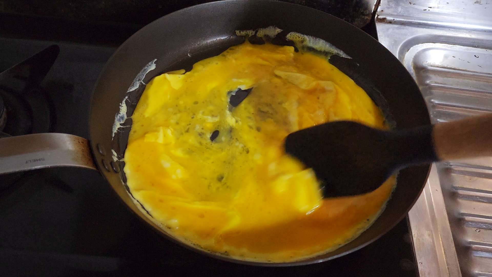 달걀물을 넣고 천천히 저어 부드럽게 익혀줍니다.