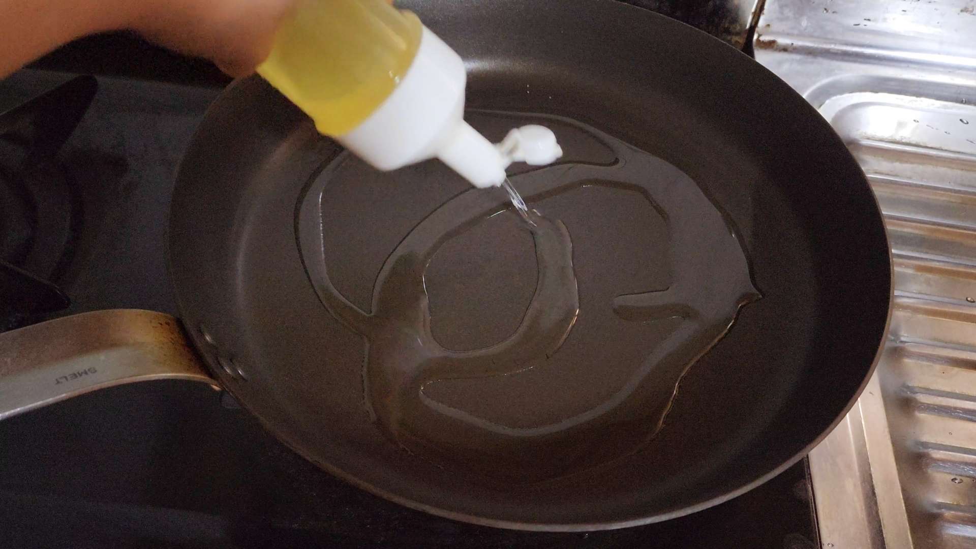 팬은 중불로 예열하고 식용유를 넣어줍니다.