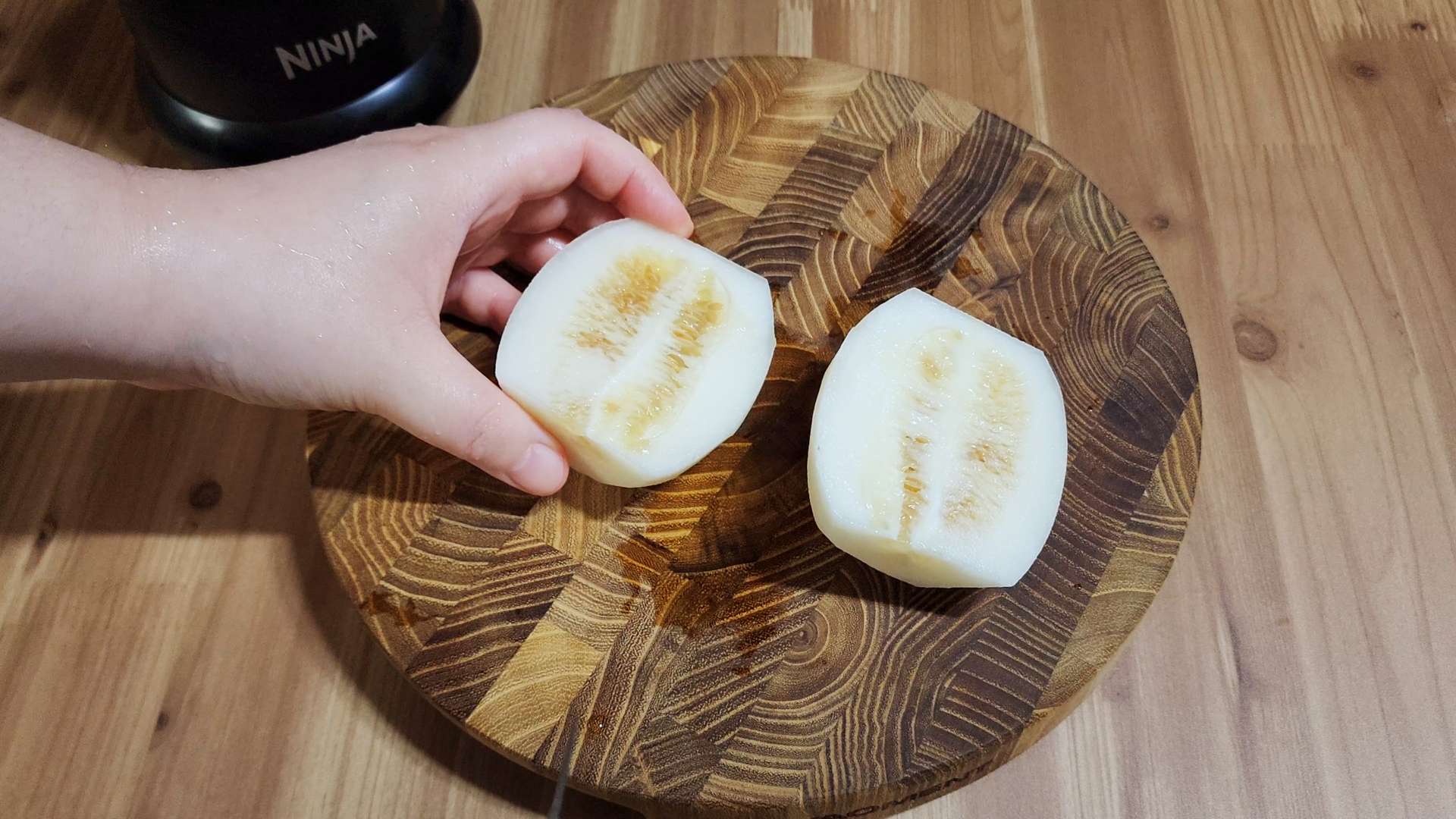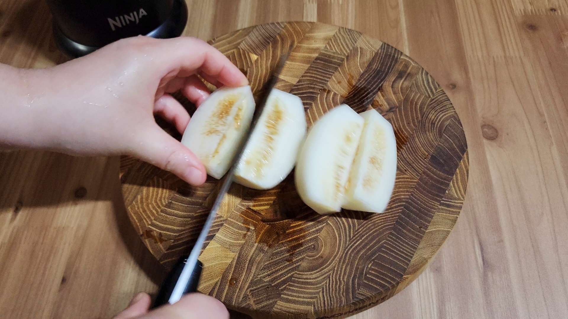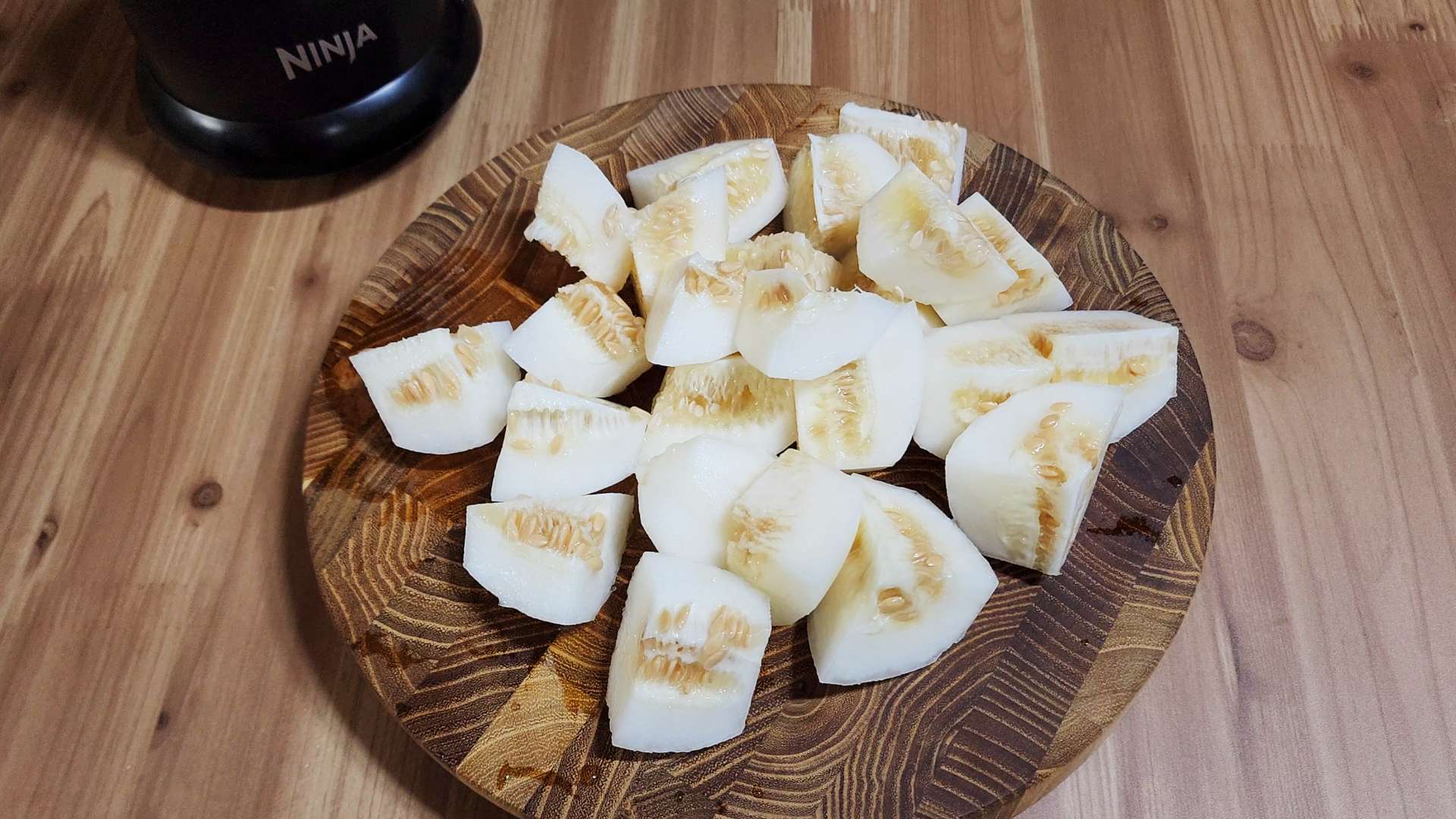 닌자초퍼에 참외를 넣고 갈아줍니다.