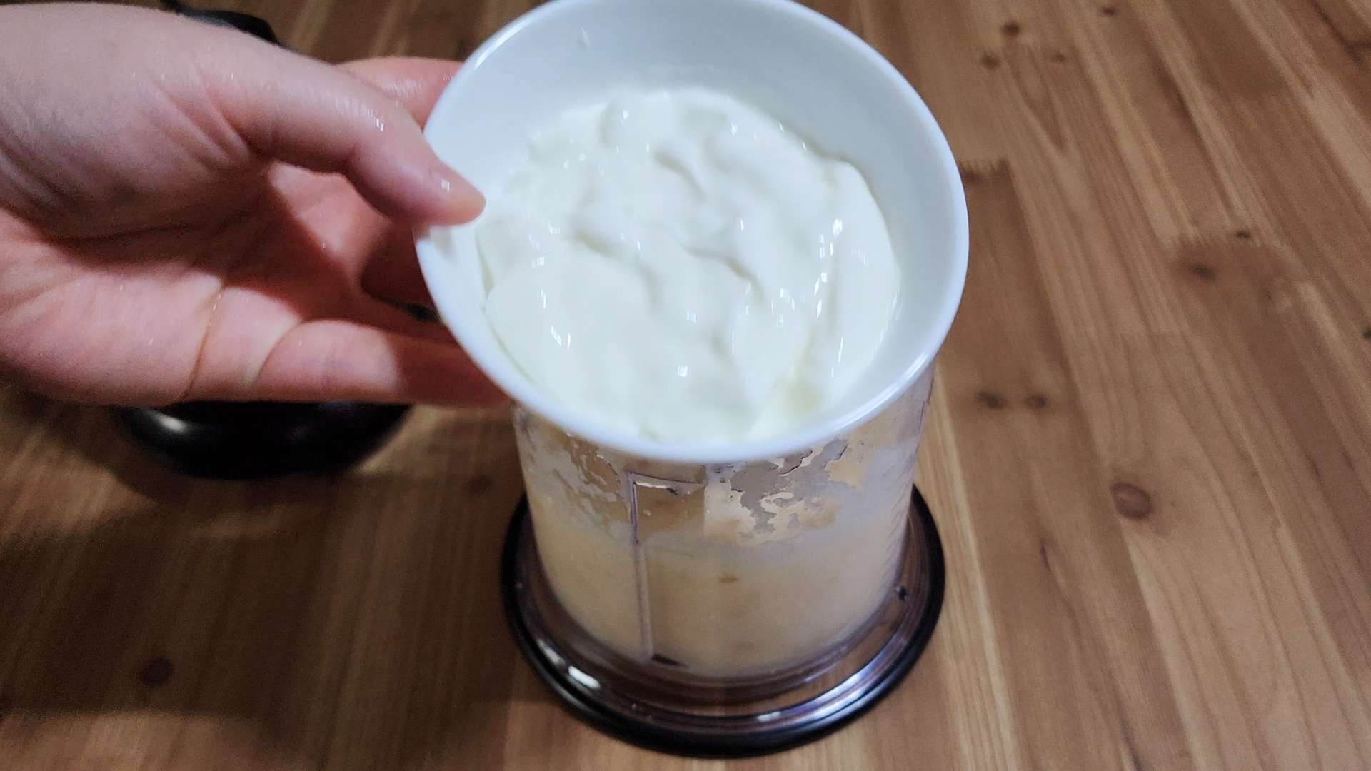 플레인 요거트 170g, 올리고당 2T을 넣고 갈아줍니다.