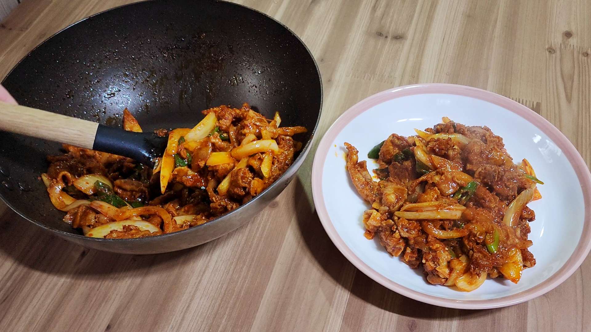 매콤달콤한 제육볶음 밥에 비벼 먹어도 맛있답니다.