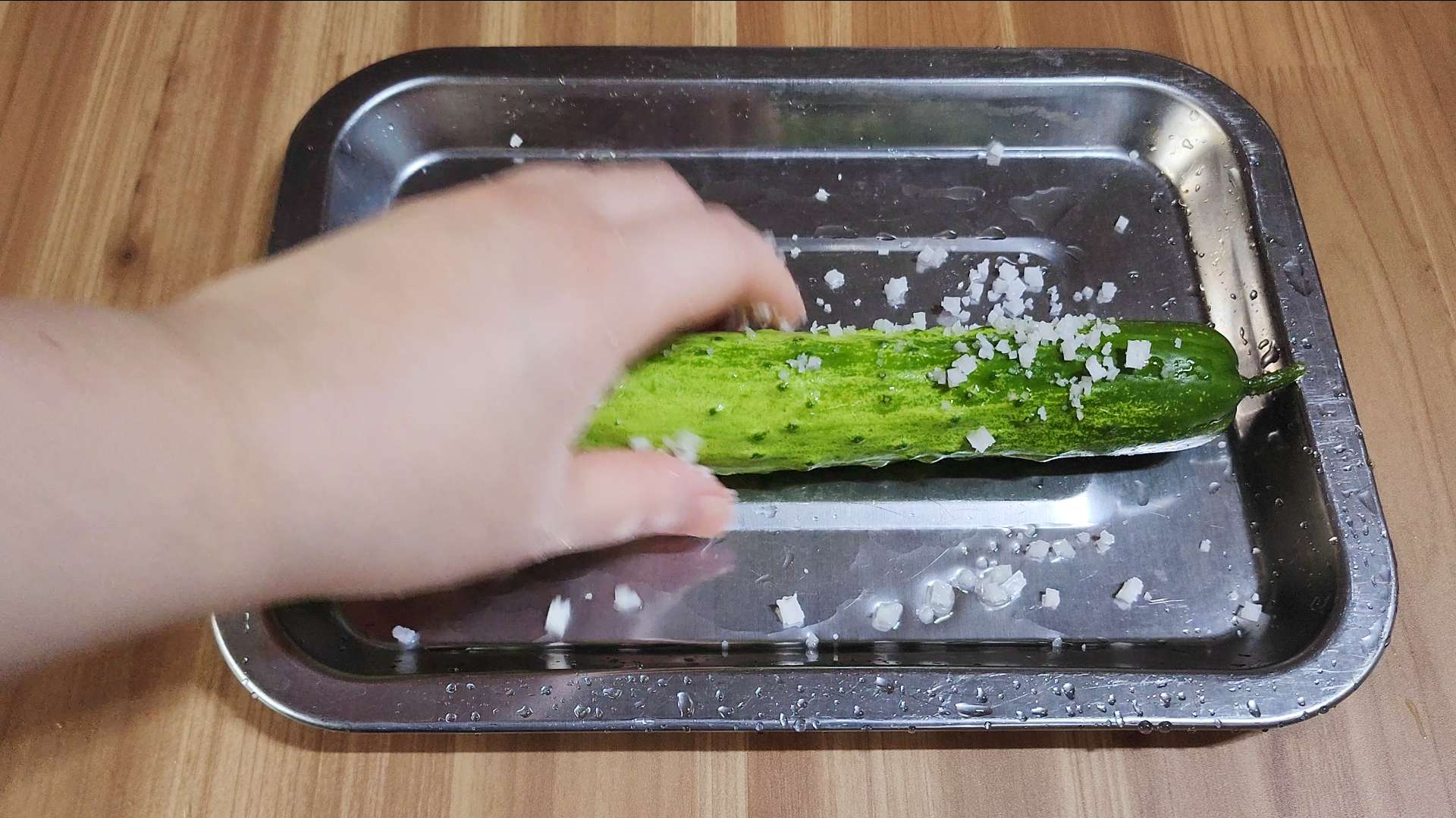 오이는 굵은소금 한줌으로 문질러 깨끗하게 씻어줍니다.
