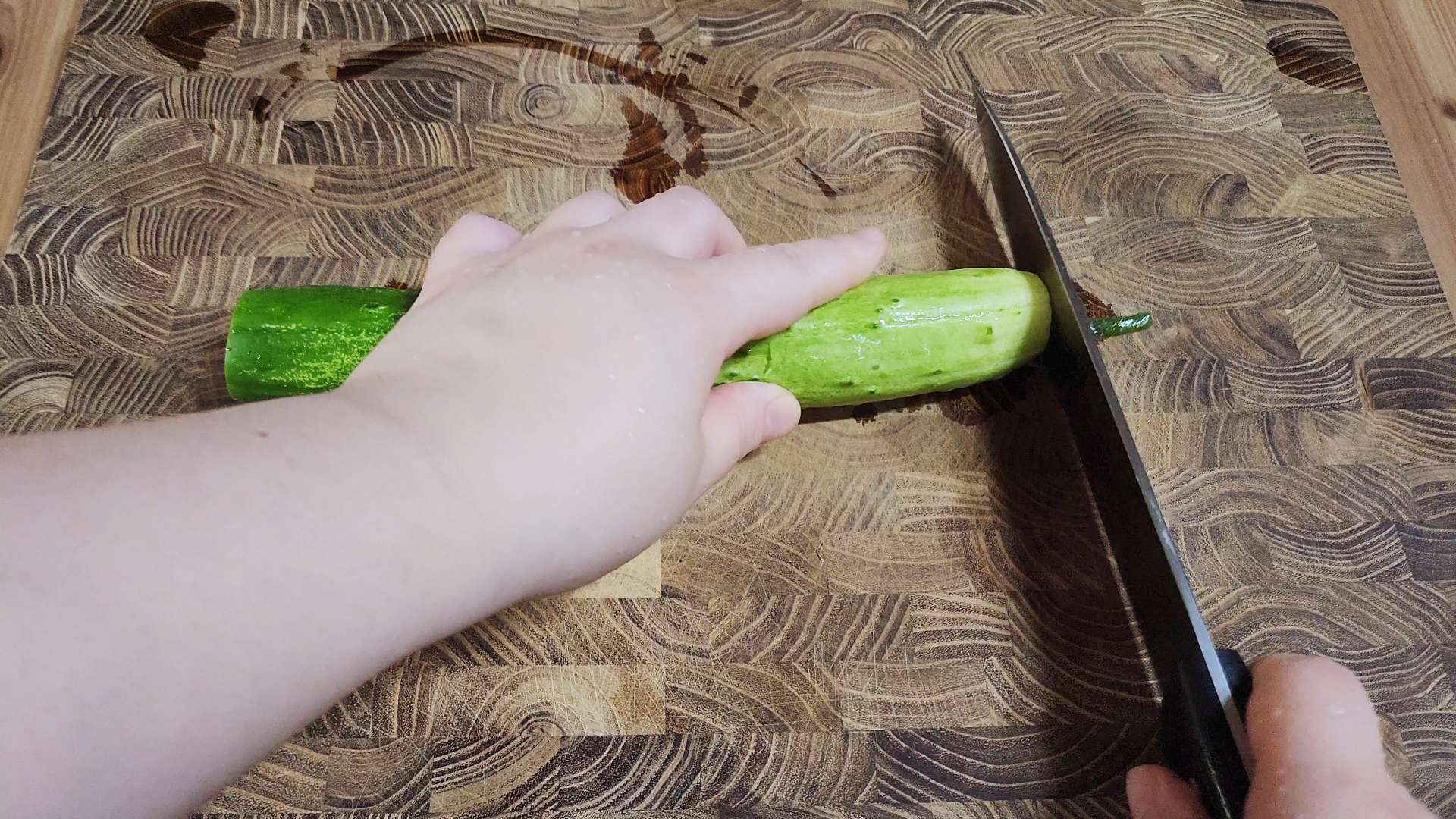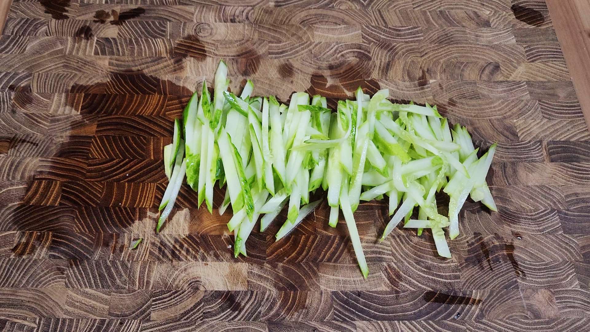 오이는 양쪽 끝을 자르고 채썰어 줍니다.