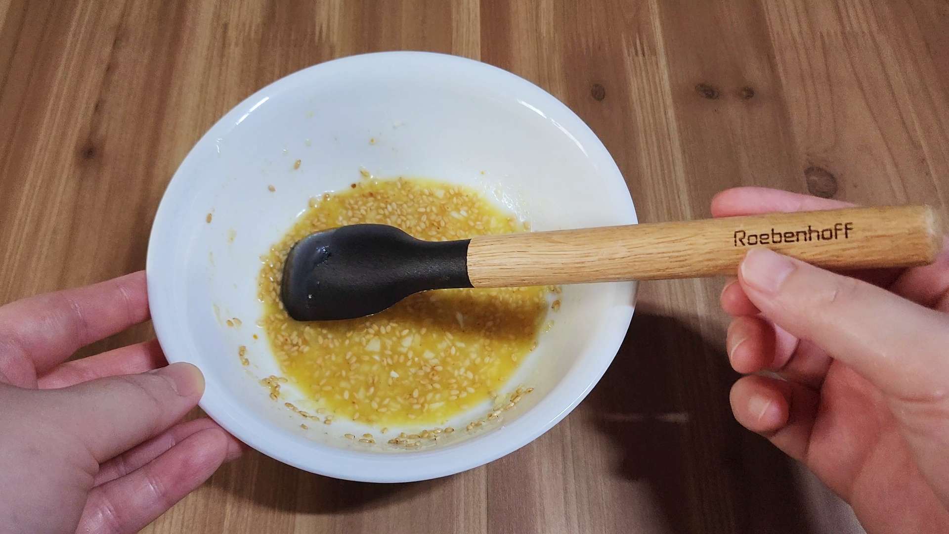레몬즙 1T, 설탕 1T, 소금 0.3t, 연겨자 0.3t, 통깨