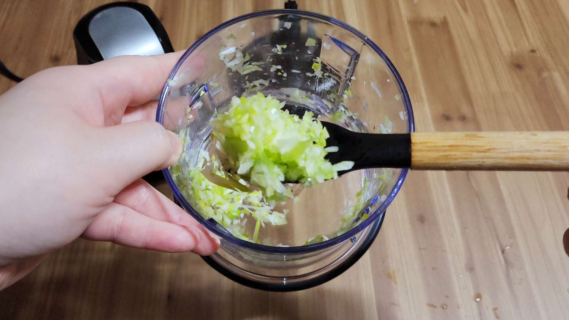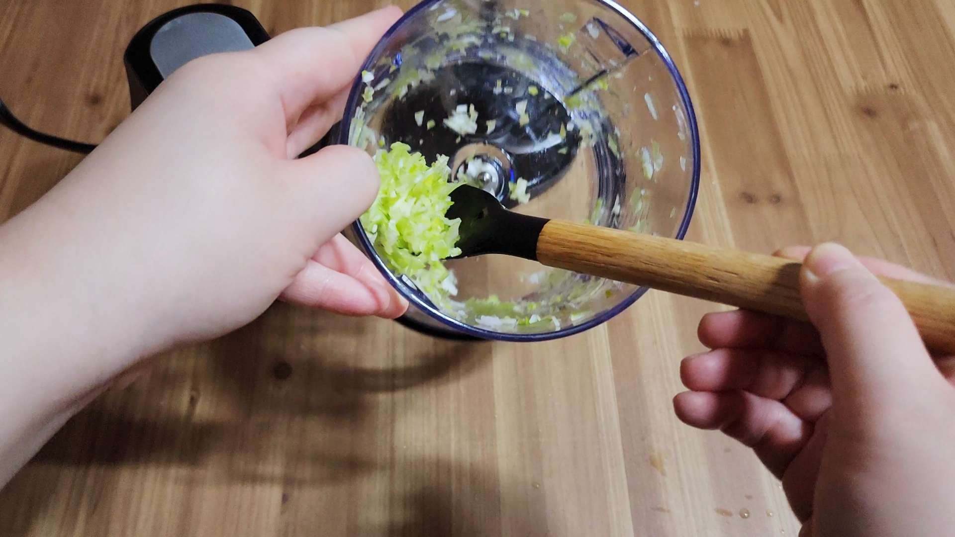 식초 1T, 참기름 1T, 다진마늘 0.5T, 대파, 홍고추를