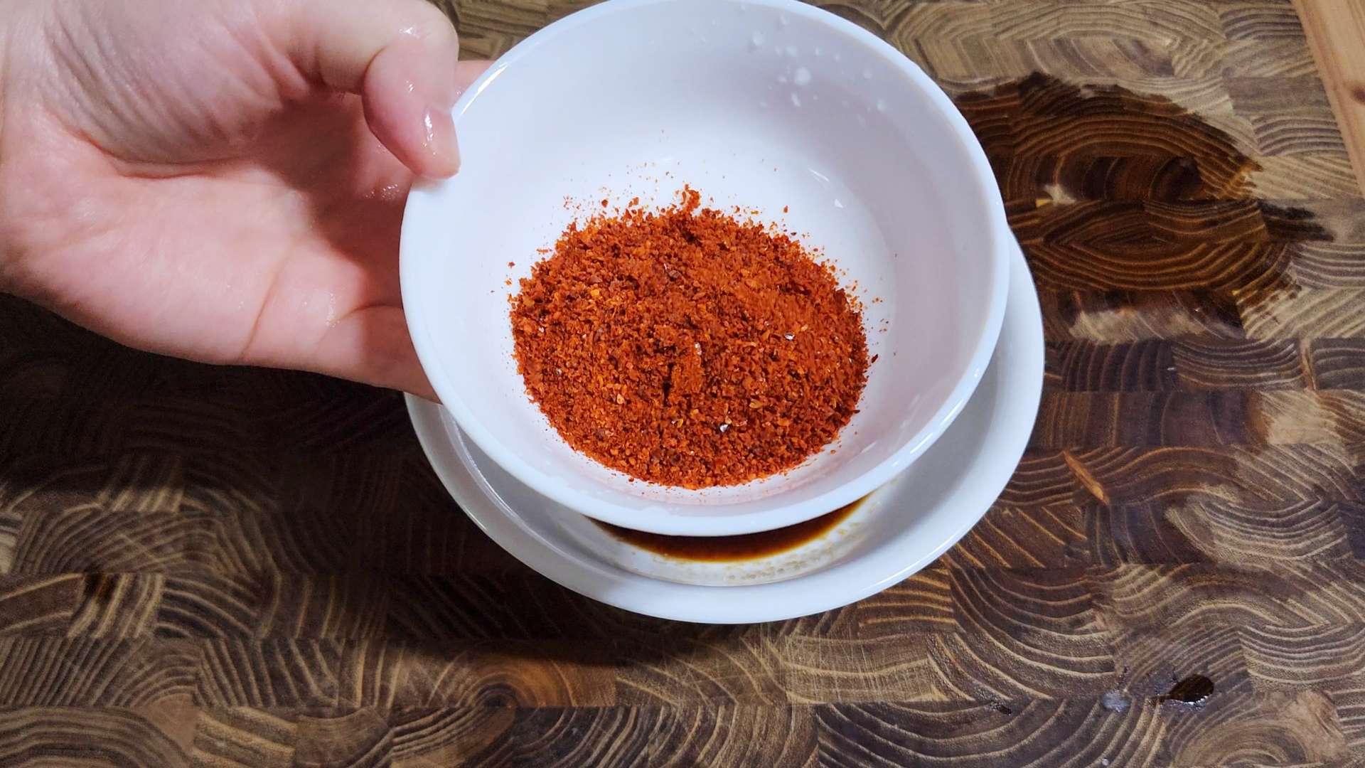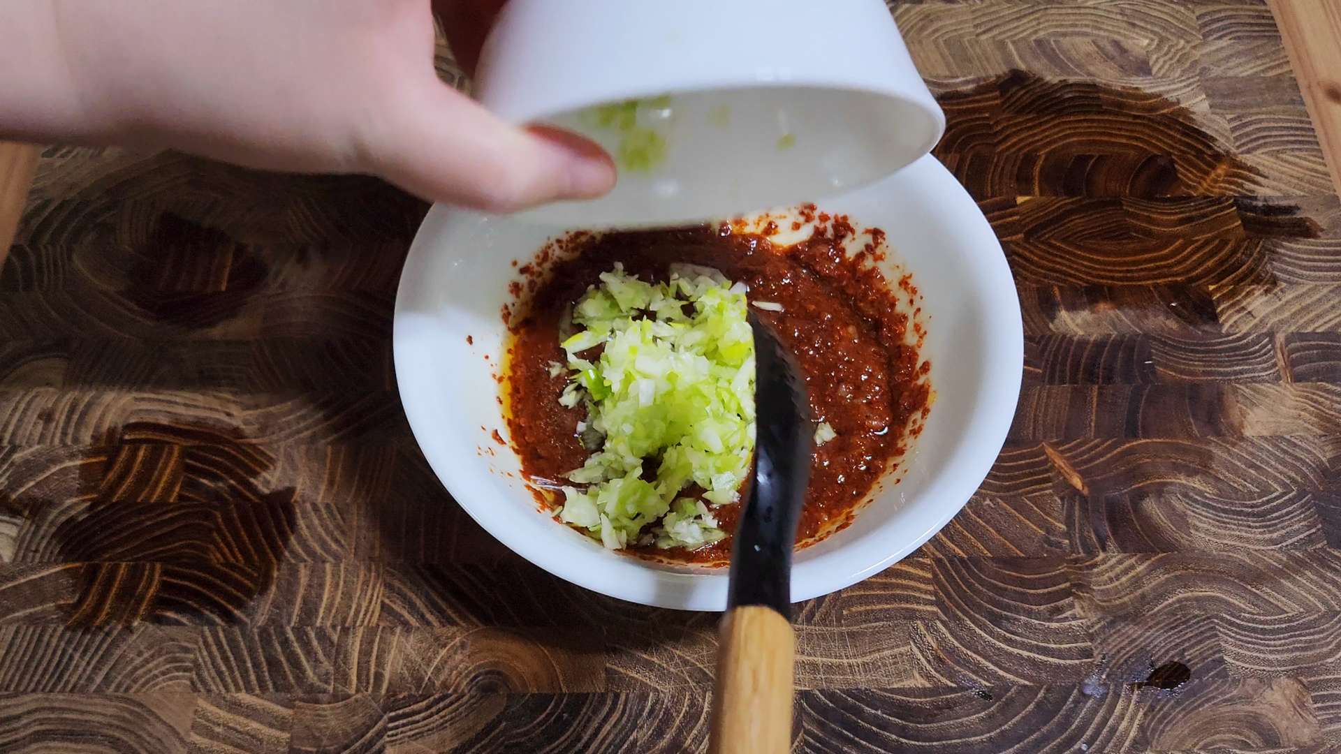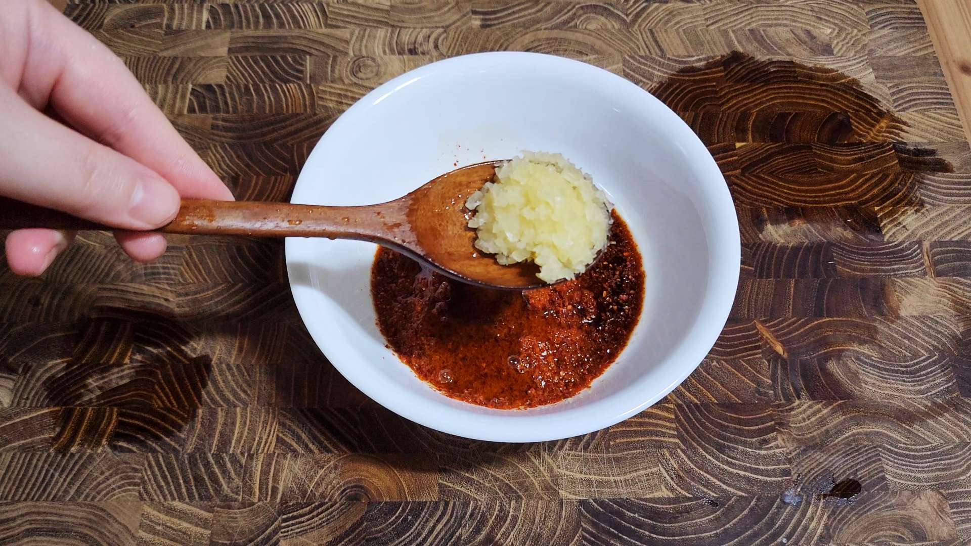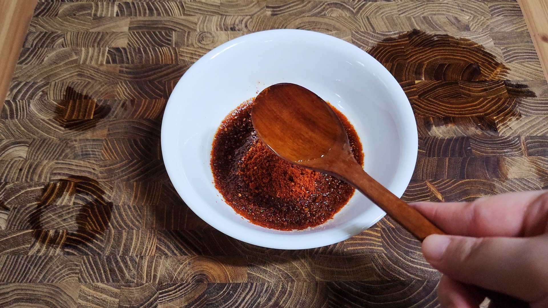 진간장 3T, 멸치액젓 1T, 설탕 1.5T, 고춧가루 2T,