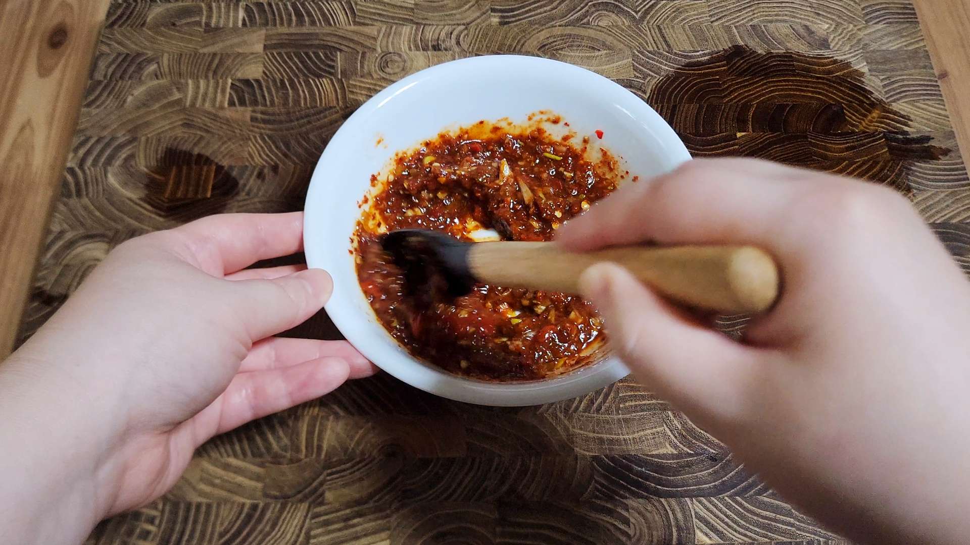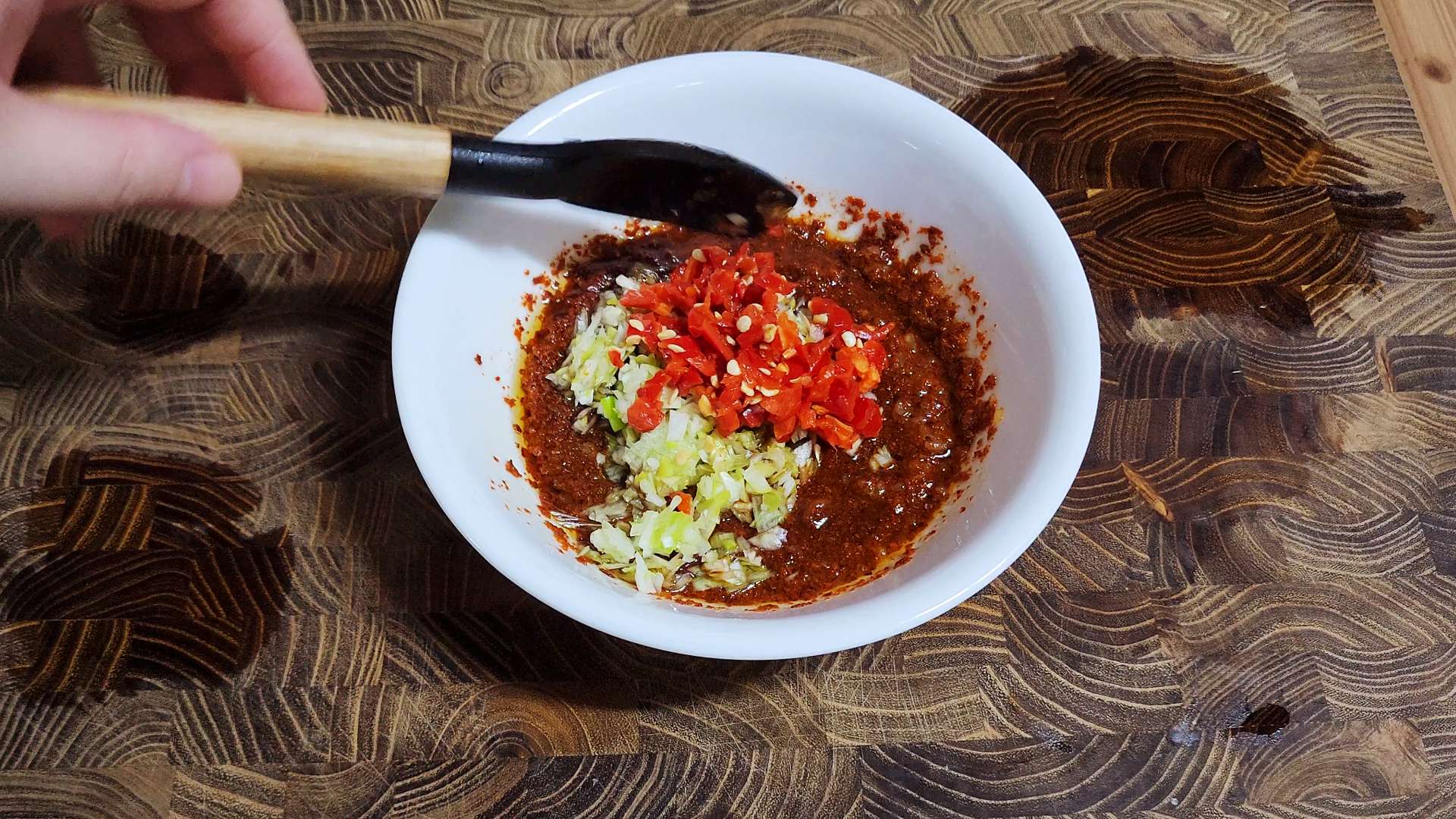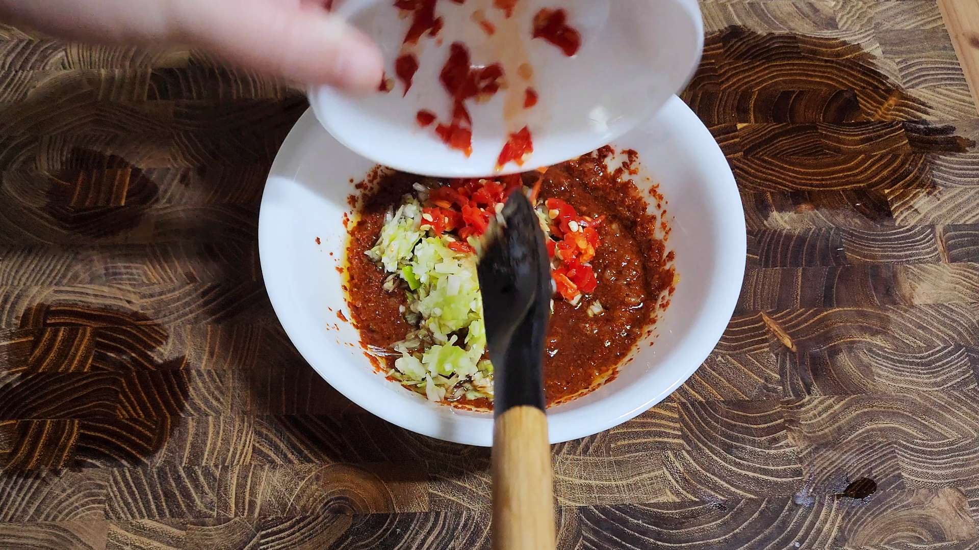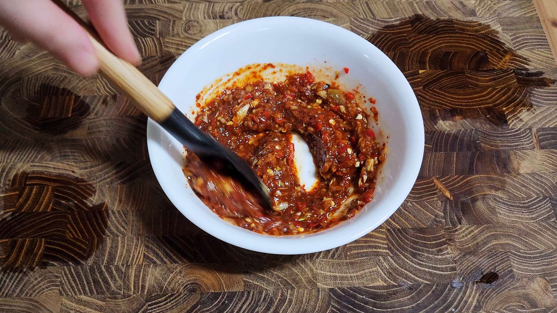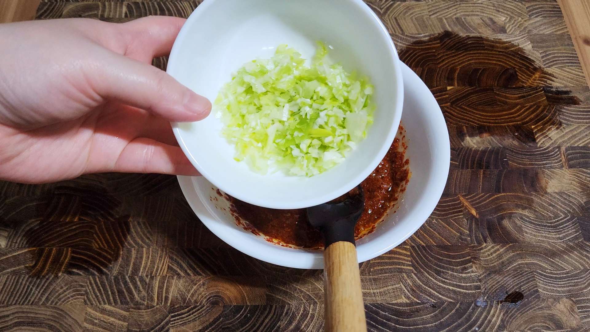 진간장 3T, 멸치액젓 1T, 설탕 1.5T, 고춧가루 2T,