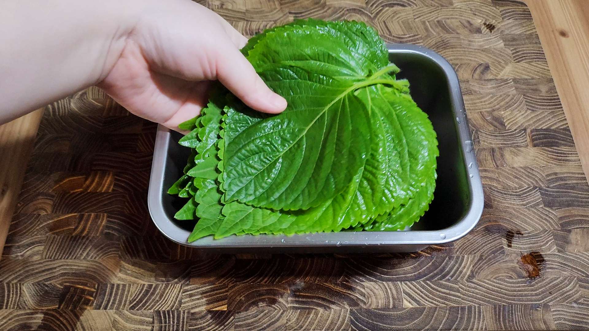 깻잎은 깨끗이 씻어 물기를 제거해줍니다.