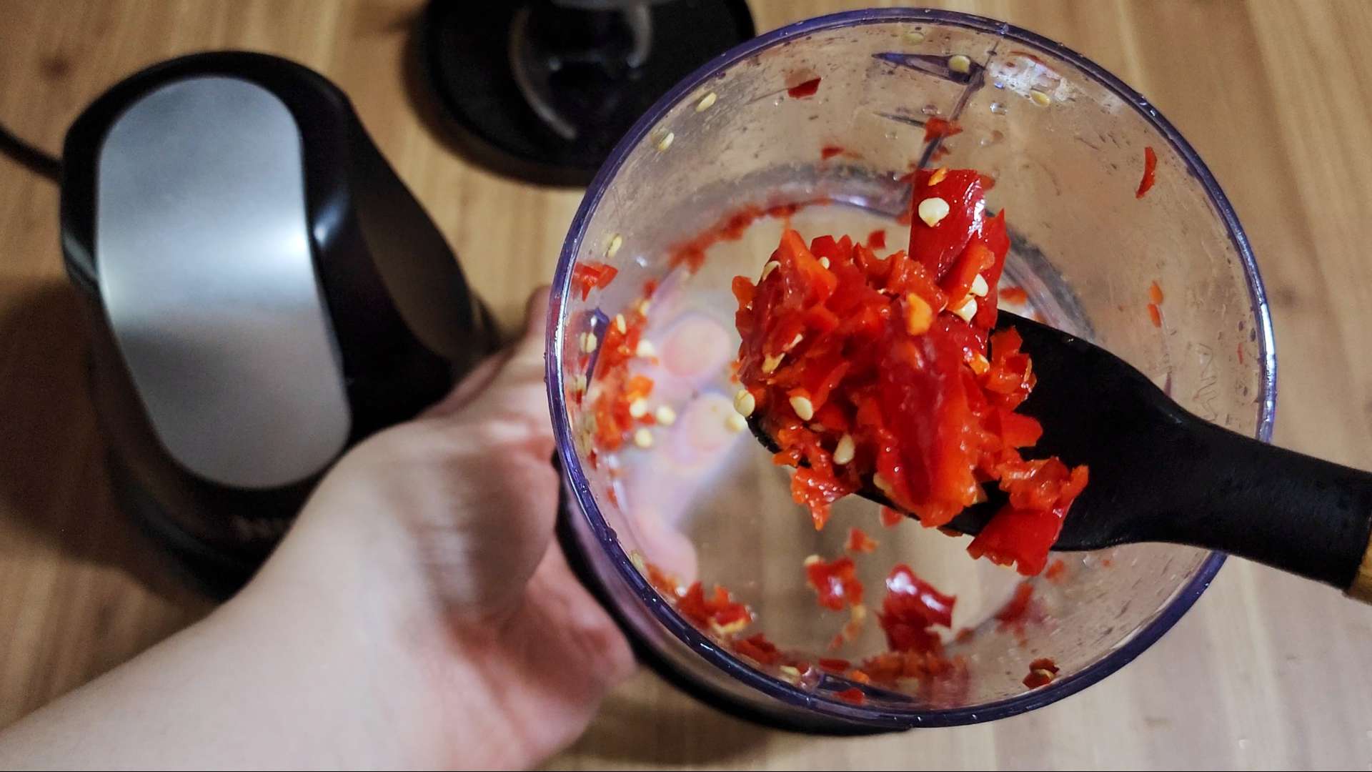 홍고추, 대파는 큼직하게 잘라줍니다.