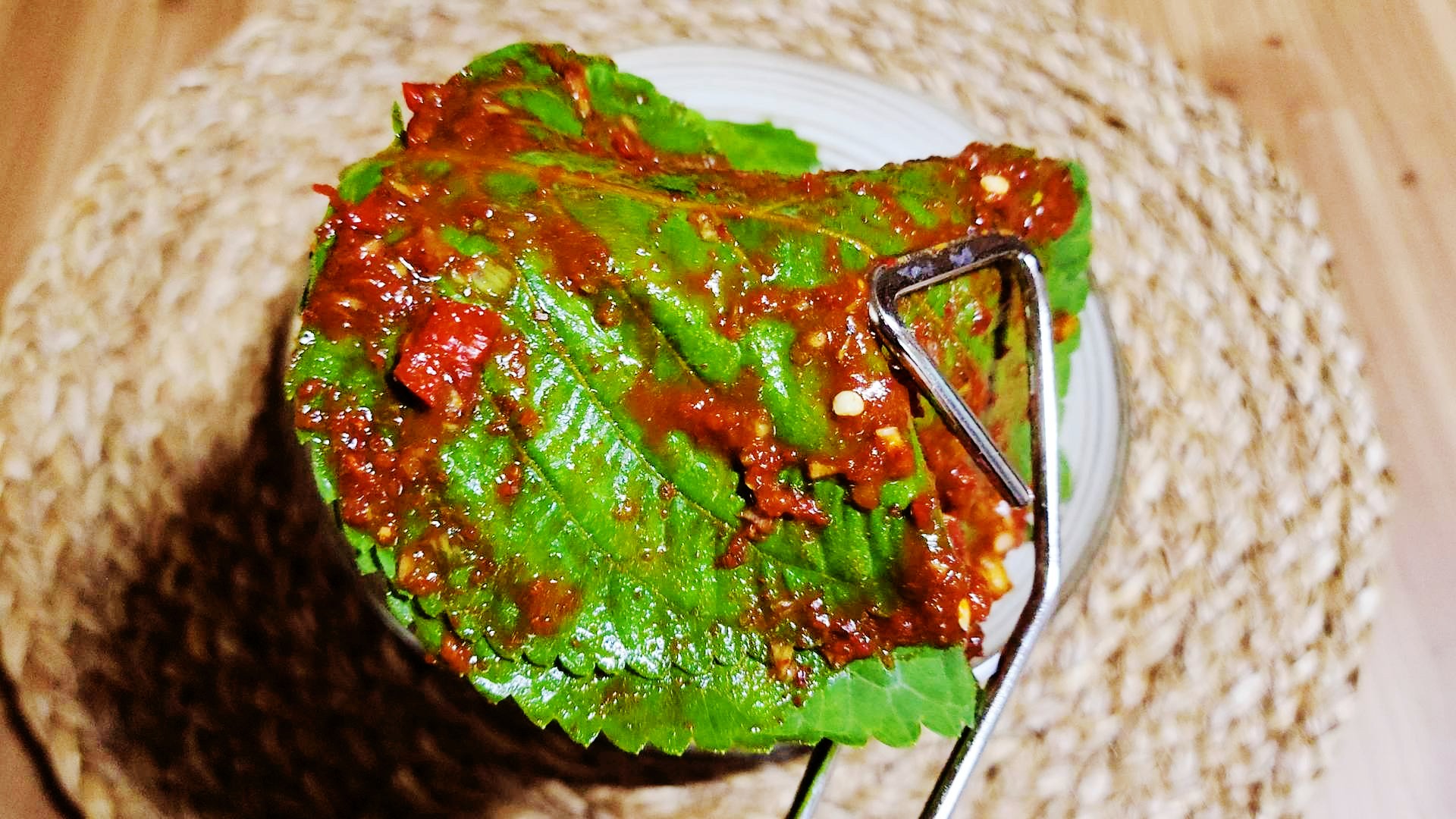 향긋한 깻잎에 매콤달콤짭조름한 양념이 잘 베어 있어 맛있답니다.