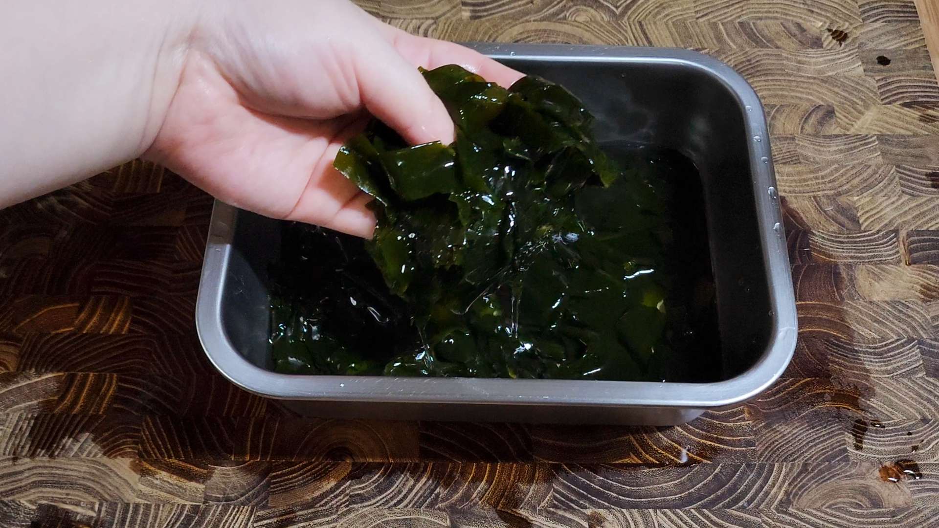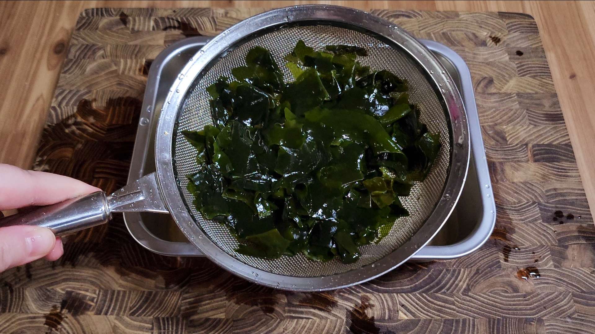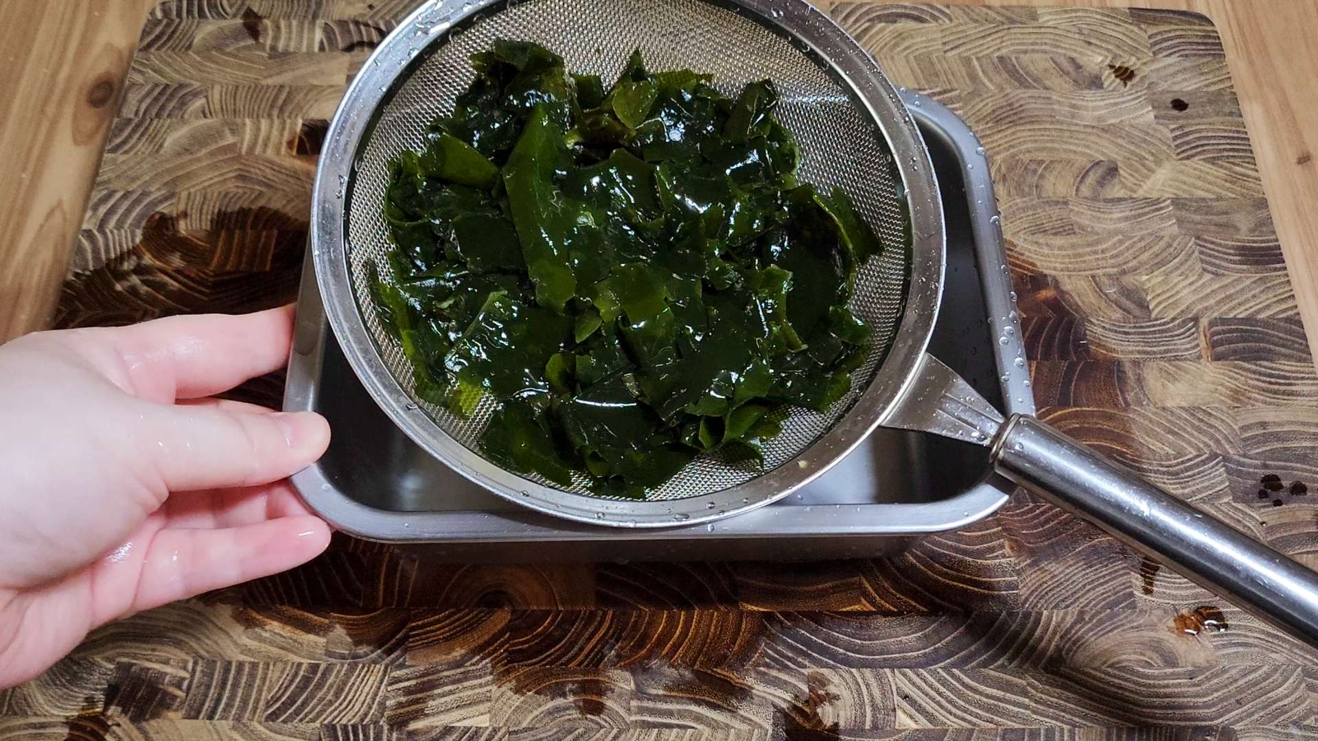 불린 미역은 채반에 밭쳐 물기를 제거해줍니다.