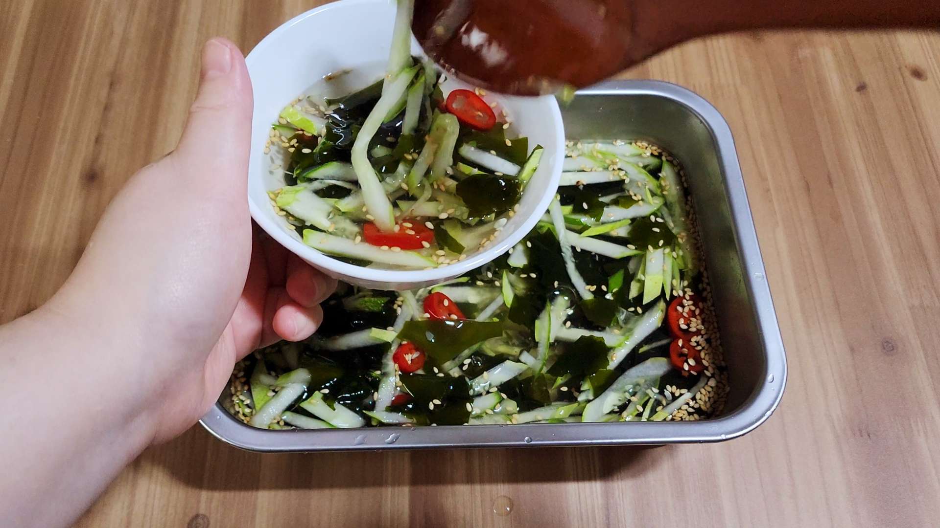 냉국물: 생수 600ml, 식초 5T, 설탕 5T, 소금 1T,