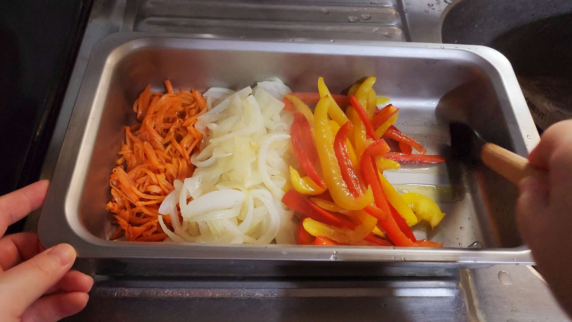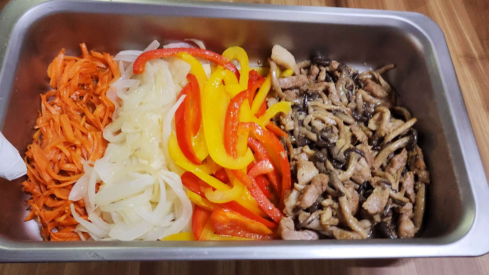 알텐바흐 스텐밧드에 볶은 채소, 고기를 담아 식혀두면 편리합니다.