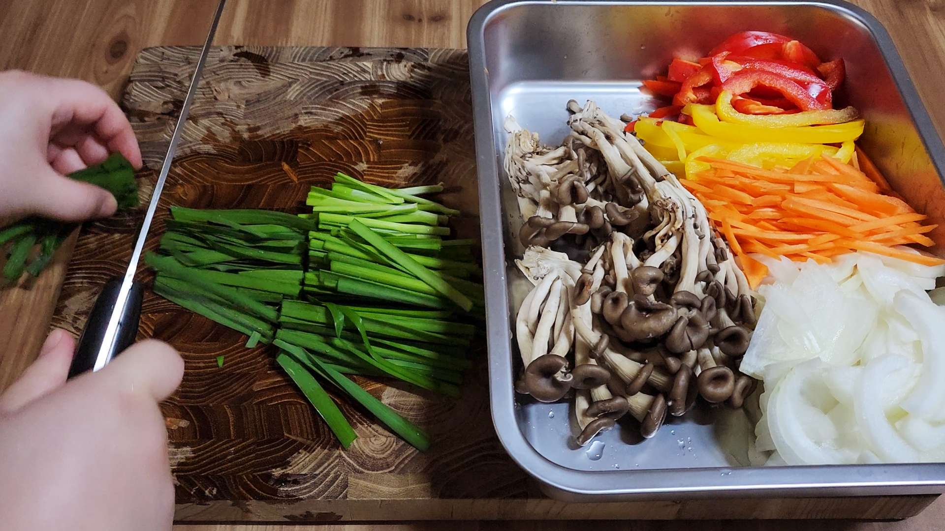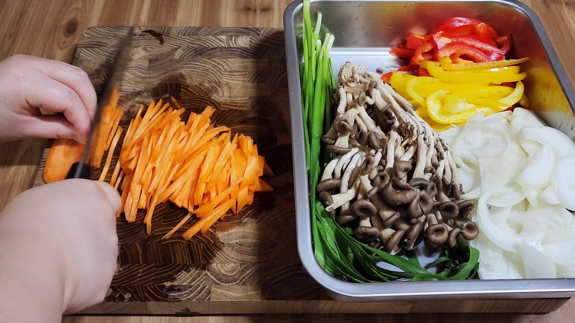 잡채에 들어갈 채소도 채썰어 준비해 볼게요.