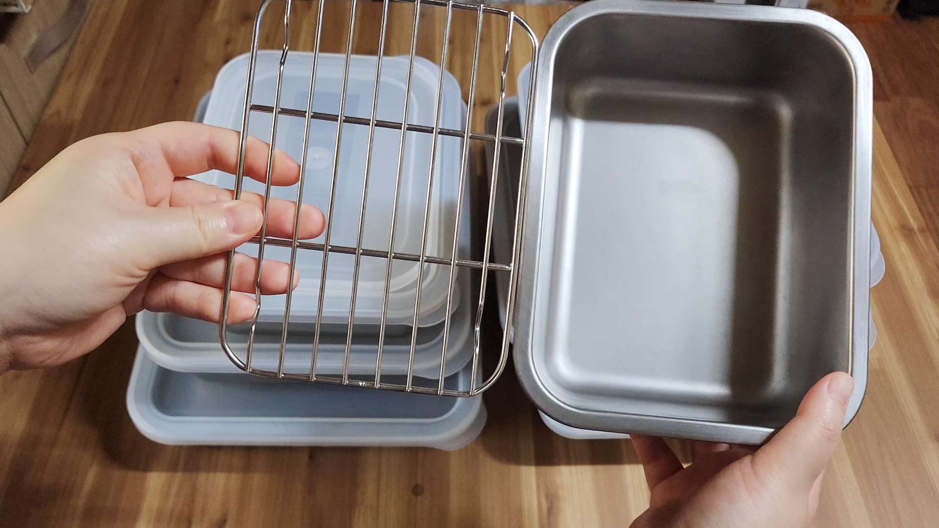 다양한 사이즈로 활용도를 높이고 기본 구성인 와이어 채망으로 음식을 신선하게 보관할 수 있습니다.