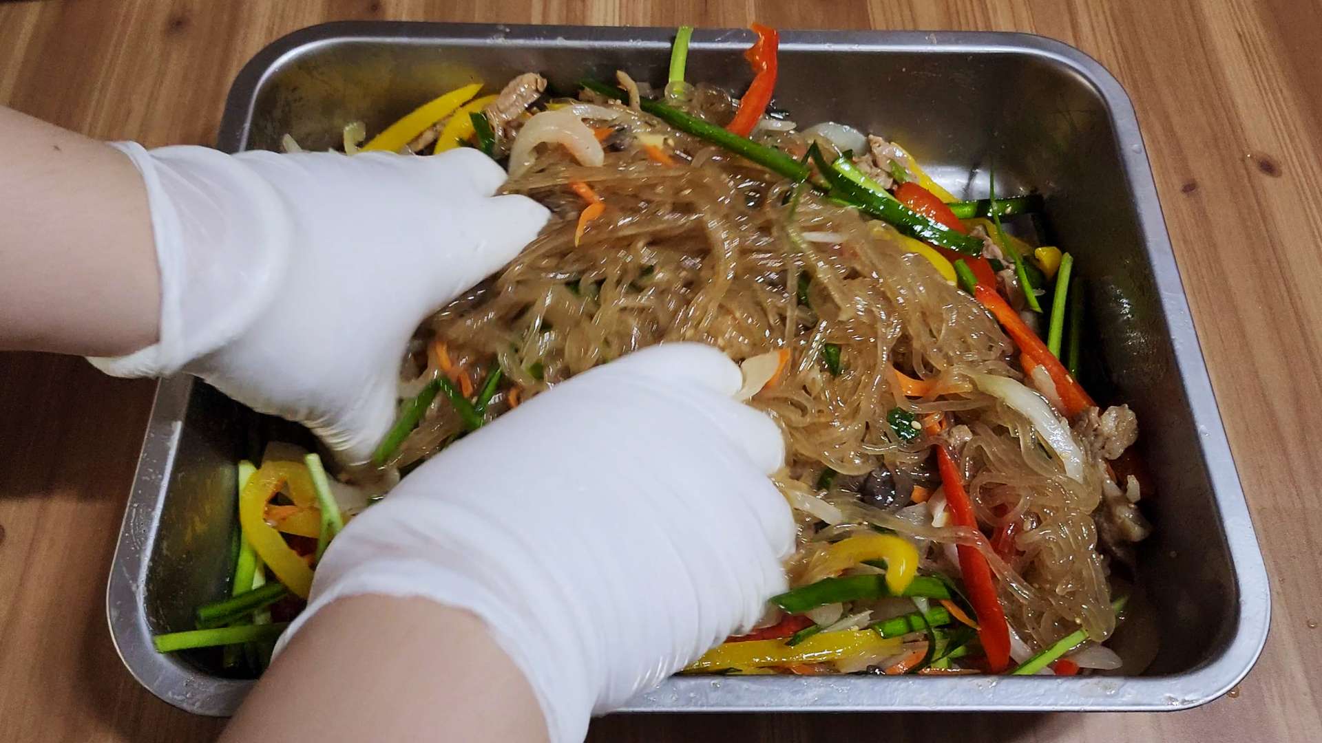 알텐바흐 스텐밧드 직사각 대는 사이즈가 크고 넓어서 당면, 채소를 넣고 버무려 뚜껑을 덮어 보관까지 가능합니다.