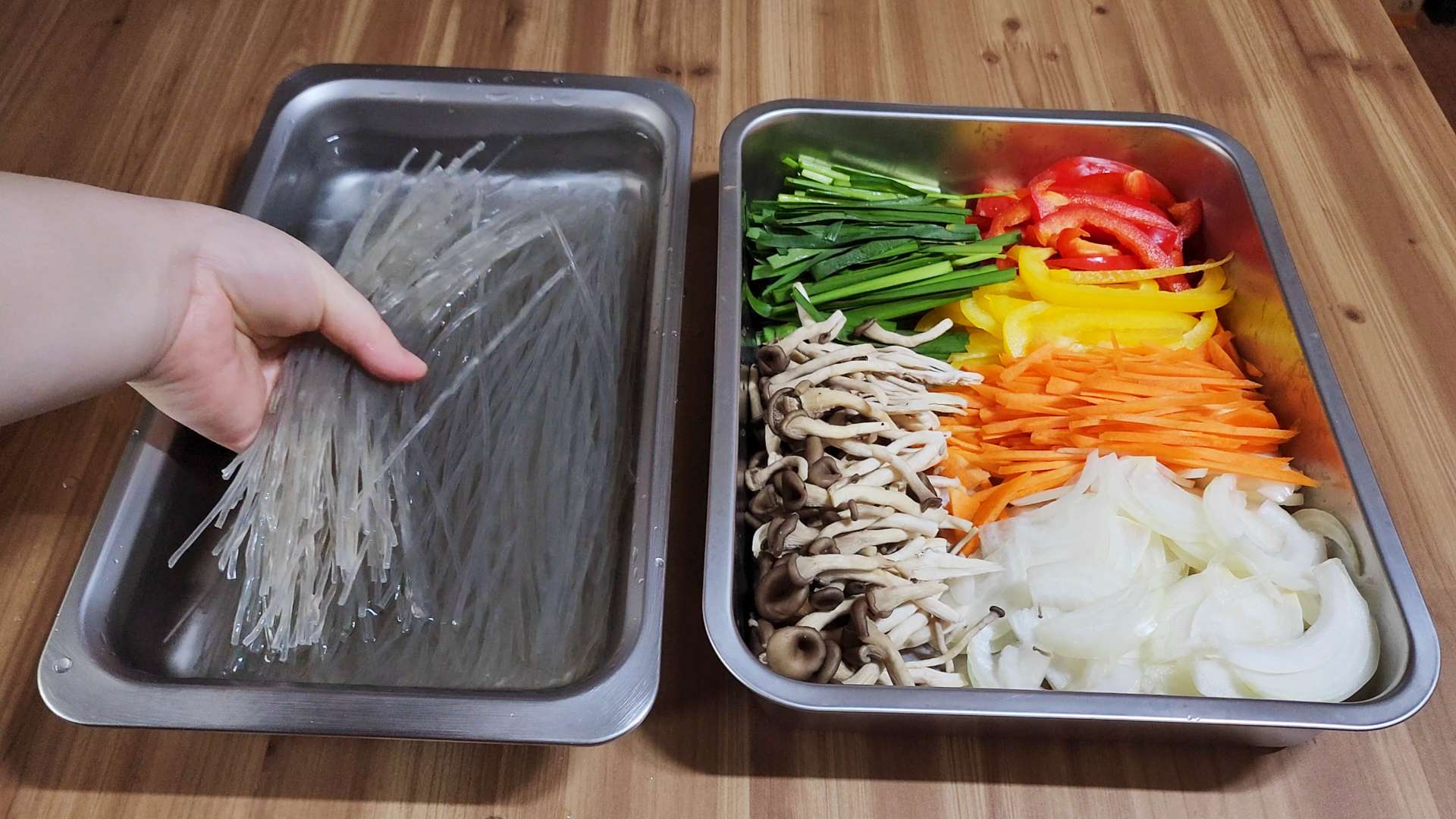 재료: 당면 300g, 당근 1/2개, 양파 1개,