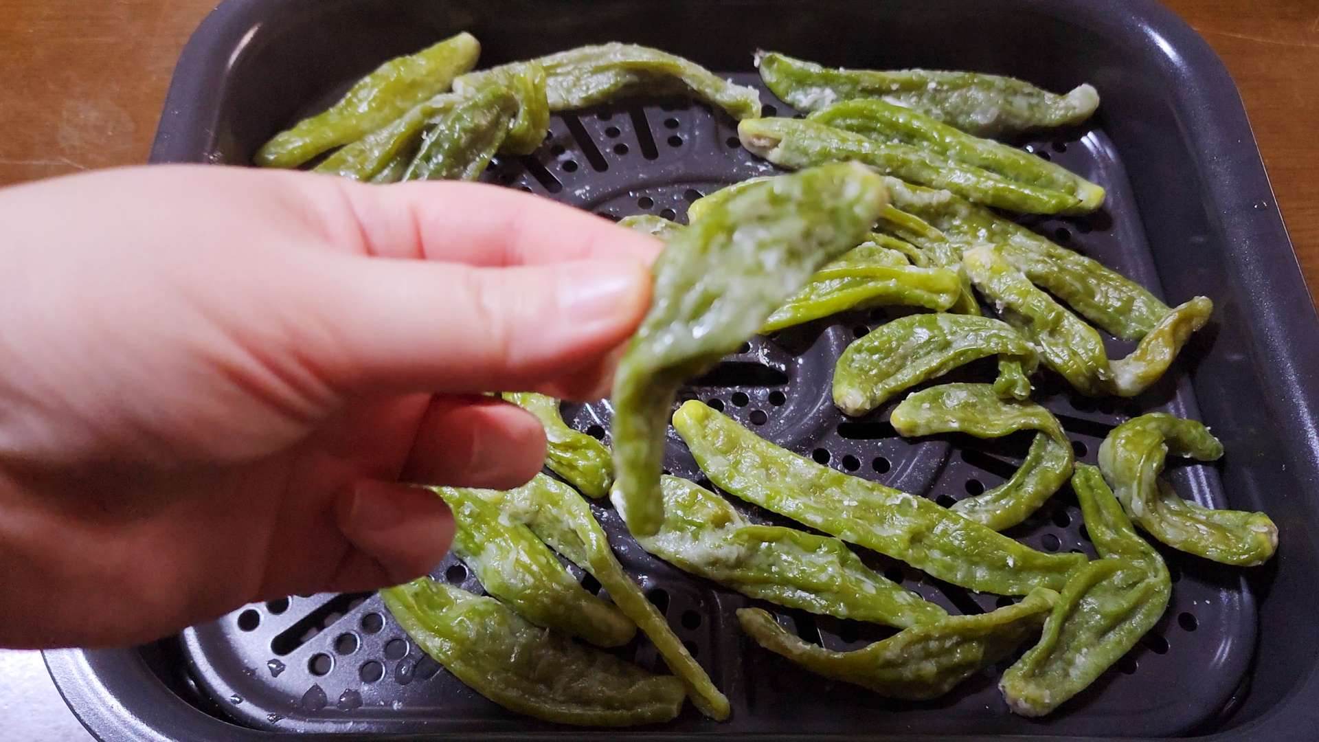 밀가루 묻힌 꽈리고추를 올려줍니다.