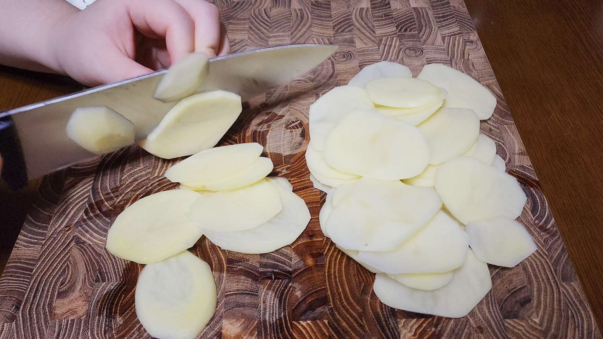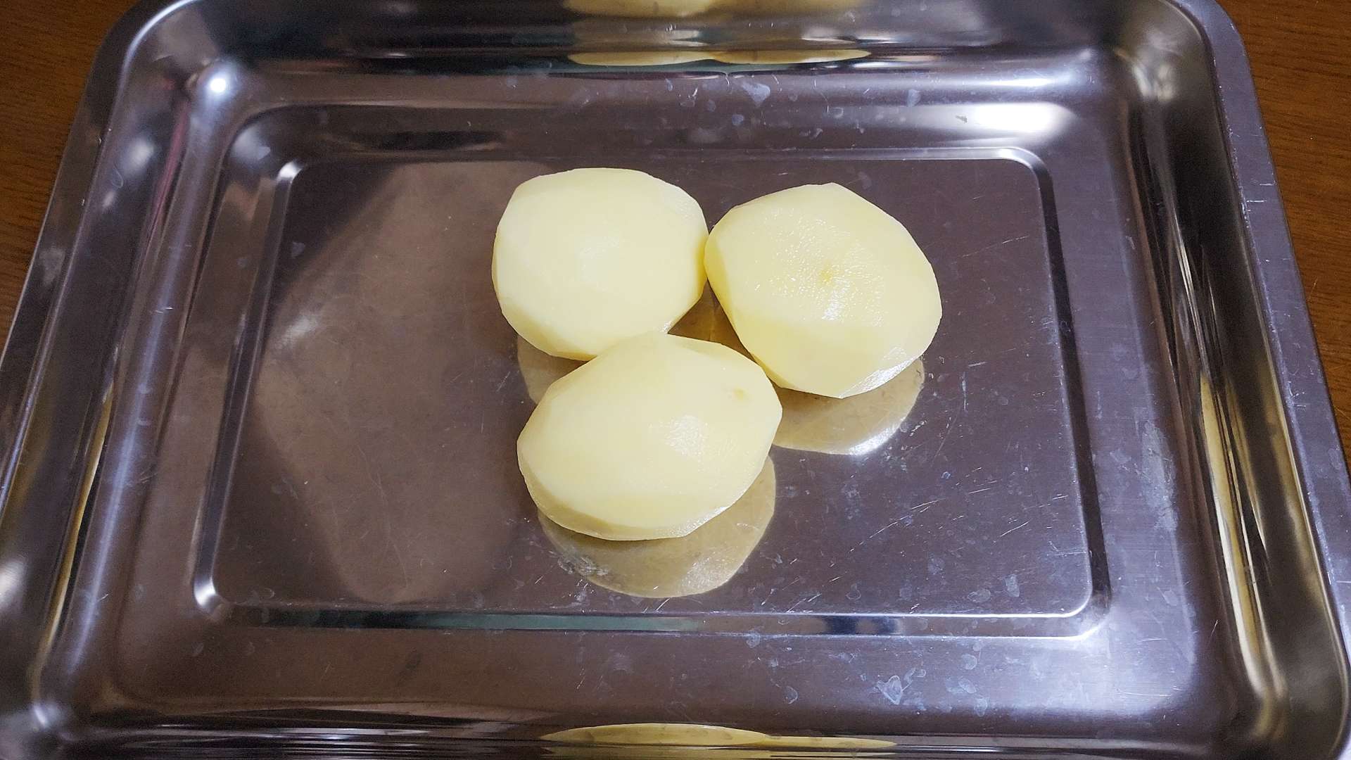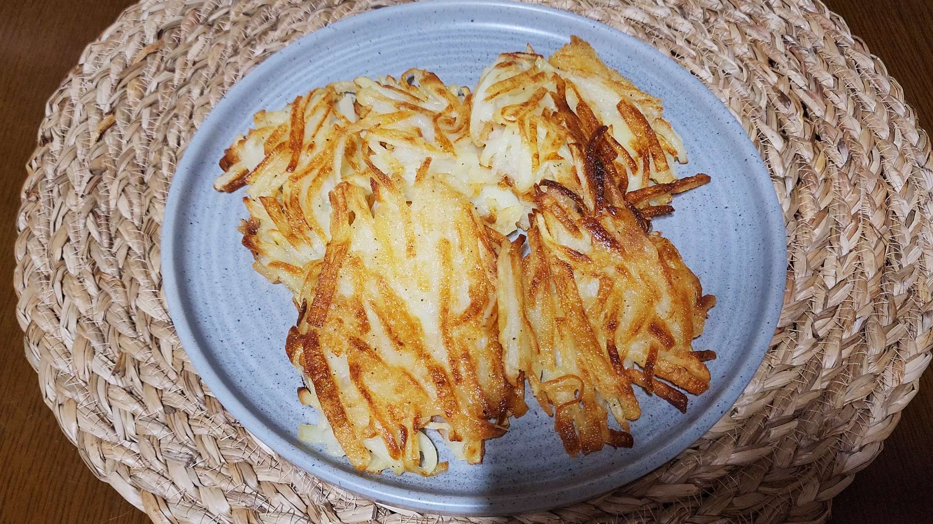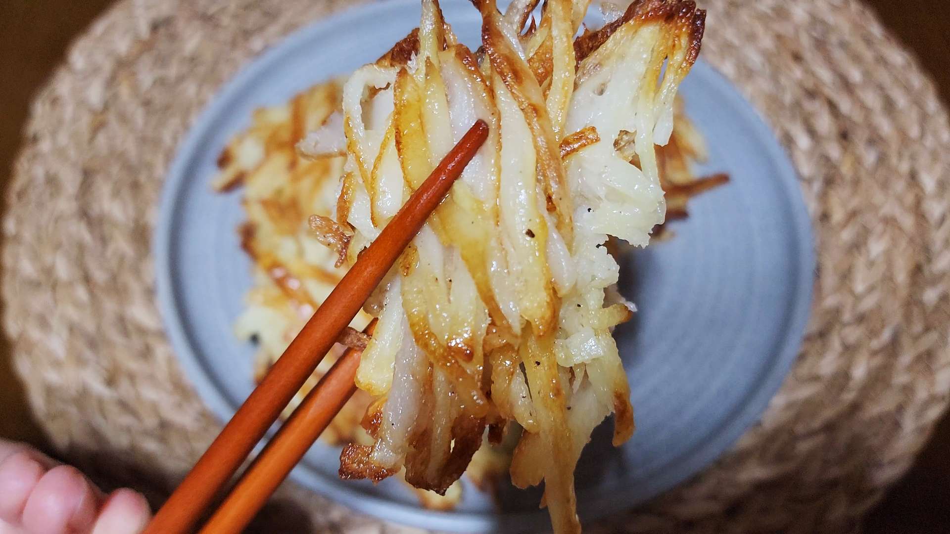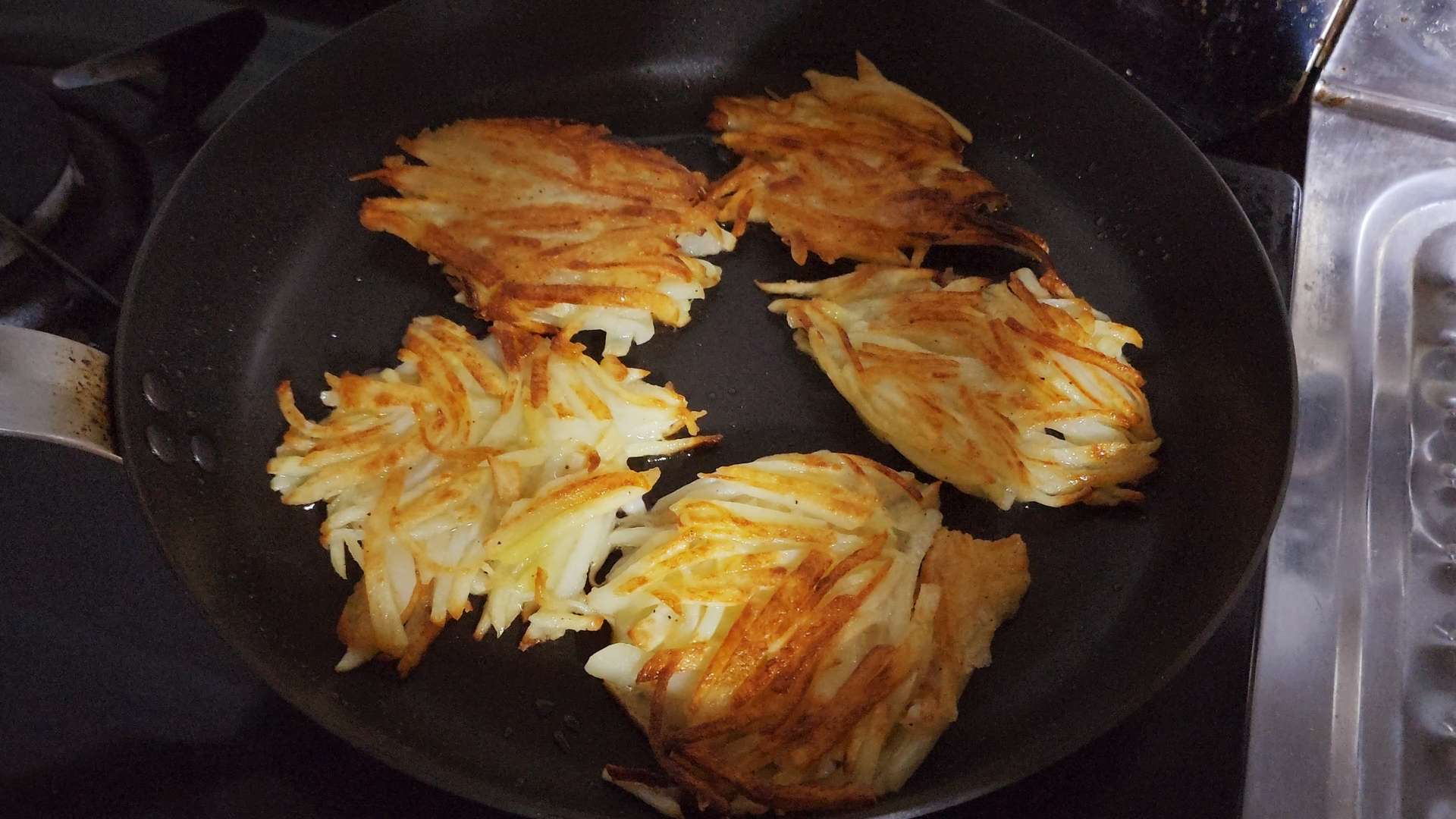 감자 속이 투명해지고 가장자리가 노릇해지면 뒤집어줍니다.