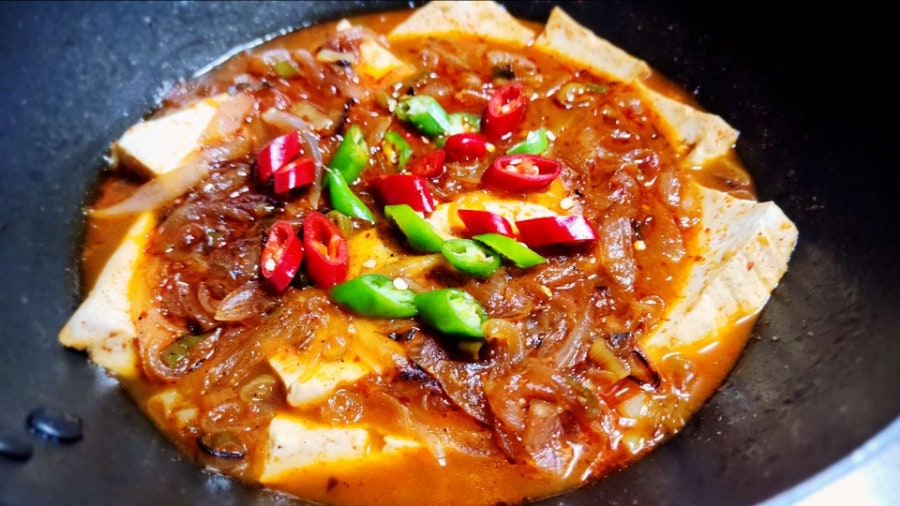 재료: 두부 1모 350g, 양파 1개, 대파 1대,