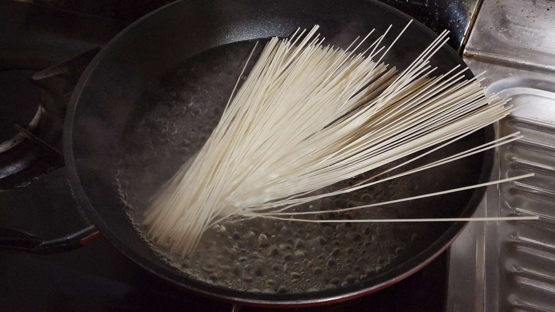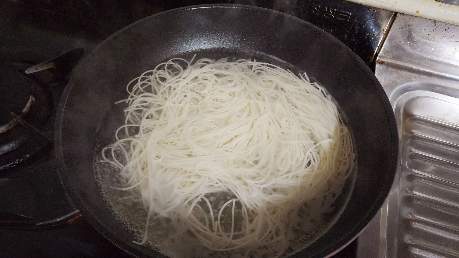 끓는물에 소금 1/4T, 소면 1인분을 넣고 저어주면서